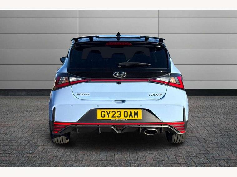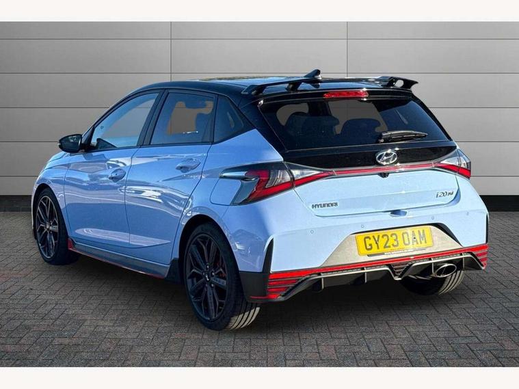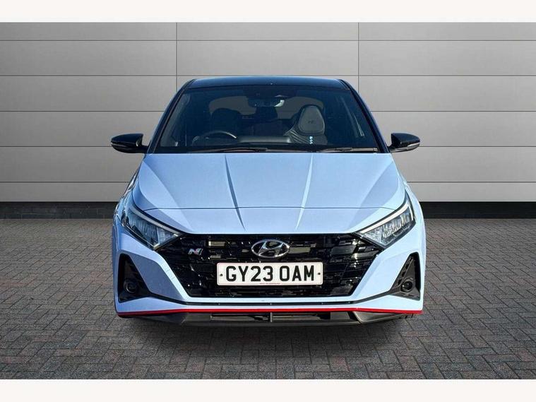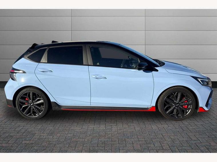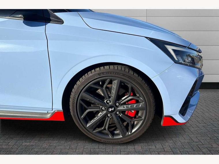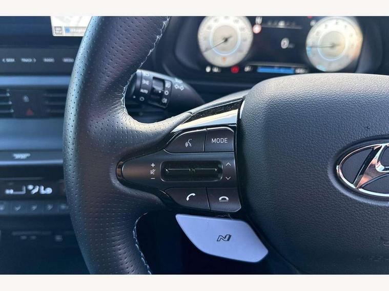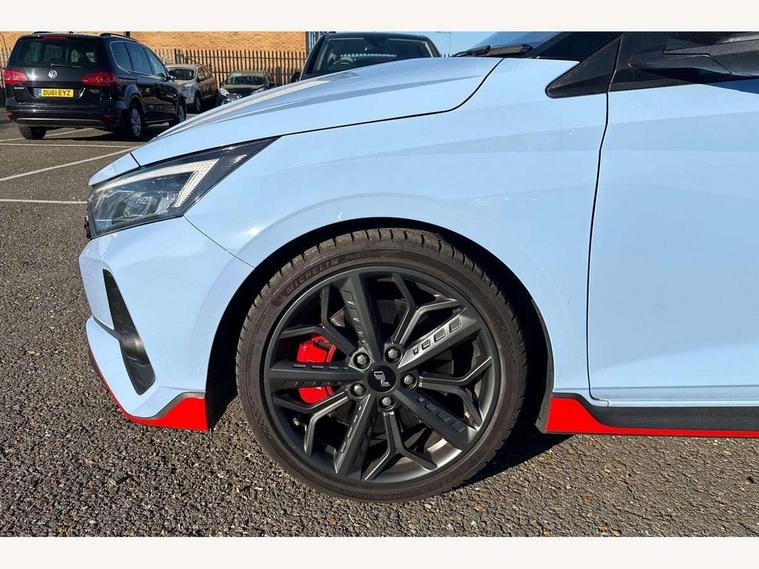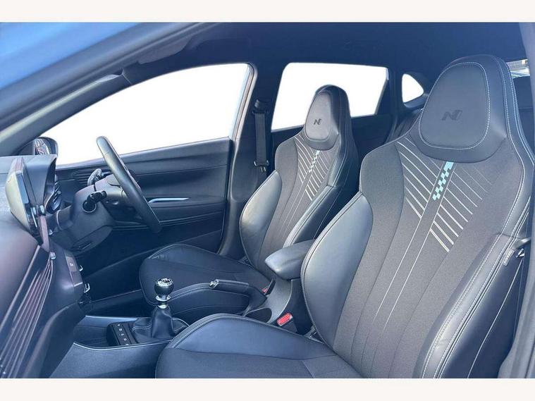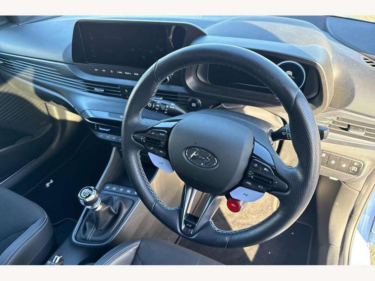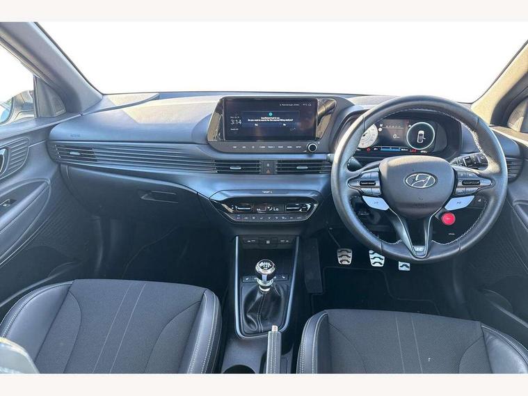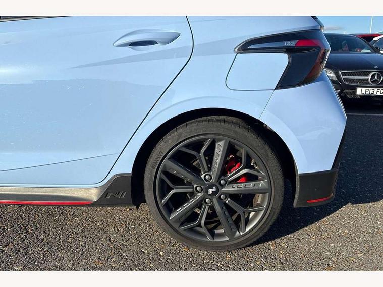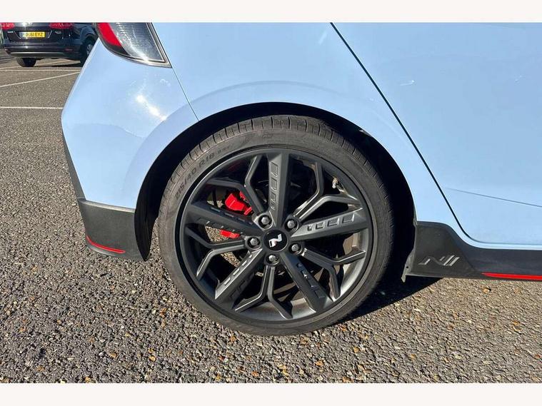10.25" digital supervision cluster, 10.25" touchscreen centre console display satellite navigation including traffic messaging channel, map care and live services, Apple car play/Android Auto, Bluetooth connectivity with voice recognition, Cruise control + speed limiter, Drive mode selector, Driver alert system, eCall emergency call system, Electric power steering, Emergency stop signalling system, Forward collision assist with pedestrian monitoring and cycle detection, Haptic steering, Intelligent speed limit warning, ISG - automatic start/stop, Lane departure warning system, Lane keep assist, N corner carving differential - mechanical limited slip differential, N custom mode, N grin control system, N Rev matching system, Rear parking sensor, Rear view camera with dynamic limitation singnalling, Trip computer, Wireless charging pad, Launch control, Vehicle Stability Control (VSC), Auxiliary input socket, DAB Digital radio, Steering wheel mounted audio/telephone controls, USB connection, Adjustable intermittent front windscreen wipers with aero wiper blade, Auto dimming rear view mirror, Automatic defog system for front windscreen, Automatic headlights with dusk sensor, Automatic windscreen wipers with rain sensor, Black radiator grille with integrated N logo, Black window surrounds, Body colour exterior door handles, Drivers one touch up/down with anti-trap, Electric adjustable heated door mirrors, Electric folding door mirrors, Electric front windows, Electric rear windows, Front fog lights, Gloss black door mirrors with integrated indicators, High beam assist, LED rear combination lights, MFR - LED headlights, Privacy glass - Rear windows and tailgate, Rear apron with integrated diffuser and red accents, Rear fog lights with N exclusive triangular lamp, Rear roof spoiler with integrated LED brake light, Rear side wing doors, Rear Windscreen Wiper - Intermittent Function, Shark fin antenna, Side skirts with red accents, Signature LED daytime running lights integrated into headlamp, Static Cornering lights, Tinted windows, 12v power outlet - front, 3 seat bench in 2nd row, 60/40 split folding rear seat, Adjustable head restraints, Aluminium sports pedals, Black roof liner, Blue interior mood lighting, Climate control, Driver/passenger sunvisors and illuminated vanity mirrors, Front armrest with storage box, Front map reading lights, Heated front seats, Heated steering wheel, Height adjustable driver's seat, Height/reach adjustable steering column, Isofix rear child seat preparation, Leather wrapped gear knob with N logo, Leather wrapped steering wheel with N logo, Luggage board, Luggage compartment lighting, Map pocket in rear seats, N sport seats in fabric/leather upholstery with performance blue stich detail, Parcel shelf, Satin chrome interior door handles, Single front passenger seat, Sound generator with variable silencer control, 3x3 point rear seatbelts, Anti-lock brake system (ABS), Autonomous emergency braking, Childproof rear door locks, Curtain airbags, Driver/Front Passenger airbags, ESP, Fasten seatbelt reminder, Front seatbelt pretensioners, Front side airbags, Height adjustable front seatbelts, Hill start assist control (HAC), Impact sensing auto door unlocking, Manual handbrake, N performance braking system with red calipers and N logo, Passenger airbag deactivate switch, Tyre pressure monitoring system, Deadlocks, Immobiliser, Locking wheel nuts, Perimeter alarm, Rear occupant alert, Remote central locking, Smart key with keyless entry and engine start/stop button, Speed sensitive auto door locking, Black N exclusive interior trim, 18" Matt grey light alloy wheels, Pirelli P-Zero tyres, Tyre repair kit,