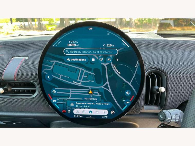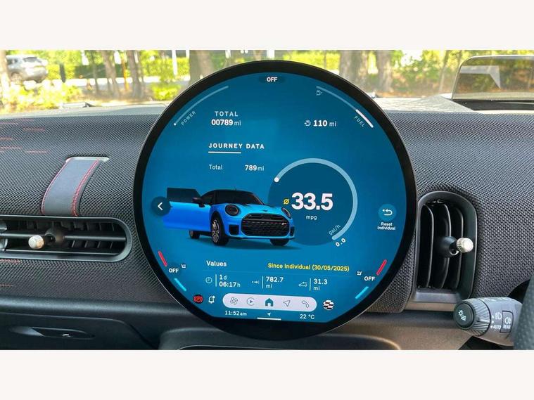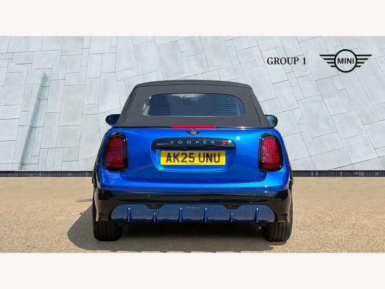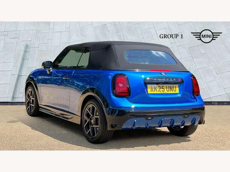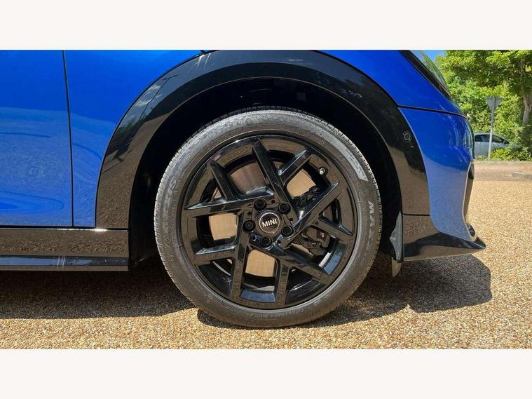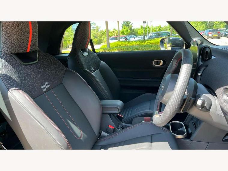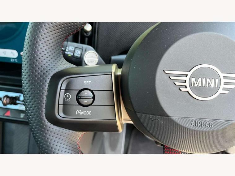 Always open timer, Central toggle bar, Circular OLED Screen, Compatible mobile phone bluetooth with audio streaming, Cruise control, Digital instrument cluster, e-Call (emergency call), MINI Experience Modes, Mini navigation system, On board computer, PAS, Service interval indicator, 7 speed steptronic transmission with double clutch, Adaptive suspension, DAB Digital radio, Personal eSim, Adaptable light signatures, Auto headlights, Electric front windows, Front and rear apron, High gloss hexagonal patterned grille surround, LED 3rd brake light, LED daytime running lights, LED indicator lights, LED rear lights, Logos in Vibrant Silver, Rain sensor window wipers, Rear boot, Rear fog lights, Rear roof spoiler with airblades, Wind deflector, 2 seat bench in second row, 2 zone automatic air conditioning, 60/40 rear seat bench, Ambient lighting, Black lower band in high gloss, Floor mats, Front and rear head restraints, Front compact armrest, Heated steering wheel, Height adjustable passenger seat, Lidded storage box in Black/Red knit, Light headliner, Luggage compartment lighting, Partially perforated vescin steering wheel with red accent, black/red decorative strap, Single front passenger seat, Steering wheel paddle shift, Sunvisors with vanity mirrors, Vescin/Cord combination JCW upholstery includes dash knit in black with red accents, Driving assistant pack - Cooper Convertible, Level 1 pack - Mini Convertible, Park assistant pack - Cooper Convertible, 3 point seatbelts on all four seats, 6 Airbags - front, side, head and seat belt tensioners, Anti-lock braking system (ABS), Brake caliper in Black with JCW badge, DSC - Dynamic Stability Control, Electronic parking brake, Front and rear disc brakes, Front ISOFIX (iSize), Front passenger airbag deactivation, JCW Sport Brakes, Traction control, Tyre pressure monitoring system, Alarm, Immobiliser, Remote central locking, Black/Red decorative dash strap, Tyre repair kit,