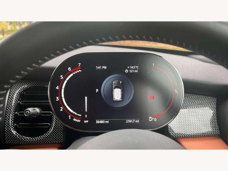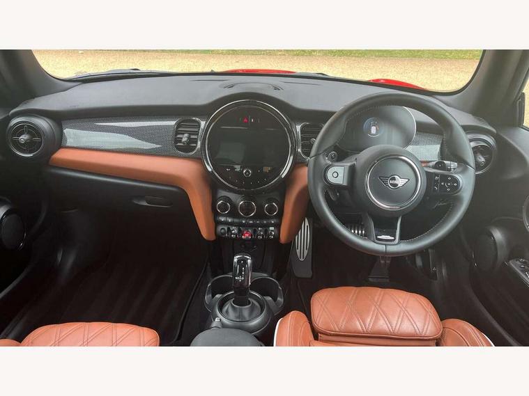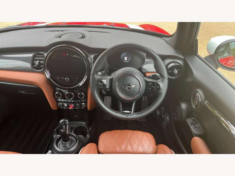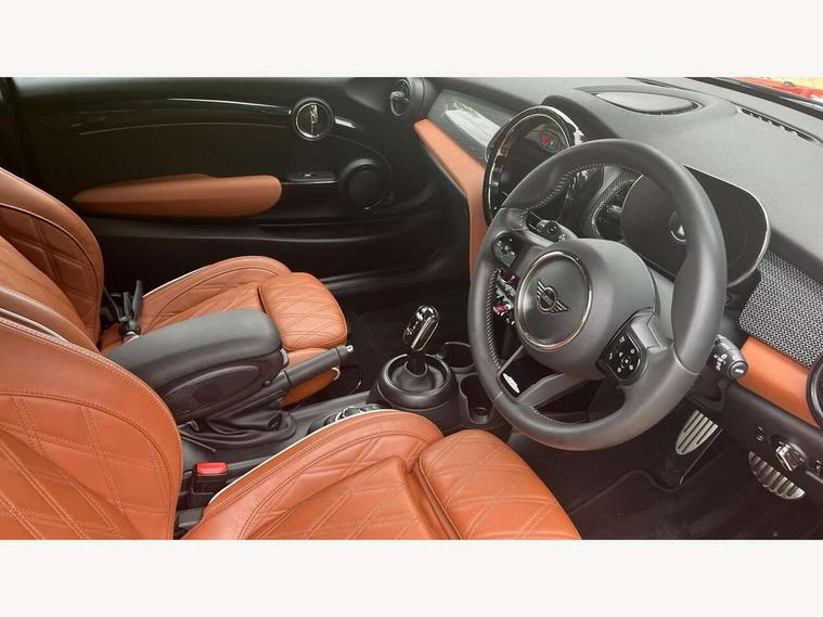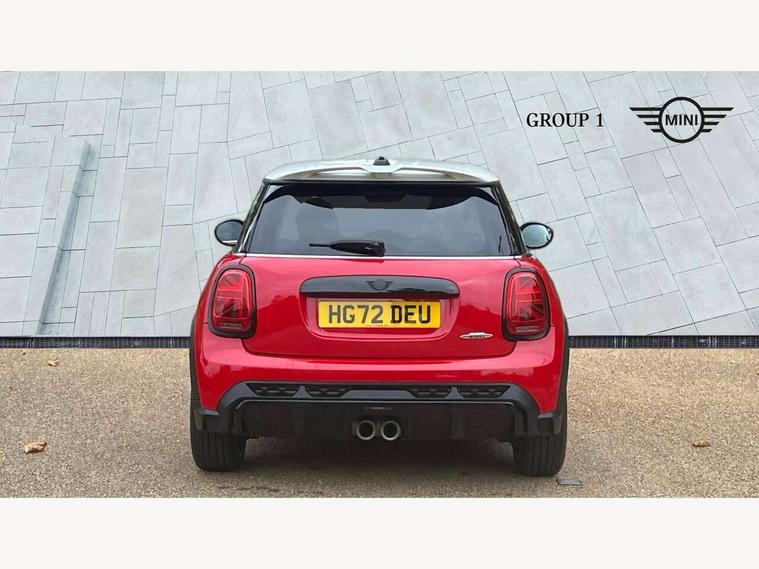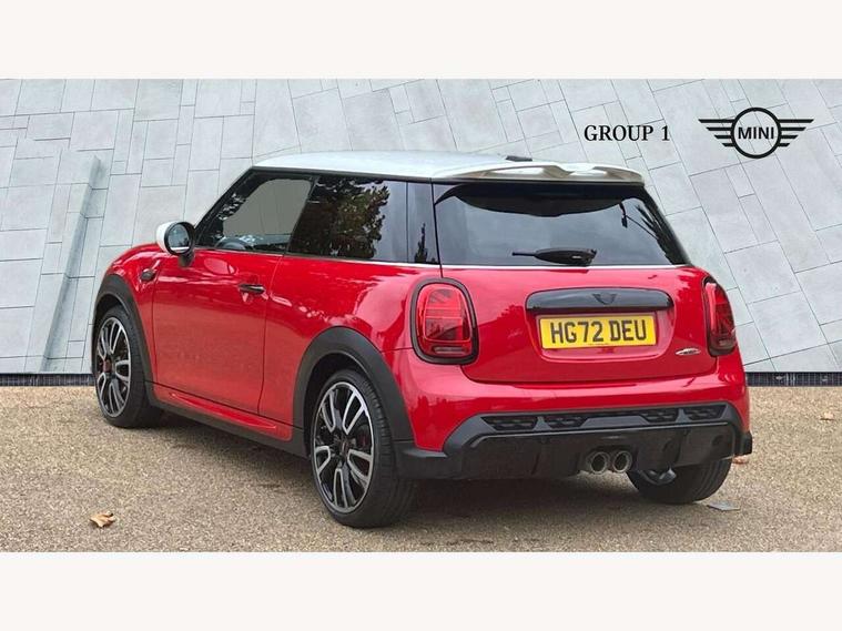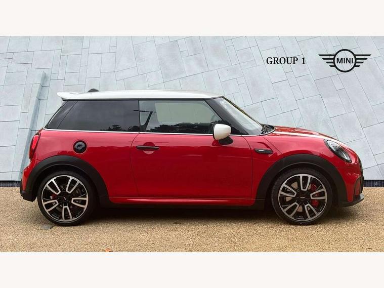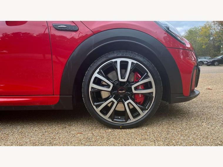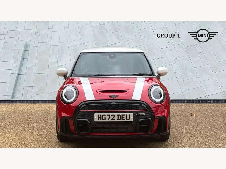 Apple CarPlay, Automatic start/stop function with brake energy recuperation, Compatible mobile phone bluetooth with audio streaming, Cruise control with brake assist, Electro-mechanical speed dependant steering assistance, Flexible car sharing preparation, Instrument cluster, MINI Driving Modes - centre toggle switch to control driving setting (sport, mid and green), Mini E-call, MINI TeleServices, On board computer, Rear park distance control, Service interval indicator, Double Vanos system, Eight speed steptronic sport transmission, with gearshift paddles, Fully variable valve control, High precision injection, Performance Control, 8.8" touchscreen with LED ring, FM tuner and DAB digital radio, 3rd brake light, Automatic headlight activation switch, Bonnet scoop, Dynamic brake lights, Electric front windows, Heated rear window, Heated windscreen washer jets, JCW Aerodynamic kit - Front and rear bumpers with sporty JCW styling and part-painted side sills with MINI John Cooper Works door sill finishers, John Cooper Works logo above an individual grille strut in Chilli Red, John Cooper Works rear spoiler, LED headlight with closed ring and daytime driving lights, Radiator grille piano black border with honeycomb structure in black matt, Rain sensor window wipers, Rear fog lights, Rear LED lights with union jack design, Rear window wiper, Side scuttle panel with integrated indicator, Side scuttle with MINI John Cooper Works logo in black high-gloss with red border, Sun/heat protection glass, Two central exhaust tailpipes with chrome finisher, White indicator lenses, 12V Accessory socket in centre console, 2 seat bench in 2nd row, 4 lashing eyes in luggage compartment, 60/40 split folding rear seat, Anthracite headliner including grab handles and clothes hooks, Carbon black colour line - Knee roll and door armrest, Chrome interior highlights, Cupholders, Front and rear isofix with front passenger airbag deactivation, Front floor mats in velour, Glove compartment, Height and length steering column adjustment, Interior lighting with 12 different colours across the dashboard, underneath door bezel with illuminated laser-engraved design on central display, JCW Sport seats with integrated headrests, adjustable thigh support and John Cooper Works logo, Leatherette gearshift lever and handbrake gaiters, LED reading lights, vanity mirror lights, front foot well light and spotlight on front seats, Manual air conditioning, Mechanical seat adjustment - forward/back & backrest for front seats and driver seat height adjust, Multifunction steering wheel, Passenger seat height adjuster, Rubberised stainless steel pedals, Single front passenger seat, Storage compartments in doors, Storage pocket on back of front seats, Sunvisors with vanity mirrors, Tool kit, Walknappa leather steering wheel with grey seam and John Cooper Works badge on Piano Black lower steering wheel spoke, Piano black exterior pack - JCW, 3 point seatbelts on all four seats, 4-piston fixed-calliper brakes front, 6 Airbags - front, side, head and seat belt tensioners, Anti-lock braking system (ABS), DSC - Dynamic Stability Control, Front and rear disc brakes, Red brake callipers with John Cooper Works logo, Single tone fanfare horn, Tyre pressure monitoring system, Alarm system with tilt sensor, monitoring doors, bonnet interior and tailgate, Electronic vehicle immobiliser, Start/stop toggle with keyless go,