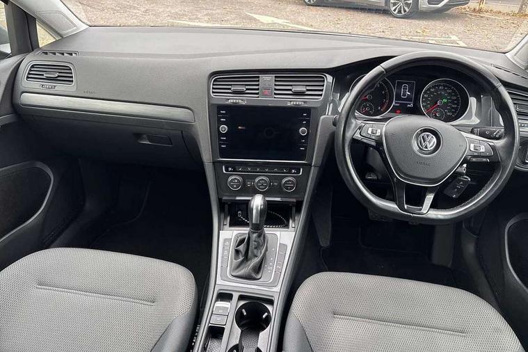 'Lights On' Reminder warning buzzer, ACC - Adaptive cruise control with front assist, forward collision warning, distance monitoring, city emergency brake and speed limiter, Bluetooth telephone and audio connection for compatible devices, Brake pad wear indicator warning light, Driver alert system, Driving Mode Selection with four preset modes - Eco, normal, sport or individual modes, Multifunction computer with visual gear change recommendation for fuel consumption, Power assisted speed sensitive electro-mechanical steering, Push tank flap, Speed limit display, Speedo, rev counter, electronic odometer, trip, service interval display, exterior temperature and fuel gauge, Stop/start system, Think blue trainer driver tips and journey analysis, Warning buzzer and light for front seatbelts unfastened, Battery regeneration during braking, XDS electronic differential lock, Composition media system, DAB Digital radio receiver, Driver Personalisation profile selection, MP3/WMA compatability, Multi device interface (MDI) via USB connection, Premium USB cable in choice of either Apple or Android smartphone compatibility, SMS Functionality, Title and cover art display, USB and SD card connectivity, Volkswagen media control, Black front air intake and radiator grille with chrome insert, Black rear diffuser, Body colour bumpers, Body colour door handles, Body colour door mirrors with integrated indicators, Dusk sensor + automatic driving lights, Electric front windows, Electric rear windows, Electrically adjustable and heated door mirrors, Fully galvanised body, Heated rear windscreen, High level 3rd brake light incorporating LED Technology, LED front fog lights with static cornering light function, Range adjustable headlights via infotainment system with LED daytime running lights, Rear fog lamp, Rear number plate lights incorporating LED technology, Rear tinted glass 65% light absorbing from B pillar backwards, Rear window aerial, Rear window wash/wipe with intermittent wipe, Reflectors in all doors, Tailgate with integrated rear roof spoiler, Windscreen wipers/ intermittent wipe + 4 position delay, 12V socket in luggage compartment, 3 rear headrests, 4 load lashing points in luggage compartment, 60/40 split folding rear seat backrest, Bag hook in luggage compartment x 2, Climate control - 2 zone electronic air conditioning with automatic air recirculation and allergy filter, Cooled glovebox, Cover for storage compartment in centre, Dust/pollen filter, Front and rear reading lights X 2, Front centre armrest with storage compartment and two rear air vents, Front seat back storage pockets, Grab handles front x 2, rear x 2 with integrated coat hooks, Height and reach adjustable steering wheel, Illuminated vanity mirrors, Instrument lighting white adjustable panel illumination, Interior light delay, Isofix preparation for 2 rear child seats, Load through provision with rear centre armrest and cupholders x2, Luggage compartment lighting, Overhead storage box, Pearl grey headlining, Storage box in luggage compartment, Storage compartment in roof console with cover, Storage compartments in centre console, Storage compartments in front doors, Storage compartments in rear doors, Stowable luggage compartment cover, Sun visors, Variable boot floor, height adjustable and removable, Convenience Pack - Golf, Mirror pack - Golf, Winter pack - Golf, 3 rear three point seatbelts, Airbags - Driver's and front passenger's, curtain airbag, Driver's knee, front side impact and passenger's airbag deactivation switch, Anti-lock Braking System (ABS) with Hydraulic Brake Assist (HBA), Automatic post collision braking system, Child locks on rear doors, Driver/Passenger optimised head restraints, Electronic parking brake with auto hold, Electronic stability control (ESC) including Electronic differential lock (EDL) and ASR (Traction control) with deactivation via infotainment system, Front ventilated disc brakes and rear disc brakes, Pre crash preventive occupant protection, Three point height adjustable front seatbelts with tensioners, Tyre pressure loss indicator, Alarm with interior protection and deactivation via infotainment system, Electronic engine immobiliser, Brushed dark silver decorative inserts in dash and door panels, Chrome plated air vent surround, Chrome-plated light switch surround, Polar night black decorative inserts in centre console, Steel space saver spare wheel,