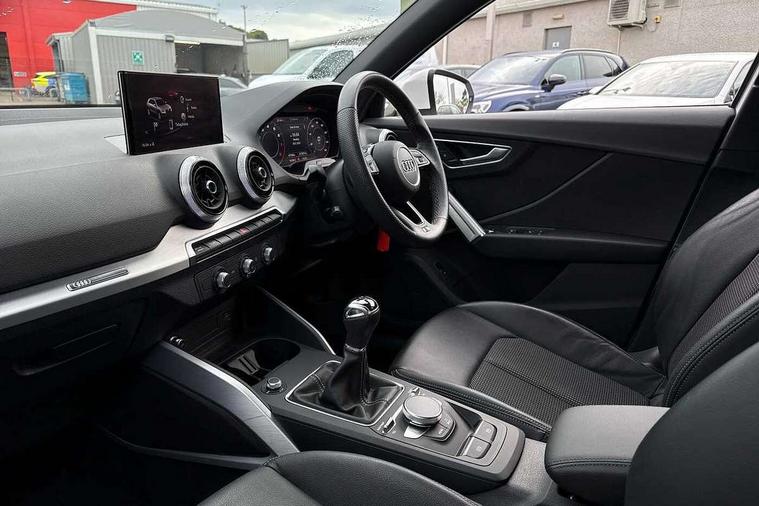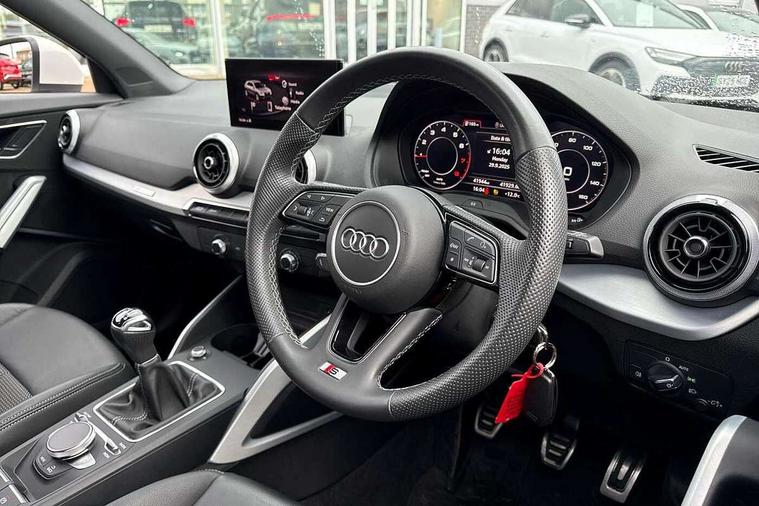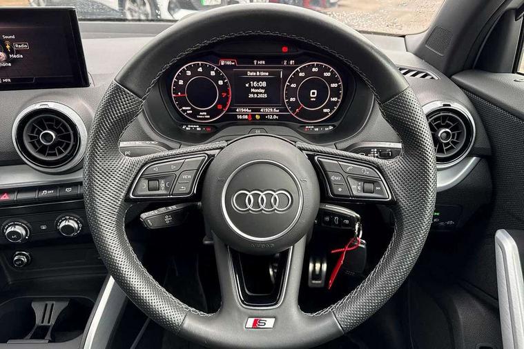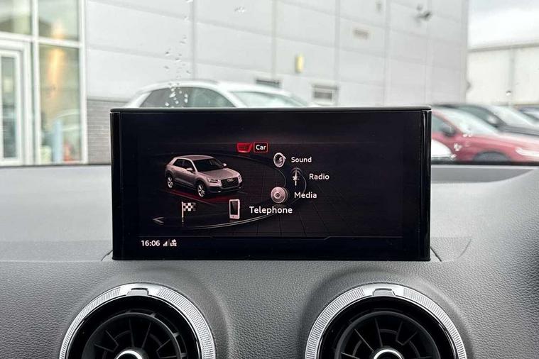 3D map display, Audi connect navigation and infotainment includes innovative services, Audi connect remote and control connects your vehicle to your smartphone, Audi drive select: power steering assistance + engine (modes: comfort, auto, dynamic, individual), Audi smartphone interface - Apple carplay/Android Auto, USB connect, 2xSDXC card readers, voice control for navi, telephone, music and 3rd party apps, Audi virtual cockpit, Automatic start/stop system with recuperation, Cruise control, E-call, Jukebox hard drive memory for music (10GB), MMI navigation plus with 8.3" colour MMI screen and MMI touch, Natural voice recognition, Power operated tailgate, Progressive steering, Sport suspension, DAB Digital radio, Auto dimming rear view mirror, Black window trims, Body colour door mirrors, Electrically adjustable, folding, auto dimming and heated door mirrors with integrated LED side indicators, Front windscreen with grey tinted sunband, LED daytime running lights, LED headlights with dipped beam, high beam, position lights, indicators, LED rear lights, LED third brake light, Privacy glass - dark tinted rear and rear side windows from B-pillar backwards, Rear side wing doors, Rear wiper, S Line badges on the front wings, S Line body styling - front and rear bumpers, side skirts, radiator grille, rear diffuser insert and front air intakes, Variable front intermittent wipers, Wheel arch trims in manhattan grey, 12v socket in front, 3 seat bench in 2nd row, 3 spoke multi-function leather steering wheel with S badging, 4-way electric lumbar support for front seats including manual seat height adjustment for both front seats, 60/40 split folding rear seat bench, Black carpets, Black cloth headlining, Front and rear head restraints, Front centre armrest, Front sport seats, Front/rear floor mats, Height/reach adjust steering wheel, Illuminated door sill trims with S logo, ISOFIX child seat mounting in front passenger and rear outer seats, Single front passenger seat, Stainless steel pedals, Technology Pro pack - Q2, 3x3 point rear seatbelts, 6 airbags - Front, curtain and front side airbags, Electromechanical parking brake, Electronic stabilisation control including ABS, ASR and EDL, Front passenger airbag deactivation, Hill hold assist, Pre-sense front with pedestrian recognition, Seatbelt monitoring, Tyre pressure warning light with visual and acoustic warning, Warning triangle and first aid kit, Anti theft alarm, Anti theft wheel bolts, Electronically operated child locks, Remote central door locking, Aluminium interior element, Black dashboard, Matt brushed aluminium trim inlays, Tool kit,