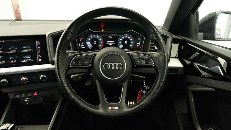 10.25" Digital instrument cluster display classis style instrument dials + speed, odometer, time, outside temperature, telephone menu + fuel level warning, Audi connect safety emergency and service including E-call, Audi drive select - power steering assistance + engine, Audi smartphone interface with connect compatible smartphone via USB directly MMI display + Nav, music, third party apps controlled via MMI controller, Automatic start/stop system, Bluetooth interface, Cruise control, Driver's information system, Electromechanical power steering, Lane departure warning system, Service interval indicator, Speed limiter, Voice control system, Washer fluid level indicator, Sports suspension, 1 x SDXC card reader, 2 x USB type C connection points, DAB Digital radio, MMI radio plus with 8.8" colour MMI display screen and MMI touch, Auto dimming rear view mirror, Body coloured door mirrors, Door sills with aluminium inlays and S Line logo, Electric front and rear windows, Electrically adjustable, heated, folding door mirrors with integrated LED side indicator, Front side air inlets in grained matt black and C frame in titanium black, Heat insulating glass windscreen and side windows, Heated rear windscreen, LED headlights with LED rear lights + dynamic rear indicators + headlight adjustment and high beam, turning light + LED daytime running lights, Radiator grille and rear diffuser in matt titanium black, Radiator protective grille frame in matt aluminium silver, Rain and light sensors, Rear fog lights, Rear wiper, S line badges on front wings, Side front spoiler lips in grained matt black, 12V socket in centre console with two cup holders, 3 rear seats with headrests, 40:60 Split folding rear seat or folded fully, Black cloth headlining, Driver and passenger seat with manual height adjust with forward and backwards adjustment, Front and rear black floor mats with contrast stitching in fine silver, Front head restraints, Height and reach adjustable steering wheel, ISOFIX child seat mounting for front passenger and outer rear seats including top tether attachment point of outer rear seats, Leather gear knob with aluminium trim, Luggage compartment light with front and rear reading lights, Manually adjustable lumbar support in front seats, Stainless steel pedals, LED interior lighting pack - A1, Luggage compartment pack - A1, S line exterior styling pack - A1 Sportback, 3x3 point rear seatbelts, Audi pre-sense front with pedestrain and cyclist recognition, Brake assist function, Driver and front passenger airbag with front side and head airbags, Electronic Stability Control including ABS, EBD, ASR and EDL, Front and rear seatbelt reminder, Front passenger airbag deactivation switch, Hill hold assist, Seatbelt height adjustment for front seats, Seatbelt monitoring, Tyre pressure warning light, Warning triangle and first aid kit, Anti theft alarm, Anti theft wheel bolts and loose wheel warning, Immobiliser, Remote central locking with 2 foldaway keys, Aluminium trim for control switches, air vents and digital instrument cluster, Silver grey inlays polygon structure in diamond paint finish, Structured grey accent areas including air vents, door handle recesses and centre console in quartz paint finish,