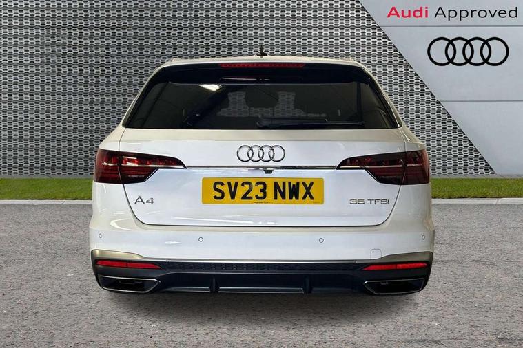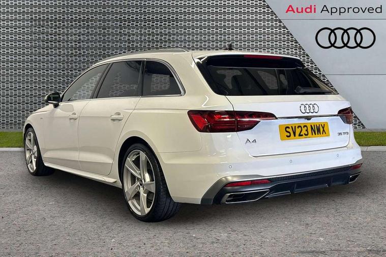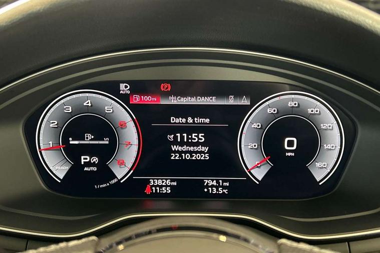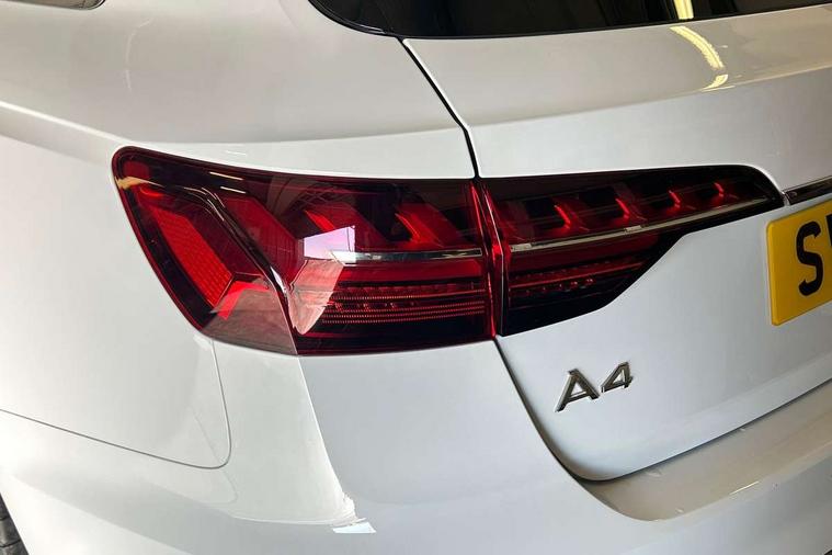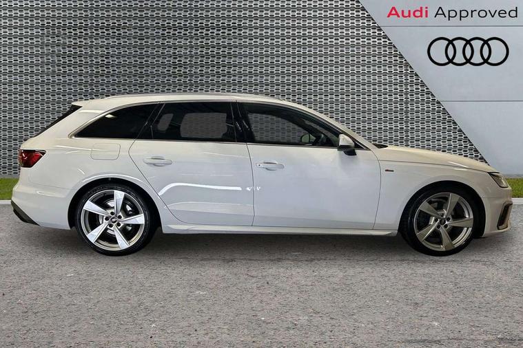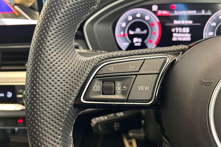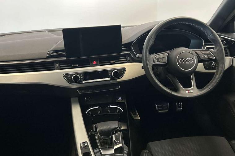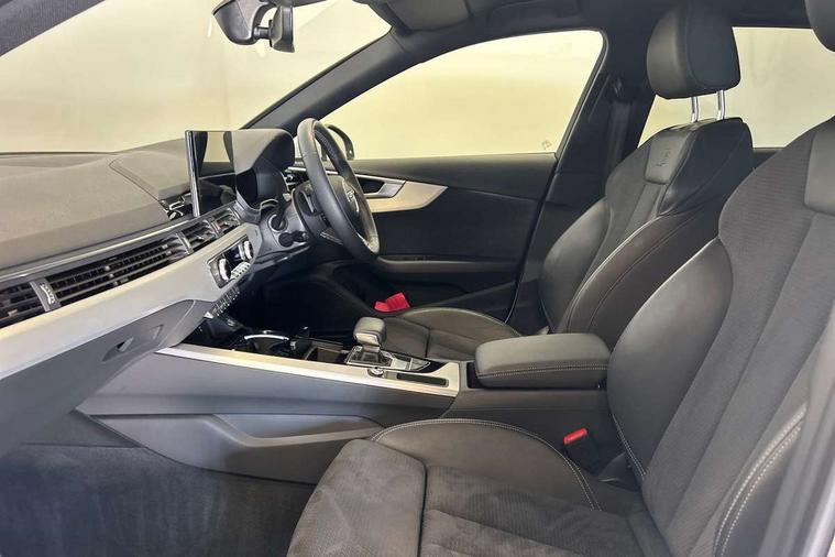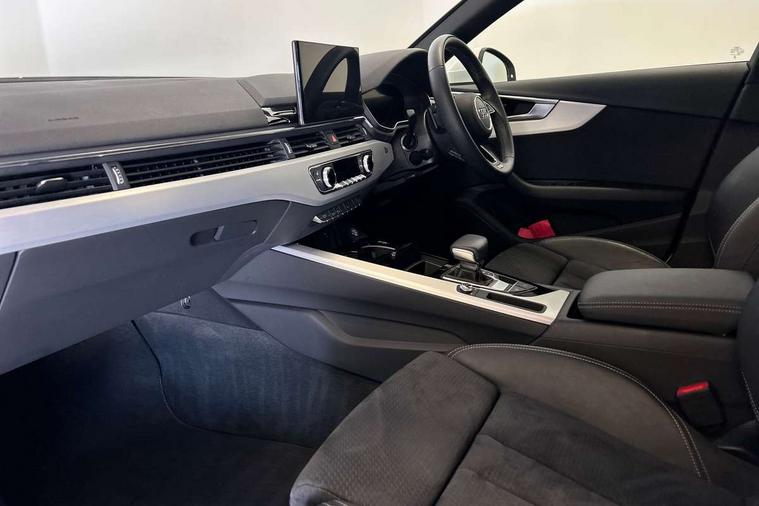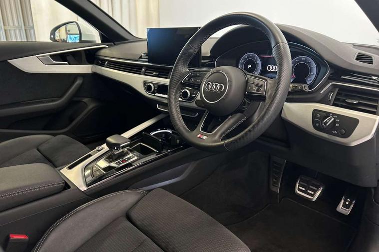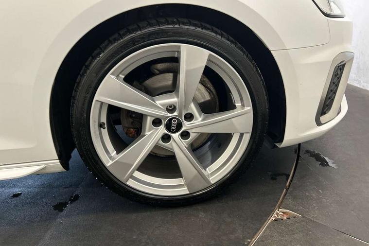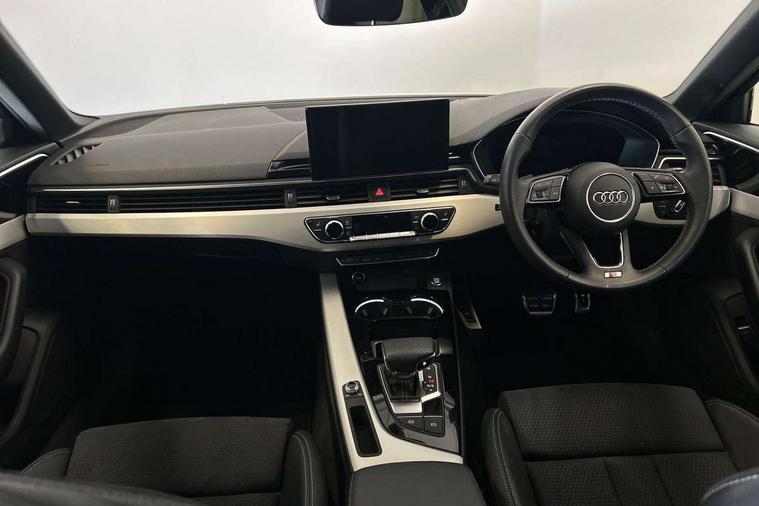 Audi connect safety and service (e-call), Audi connect with Amazon Alexa Integration, Audi drive select, Audi smartphone interface, Audi virtual cockpit, Automatic start-stop system with coasting functionality and efficiency programme, Bluetooth interface, Electromechanical power steering, Email, calendar and text messages displayed via MMI, MMI Navigation plus with MMI touch includes 10.1" high resolution colour MMI display, 3D map, Power operated tailgate, Voice control system, 54 litre fuel tank, Sports suspension lowered by 23mm, 2 USB charging ports, 8 passive loudspeakers, DAB digital radio reception, Aluminium roof rails, Auto dimming rear view mirror, Body colour door handles, Body colour front spoiler lip, Body colour side sill trim, Body coloured door mirrors, Electrically folding auto dimming/adjustable/heated door mirrors with LED side indicators and kerb view function for passenger side, Grained matt black side air inlets with matt aluminium silver inlay, High beam assistant, Honeycomb structure radiator grille in grained matt black, LED headlights with LED rear lights + dynamic rear indicators + headlight adjustment and high beam, turning light + LED daytime running lights, LED third brake light, Matt aluminium silver tailpipe trim, Privacy glass, Rain and light sensors, Rear side wing doors, Rear wiper, S Line badges on the front wings, S line front and rear bumpers with side skirts, S Line rear diffuser in matt anthracite black with trim strip in matt aluminium silver, S Line roof edge spoiler, Variable intermittent front wash/wipe, Windscreen with acoustic glazing, 3 spoke high multi-function sports leather steering wheel grips in perforated leather with S badging including paddle shift, 4 way electric lumbar support for driver and front passenger, 40/20/40 split folding 3 rear seat bench in 3 parts with rear centre armrest, Black cloth headlining, Black perforated leather gearknob, Contrast stitching on seats, steering wheel and gear lever gaiter, Deluxe 3 zone electronic climate control, Door sill trims with aluminium inlay, Electric load area cover, Front and rear head restraints, Front centre armrest, Heated front seats, Illuminated door sill trims with S logo, ISOFIX child seat mounting and top tether, Manual seat adjustment, Single front passenger seat, Stainless steel pedals and foot rest, High gloss package - A4, LED Interior light pack - A4/S4, 3 rear seatbelts, 6 airbags - Driver, front passenger, curtain and side windows, Electronic Stabilisation Control (ESC) including ABS, ASR and EDL, Hill hold assist, Multi collision brake assist, Pop-up bonnet for pedestrian protection, Pre sense city, Rear door child safety locks, Seatbelt monitoring, Warning triangle and first aid kit, Anti theft alarm, Anti theft wheel bolts, Central locking, Keyless Go, Matt brushed aluminium inlays, Tool kit, Tyre repair kit,
