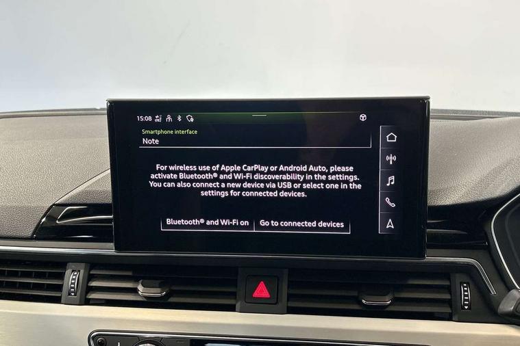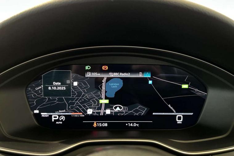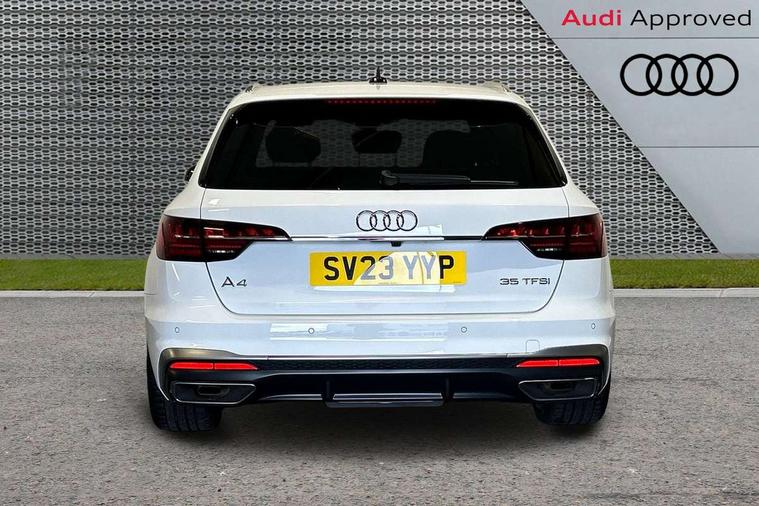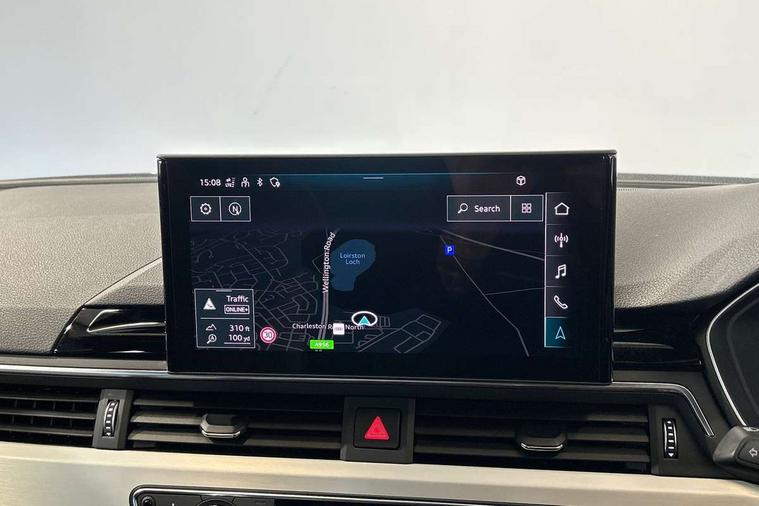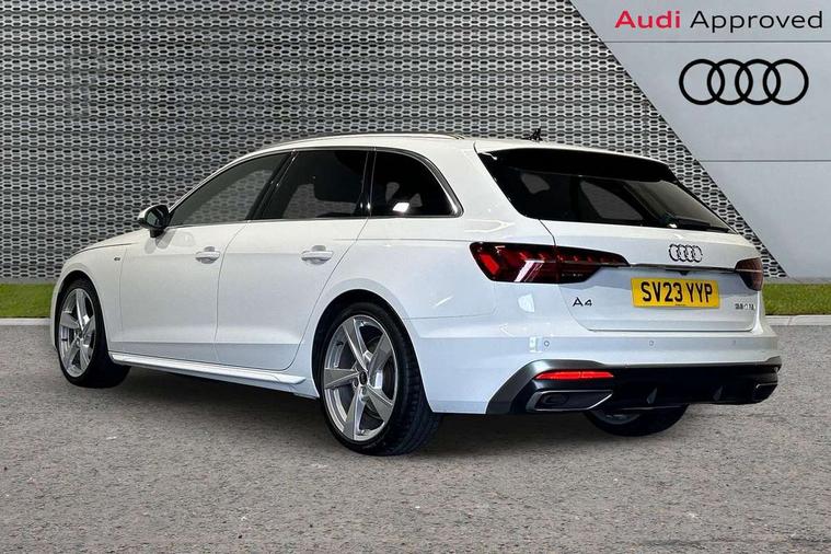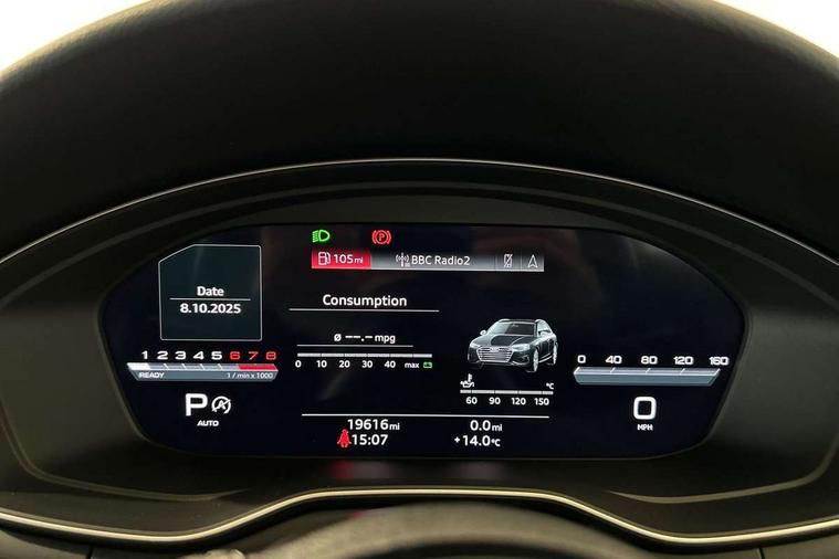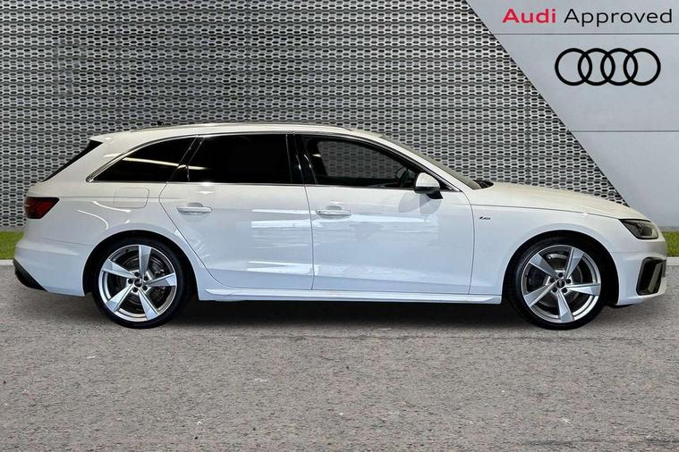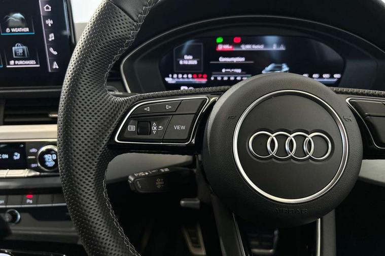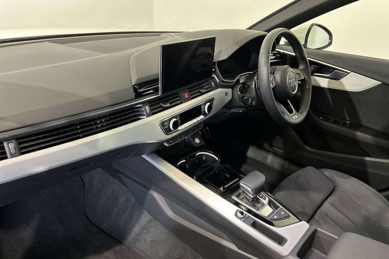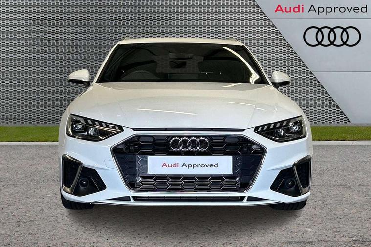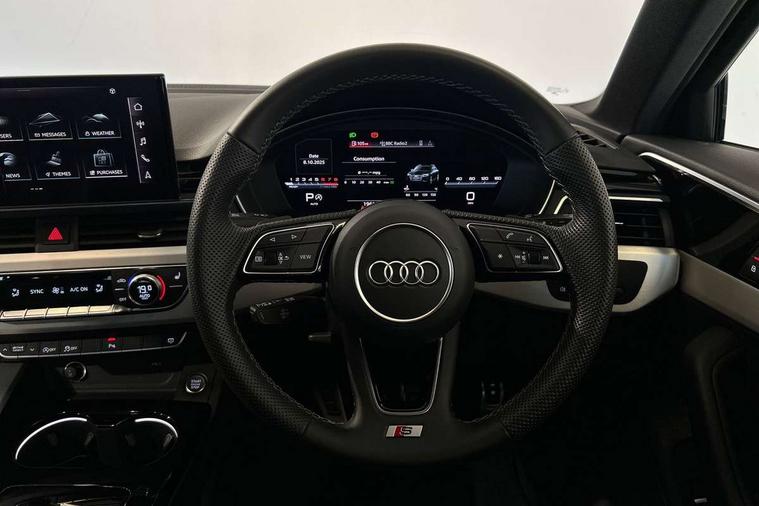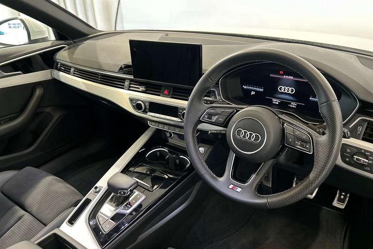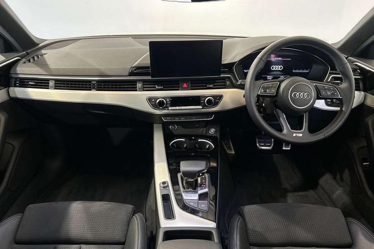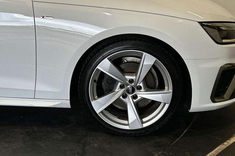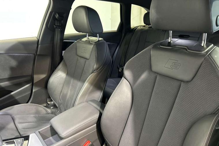 Audi connect safety and service (e-call), Audi connect with Amazon Alexa Integration, Audi drive select, Audi smartphone interface, Audi virtual cockpit, Automatic start-stop system with coasting functionality and efficiency programme, Bluetooth interface, Electromechanical power steering, Email, calendar and text messages displayed via MMI, MMI Navigation plus with MMI touch includes 10.1" high resolution colour MMI display, 3D map, Power operated tailgate, Voice control system, 54 litre fuel tank, Sports suspension lowered by 23mm, 2 USB charging ports, 8 passive loudspeakers, DAB digital radio reception, Aluminium roof rails, Auto dimming rear view mirror, Body colour door handles, Body colour front spoiler lip, Body colour side sill trim, Body coloured door mirrors, Electrically folding auto dimming/adjustable/heated door mirrors with LED side indicators and kerb view function for passenger side, Grained matt black side air inlets with matt aluminium silver inlay, High beam assistant, Honeycomb structure radiator grille in grained matt black, LED headlights with LED rear lights + dynamic rear indicators + headlight adjustment and high beam, turning light + LED daytime running lights, LED third brake light, Matt aluminium silver tailpipe trim, Privacy glass, Rain and light sensors, Rear side wing doors, Rear wiper, S Line badges on the front wings, S line front and rear bumpers with side skirts, S Line rear diffuser in matt anthracite black with trim strip in matt aluminium silver, S Line roof edge spoiler, Variable intermittent front wash/wipe, Windscreen with acoustic glazing, 3 spoke high multi-function sports leather steering wheel grips in perforated leather with S badging including paddle shift, 4 way electric lumbar support for driver and front passenger, 40/20/40 split folding 3 rear seat bench in 3 parts with rear centre armrest, Black cloth headlining, Black perforated leather gearknob, Contrast stitching on seats, steering wheel and gear lever gaiter, Deluxe 3 zone electronic climate control, Door sill trims with aluminium inlay, Electric load area cover, Front and rear head restraints, Front centre armrest, Heated front seats, Illuminated door sill trims with S logo, ISOFIX child seat mounting and top tether, Manual seat adjustment, Single front passenger seat, Stainless steel pedals and foot rest, High gloss package - A4, LED Interior light pack - A4/S4, 3 rear seatbelts, 6 airbags - Driver, front passenger, curtain and side windows, Electronic Stabilisation Control (ESC) including ABS, ASR and EDL, Hill hold assist, Multi collision brake assist, Pop-up bonnet for pedestrian protection, Pre sense city, Rear door child safety locks, Seatbelt monitoring, Warning triangle and first aid kit, Anti theft alarm, Anti theft wheel bolts, Central locking, Keyless Go, Matt brushed aluminium inlays, Tool kit, Tyre repair kit,