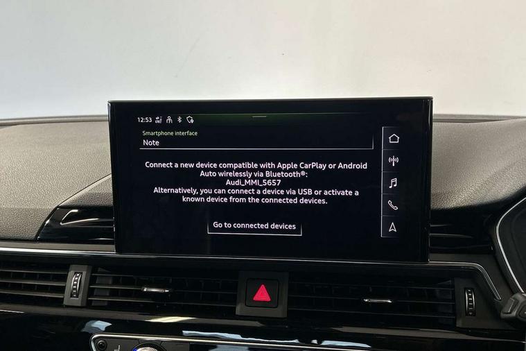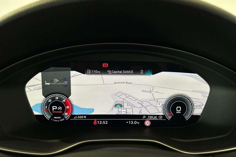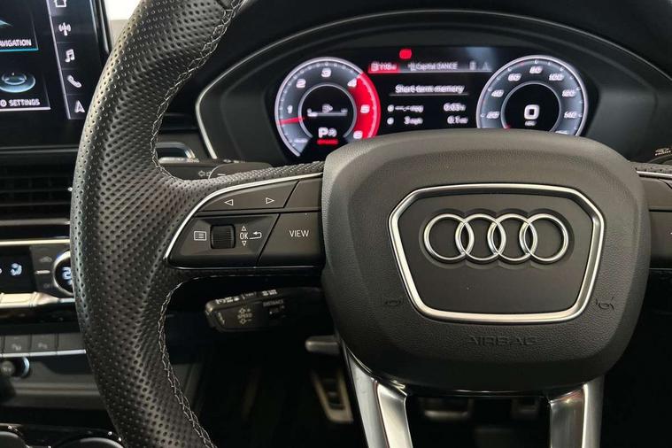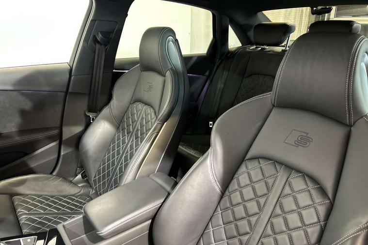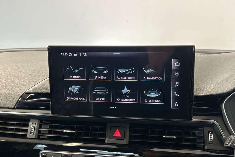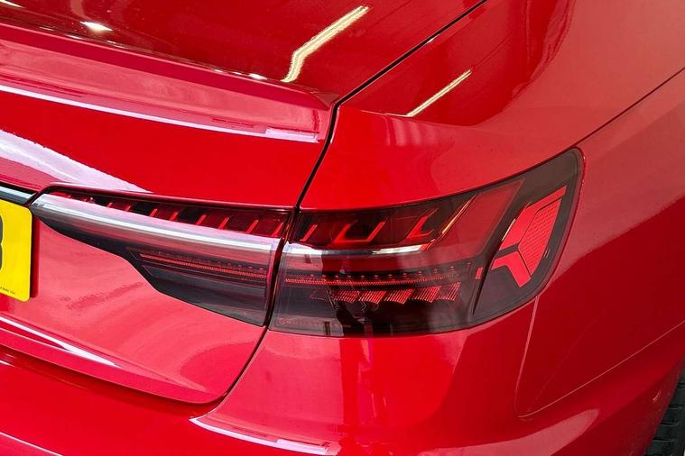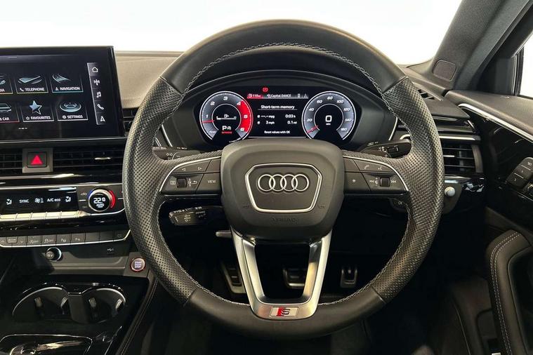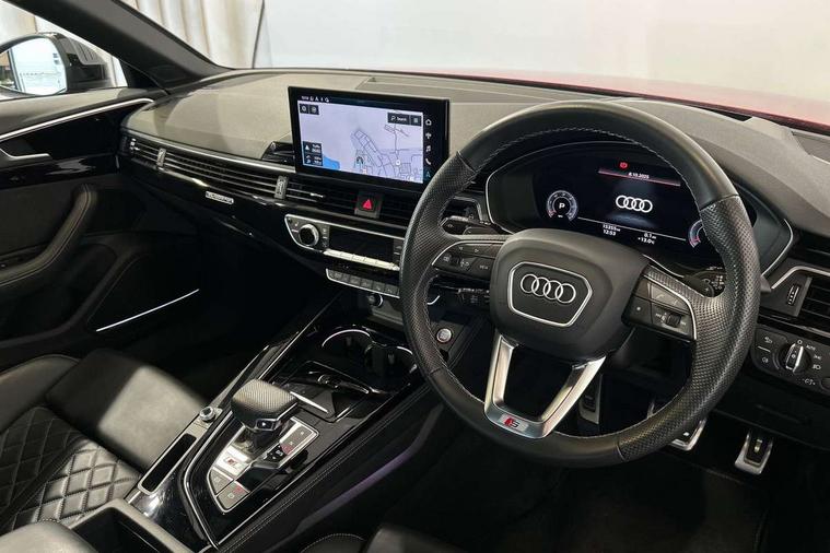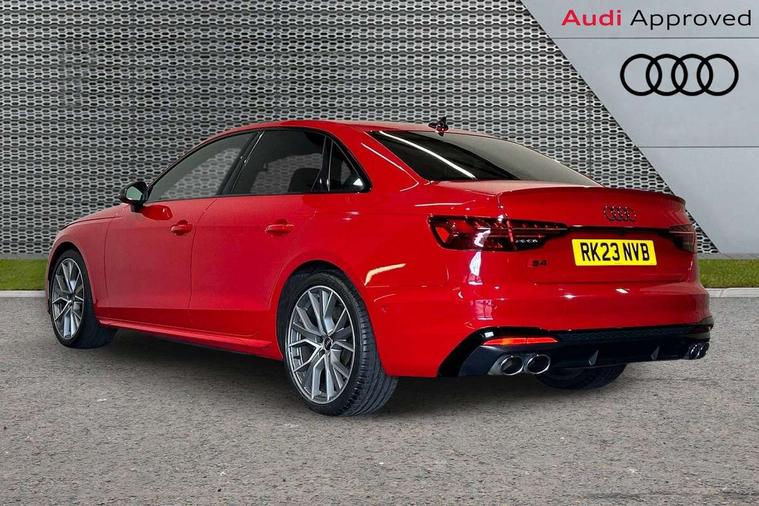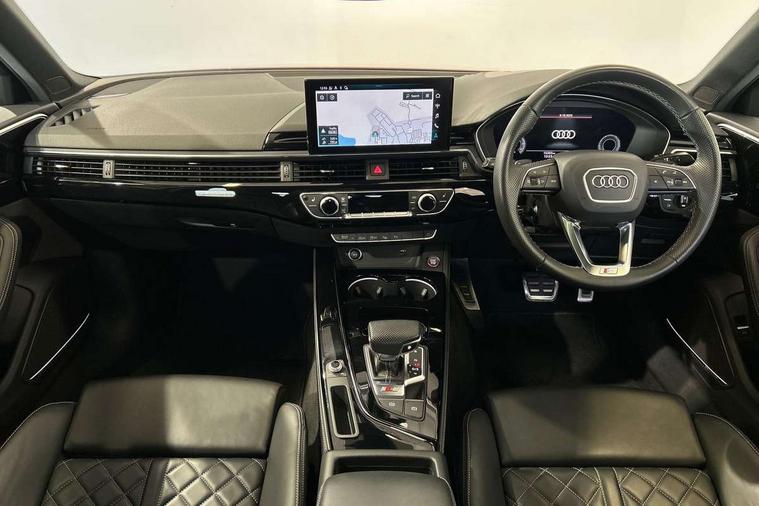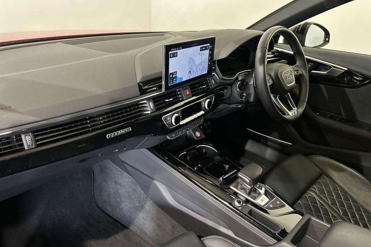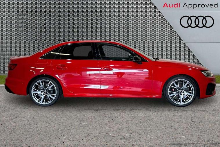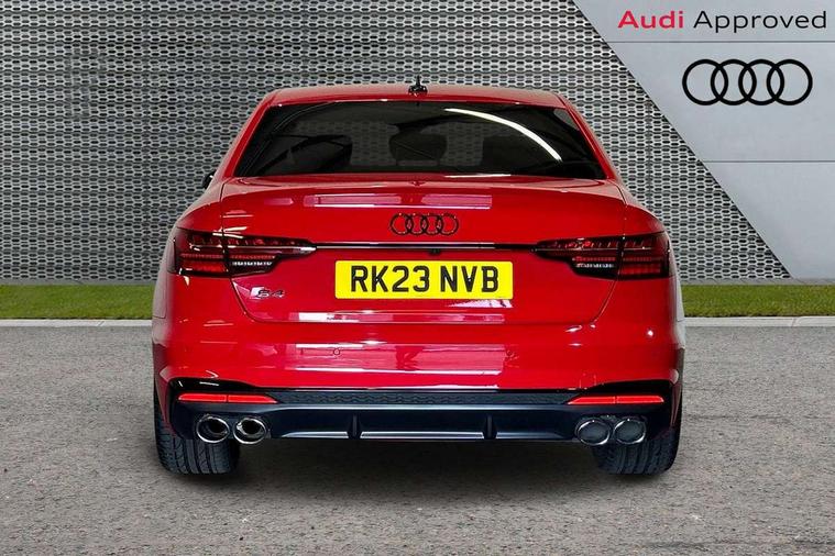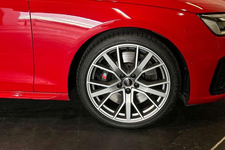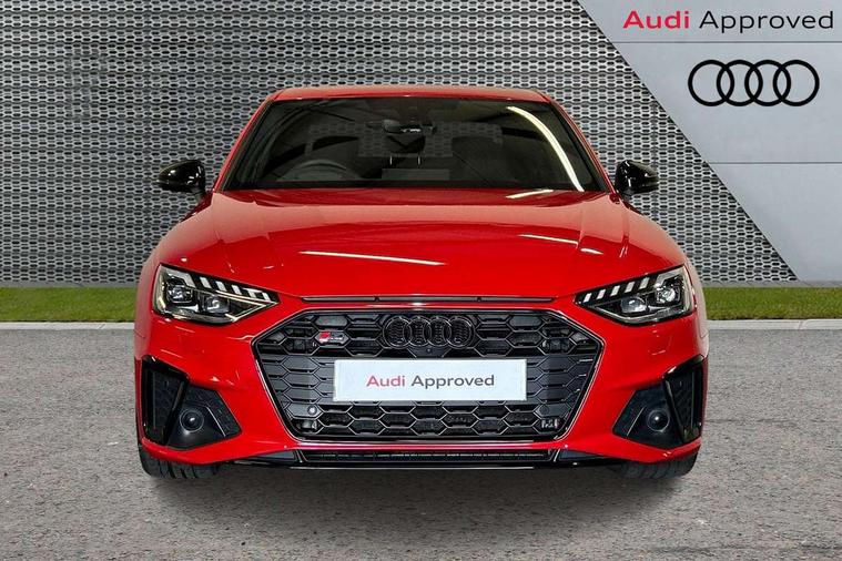 Audi connect safety and service (e-call), Audi connect with Amazon Alexa Integration, Audi drive select, Audi smartphone interface, Audi virtual cockpit, Automatic start-stop system with coasting functionality and efficiency programme, Bluetooth interface, Electric boot lid release, Electromechanical power steering, Email, calendar and text messages displayed via MMI, Head up Display, MMI Navigation plus with MMI touch includes 10.1" high resolution colour MMI display, 3D map, S instrument dials, Voice control system, 58 Litre fuel tank, Adaptive S sport suspension with damping control, Audi sports differential, 2 USB charging ports, DAB digital radio reception, Audi beam uses LEDs to project the audi logo in front and Vorsprung in rear, Audi matrix LED headlights with LED rear lights + dynamic front and rear indicators, Audi rings and model badging in black, Auto dimming rear view mirror, Auto dimming with folding door mirrors and memory function, Body colour door handles, Body colour front spoiler lip, Body colour side sill trim, Electric slide and tilt sunroof, Front and rear bumpers with side skirts, High beam assistant, High gloss black B pillar trims and triangular rear door trim, LED daytime running lights, LED third brake light, Privacy glass, Rain and light sensors, Rear boot, Rear side wing doors, S Line badges on the front wings, S rear diffuser in twilight grey matt and honeycomb grille in black, S specific dual branch chrome tailpipes with twin oval pipes on left and right, S specific side air inlets in black with chrome inlays in unique S design, S Style rear spoiler, Variable intermittent front wash/wipe, Windscreen with acoustic glazing, 3 spoke high multi-function sports leather steering wheel grips in perforated leather with S badging including paddle shift, 40/20/40 split folding 3 rear seat bench in 3 parts with rear centre armrest, Black cloth headlining, Black leather gear lever knob, Contrast stitching on seats, steering wheel and gear lever gaiter, Deluxe 3 zone electronic climate control, Door sill trims with aluminium inlay, Electrically adjustable front seats with memory function for driver's side, Fine nappa leather upholstery with S embossed logo + super sports seats, Front and rear head restraints, Front centre armrest, Gear lever with diamond S badge, Heated front and outer rear seats, Illuminated door sill trims with S logo, ISOFIX child seat mounting and top tether, Key with S logo, Pneumatically adjustable lumbar support with massage function, Single front passenger seat, Stainless steel pedals and foot rest, Black styling pack - A4 Saloon Sport Edition/S4 Black edition/S4 Vorsprung, City driver assistance pack - A4/S4, Comfort and sound pack - A4, Driver assistance pack - A4/S4, Extended leather pack - A4/S4, Parking assistance advanced pack - A4 Vorsprung, 3 rear seatbelts, 6 airbags - Driver, front passenger, curtain and side windows, Electronic Stabilisation Control (ESC) including ABS, ASR and EDL, Front brake calipers painted in black with S4 logo, Hill hold assist, Multi collision brake assist, Pop-up bonnet for pedestrian protection, Pre sense city, Rear door child safety locks, S model enhanced braking system, Seatbelt monitoring, Warning triangle and first aid kit, Anti theft alarm, Anti theft wheel bolts, Central locking, Keyless Go, 19" 5 V spoke star design alloy wheel in matt grey look, Tool kit, Tyre repair kit,