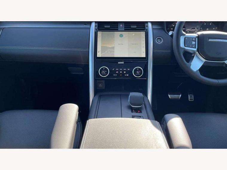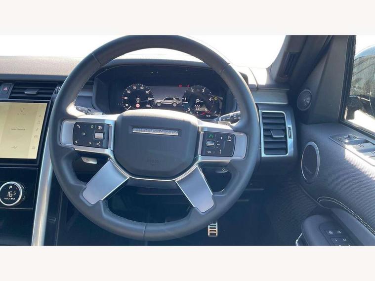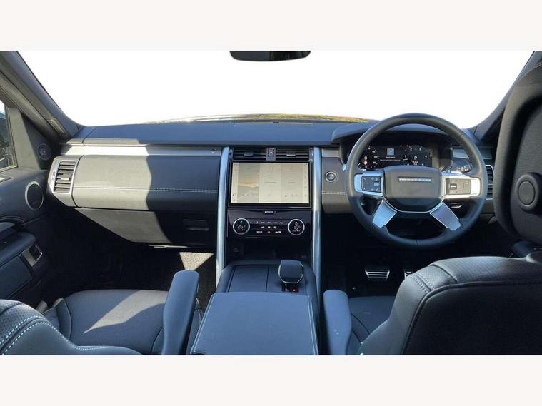 11.4" touchscreen, 3D surround camera, Adaptive cruise control, Android Auto, Apple car play, Blind spot assist, Driver condition monitor, Electric power assisted steering (EPAS), Emergency services call system, Front and rear parking aid, Interactive driver display, Lane keep assist, Power inner tailgate, Power tailgate/boot lid, Push button start, Rear collision monitor, Rear traffic monitor, Remote, Remote boot release, Service interval indicator, Speed proportional steering, Sportshift selector, Stop/start system, Traffic sign recognition with adaptive speed limiter, Trip computer, Wade Sensing, Adaptive dynamics, Dynamic stability control, Electronic air suspension, Front axle open differential, Digital Audio Broadcast radio-DAB, Dynamic volume control, Pivi pro connected, USB/aux input socket, Acoustic laminated windscreen, Animated directional indicators, Auto dimming interior rear view mirror, Auto high beam assist, Automatic headlight levelling, Automatic headlights, Body colour bumpers, Body colour door handles, Centre high mounted stop light, D300 badge, Electric heated/power fold memory door mirrors with approach lights and auto dimming driver side, Electric windows with one touch open/close and anti-trap, Heated rear window, Heated windscreen, LED darkend tail lights, LED headlights with signature DRL, Narvik black Discovery script, Privacy glass, Puddle lights, Rain sensing windscreen wipers, Rear fog lights, Rear side wing doors, Rear wash/wipe, Trailer stability assist, Variable intermittent wiper, 12V power sockets, 12V USB charging socket in loadspace, 18 way heated electric memory driver seats with captains armrest + manual height adjust headrest + 4way power lumbar support, 2 seat bench in 3rd row, 3 seat bench in 2nd row, Central hinged twin lidded storage, Ebony morzine headlining, Electric adjustable steering column, First and second row door bins, Footwell lights, Front and rear 12V with front USB, Front passenger seat isofix location point, In-facia storage, Isofix child seat preparation for front passenger seat, Loadspace cover, Loadspace Hook, Loadspace light, Lockable glovebox, Lower centre console storage, Luggage tie downs in loadspace, Multi function steering wheel, Overhead lighting console, Premium carpet mats, Premium non-leather steering wheel, Rear ISOFIX, Shopping bag hook, Single front passenger seat, Storage glovebox, Sunvisors with illuminated vanity mirrors, Third row storage, Treadplates with metal inserts, Twin front cupholders with cover, USB with 12V socket in centre console, Black exterior pack - Discovery Dynamic SE/HSE, Online pack with data plan - Discovery, 3x3 point rear seatbelts, Anti-lock braking system (ABS), Brake pre-fill technology, Cornering brake control, Curtain airbags, Customer configurable autolock, Driver and passenger airbags, EBD - Electronic brakeforce distribution, Electronic traction control, Emergency brake assist, Emergency braking, ESP, Front side airbags, Gradient acceleration control, Hill descent control, Hill launch assist, Power operated child locks, Rear airbags, Roll stability control, Seat belt reminder, Torque vectoring brake, Tyre pressure monitoring system, Immobiliser, Intrusion sensor, Keyless entry, Locking wheel nuts, Remote central locking, All terrain tyres,