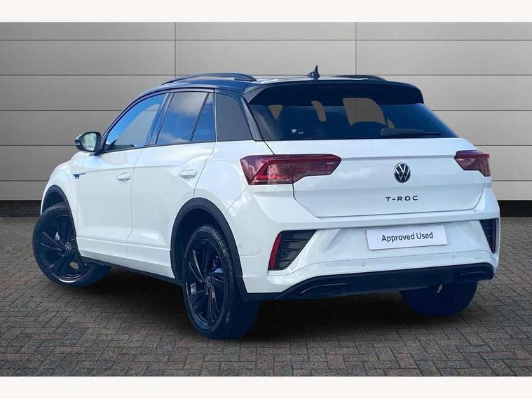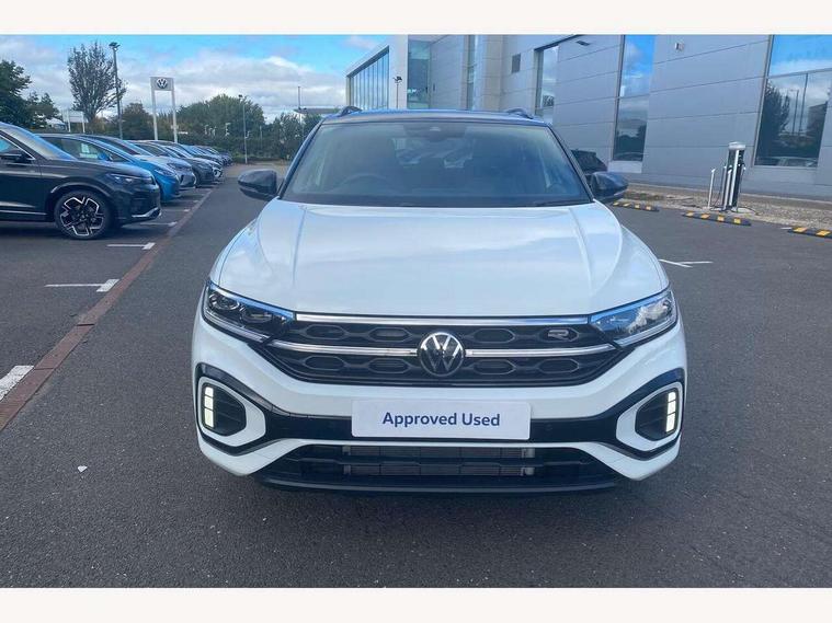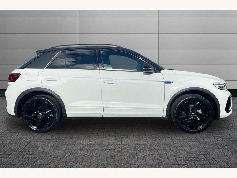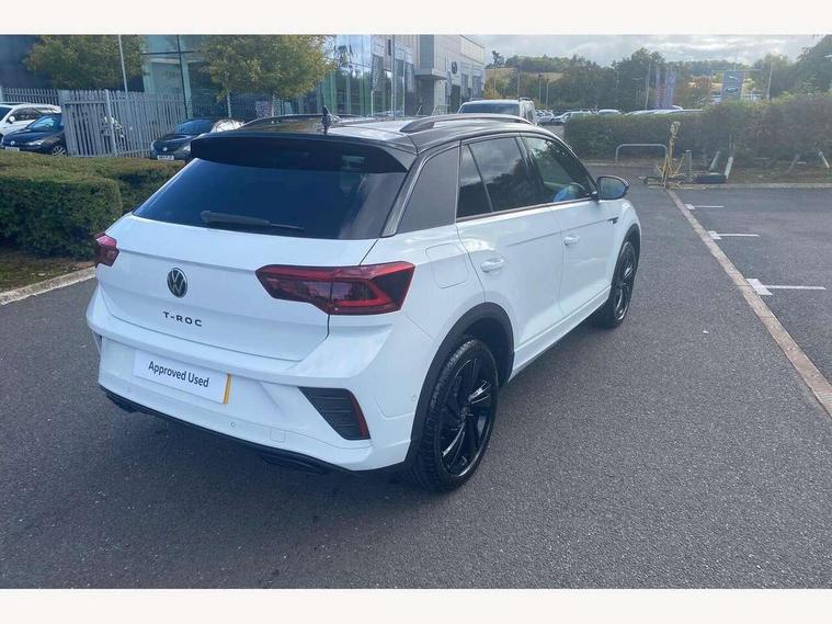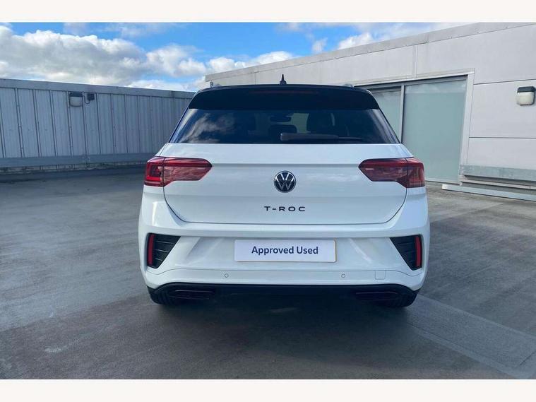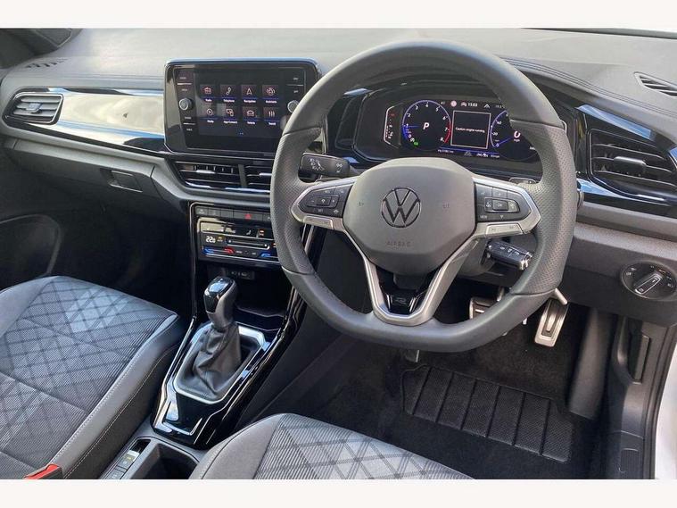 10.25" Digital cockpit pro, Advanced driver attention and drowsiness monitor, Emergency call service, Lane keeping system Lane Assist, Mobile phone interface, Modified key software - reduce switch off time for key status change to Long no motion, Online services, Park assist including front and rear parking sensors, Power assisted speed sensitive steering, Service interval indicator, Tailgate/trunk lid release from outside, Think blue trainer driver tips and journey analysis, Warning sound and light for front seatbelts unfastened, Wireless app connect, Battery regeneration during braking, Rear shock absorption chassis with increased ride height, Start/stop function with battery regeneration, DAB Digital radio, Diversity antenna for FM reception, Front and rear 6 speakers, Music playback - MP3, WMA and AAC files, Premium USB cable in choice of either Apple or Android smartphone compatibility, SD card slot, Simultaneous pairing of 2 compatible mobile devices, Title and cover art display, We Connect and We Connect Plus functionality, Auto dimming interior rear view mirror, Automatic hazard lights activation under emergency braking, Automatic headlight control with LED separate daytime running lights with coming/leaving home function, Dynamic cornering light, Electrically adjustable and heated door mirrors, Extended roof spoiler, Exterior mirrors aspherical on driver side, convex on front passenger side, External USB type C socket and charging sockets, Front windscreen wiper with intermittent wipe and 4 position delay, Heated rear window, Illuminated front grille, IQ LED matrix headlights, LED 3rd brake light, LED rear number plate lights, LED rear tail lights with dynamic turn signal, Light mode for poor weather, rain, fog or snow, Power windows with comfort operation and circuit breaker, R-Line design body coloured bumpers, Rain sensor, Rear exhaust tailpipe, Rear fog light on one side and reversing lights on both sides, Rear side wing doors, Rear wash/wipe with intermittent wipe setting, Remote electrically foldable door mirrors, puddle lights and reverse activated passenger's door mirror, 12V power socket in centre console, 3 rear head restraints, 3 seat bench in 2nd row, 4 load lashing points in luggage compartment, Air care climatronic air conditoning system with active combination filter and 2-zone temperature control, Artvelours cloth upholstery, Black roof lining, Chrome plated radiator grille inserts, air vent surrounds and light switch surrounds, Door and side trim panel with leatherette insert, Drawer under drivers seat, Driver seat height adjust, Driver's seat lumbar support, Front + rear carpet mats, Front centre armrest, Front comfort sports seats, Front cupholders x 2, Front footwell illumination, Front reading light, Front scuff plates with R Line logo, Front seat back storage pockets, Glove compartment door with light, Instrument lighting, white adjustable panel illumination, Interior ambient lighting and surround lighting, Interior light delay, Isofix child seat preparation, Leather gearshift handle, Leather wrapped multifunction steering wheel with paddle shift, Load-through provision with cup holder when folded down ('Unsplit rear seat bench, split folding backrest, with centre armrest), Luggage compartment lighting, Non-folding front passenger seat backrest, Passenger seat height adjuster, Passenger seat lumbar support, Single front passenger seat, Stainless steel pedals, Storage compartment in left and right luggage area, Storage compartment in rear doors, Storage compartments in driver and front passenger doors, Sunvisors with illuminated vanity mirrors, Variable boot floor, height adjustable and removable, Winter pack without heated windscreen washer jets - T-Roc, 3 point height adj front seatbelts + pretensioners, 3 point seatbelts in outer rear with ECE label, ABS, Child locks on rear doors, City emergency braking and pedestrian monitoring, Driver and front passenger airbag with front passenger airbag deactivation, Driver and front passenger safety-optimised head restraints, Drivers seatbelt reminder, Electronic parking brake, Electronic Stability Control (ESC) inc EDL (Electronic Differential Lock) and ASR (Traction Control), Front and rear passengers curtain airbag system including front side airbags, Front disc brakes, Hill start assist, Predictive pedestrian protection, Rear disc brakes, Two tone horn, Tyre pressure loss indicator, Volkswagen roadside assistance, Tool kit, Trims for alloy wheels, Tyre mobility kit including compressor and sealing foam,