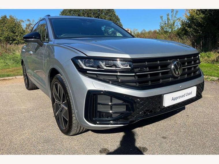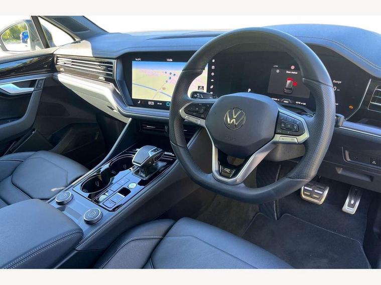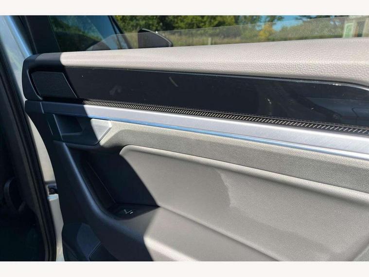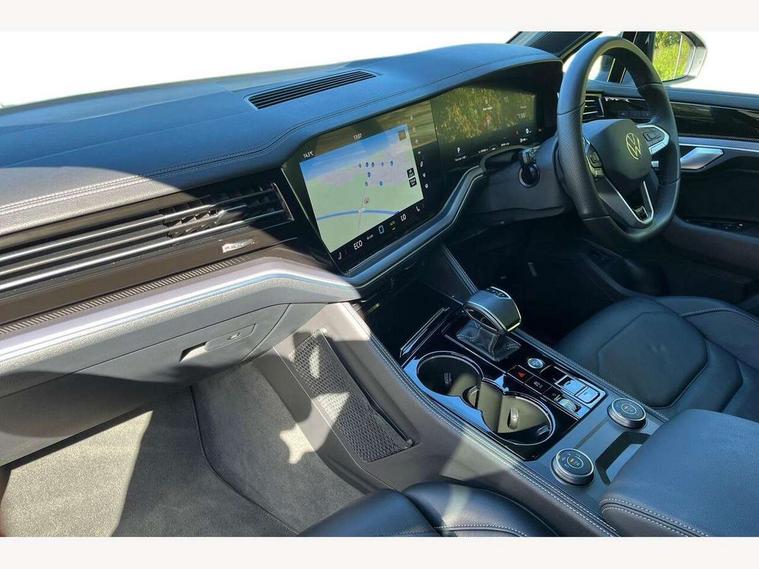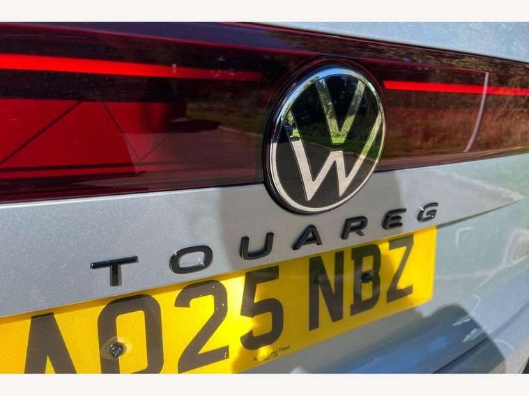 15" Screen Top infotainment system Premium (MIB3), Adaptive cruise control, Advanced driver attention and drowsiness monitor, Driver profile selection, Dynamic road sign display, E-Sim card for online connectivity, eCall emergency system, Innovision cockpit, Intelligent park assist, Mobile phone interface with inductive charging, Multi-colour Active Info display, Park Assist - Sensor controlled steering aid to assist parallel or bay parking, PAS, Warning signal and warning light for front and rear seatbelts not fastened, Wireless app connect, Adaptive chassis control, DAB Digital radio, Diversity antenna for AM/ FM reception, We Connect and We Connect Plus functionality, Automatic coming/leaving home lighting function, Automatic headlights, Black door mirrors, Black style comfort bumpers, Dynamic headlight range control with dynamic cornering light, Electric front tilt/slide panoramic sunroof and fixed rear sunroof, Electrically power adjustable, heated, folding, auto dimming, front passenger exterior door mirror lowering function, External USB type C socket and charging sockets, Gloss black roof rails, HD LED Matrix beam plus digital headlight projection with variable light distribution, Headlight washers, Highway light, LED 3rd brake light, LED daytime running lights, LED rear combination lamp with variable lighting functions and special styling, Poor weather light, Rain sensor, Rear exhaust tailpipe, Rear fog light with back up light on both sides, Rear light bar and illuminated logo, Rear side wing doors, Rear wiper, Stainless steel door sill protection, 12V socket in centre console, 3 rear headrests, 3 seat bench in 2nd row, 4 zone climate control, Airbag label on sun visor and B-pillar, Brushed stainless steel pedals, Double sun visors with illuminated vanity mirrors, Front + rear carpet mats, Front centre armrest, Leather wrapped multifunction sports steering wheel, heated, with touch control and shift paddles, Mechanical rear seat release, Power adjustable lumbar support in front, Power seats in front, right side with memory features and seat cushion depth adjustment, Rear seat backrest and split folding with center armrest, Single front passenger seat, Memory pack plus - Touareg, 3 point seatbelts, outer rear with ECE lable, ABS, Child locks on rear doors, Curtain airbags, Driver and front passenger safety-optimised head restraints, Driver/Front Passenger airbags, Extended pedestrian protection measures, Front assist, Front seat side impact airbags, Generative braking with start and stop system, Height adjustable 3 point front seatbelts with pre tensioners, Passenger airbag deactivate switch, Three 3 point rear seatbelts, Two tone horn, Tyre pressure loss indicator, Warning triangle and first aid kit, Alarm system with interior protection, Easy open and close sensor controlled luggage compartment opening and closing with remote unlocking, Keyless Access Keyless locking and starting system with SAFELOCK, Aluminium decorative inserts, Black decorative trims, Gloss black decorative inserts in centre console, Tool kit,
