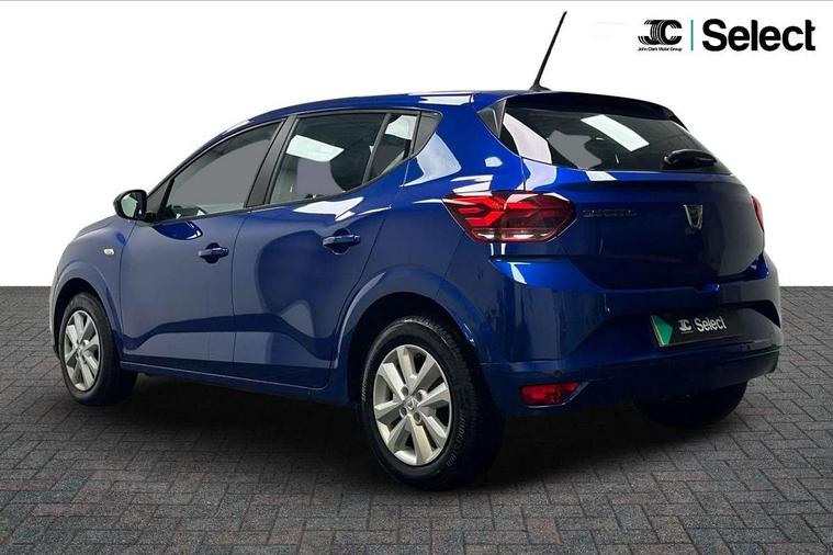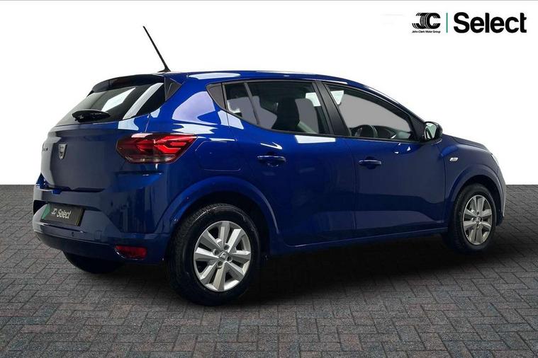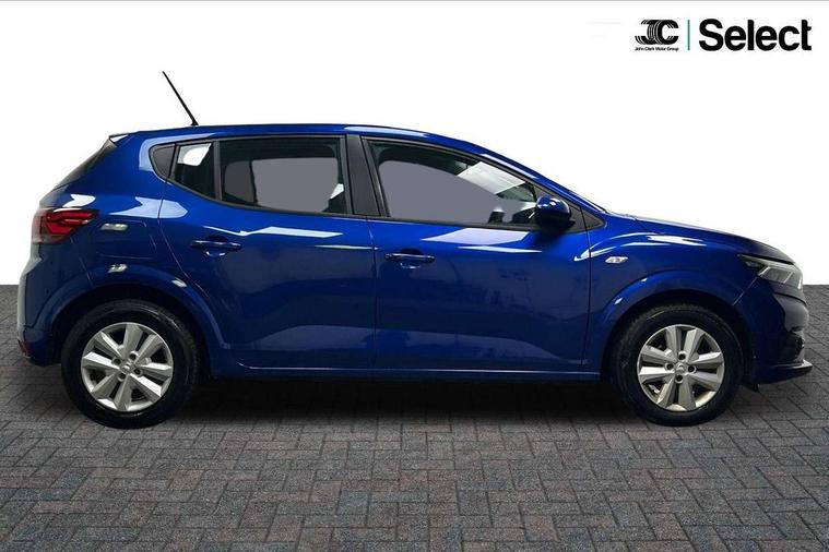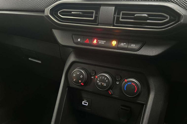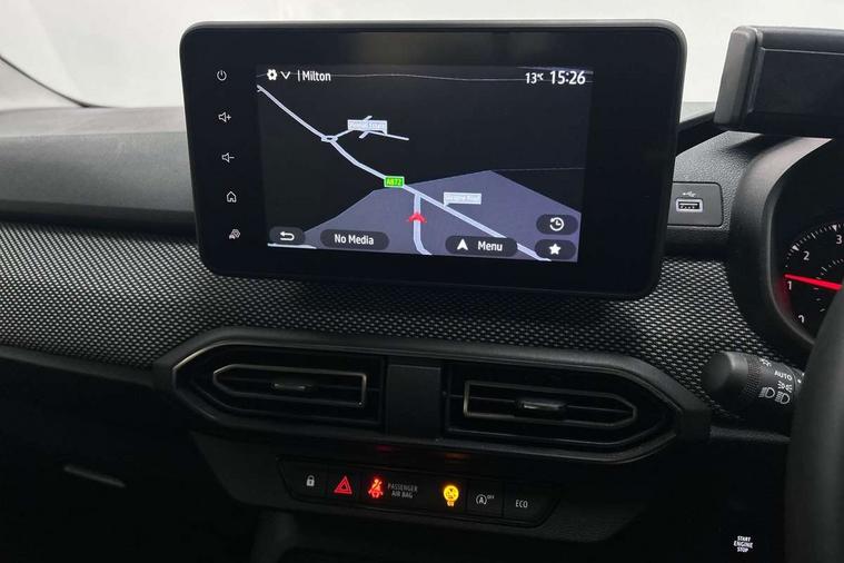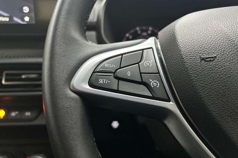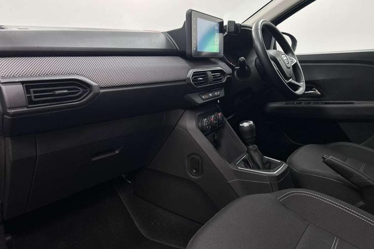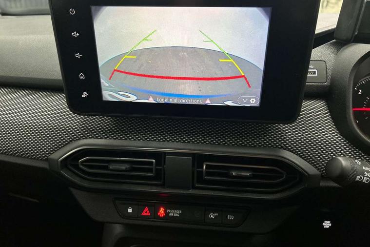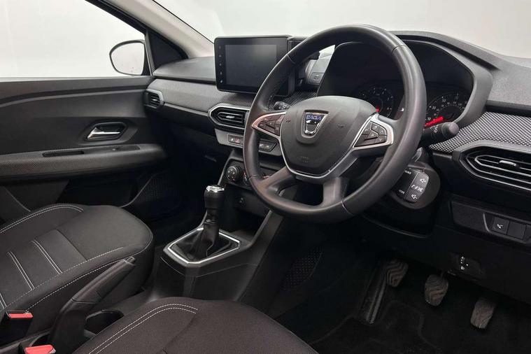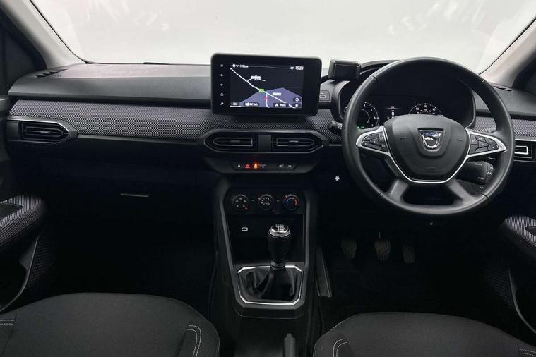 3.5" TFT instrument panel with on-board computer, Cruise control with speed limiter, eCall emergency call system, Eco mode, Electric power assisted steering, Rear parking sensors, Rev counter, Reversing camera, Stop/start system, 8" Media display - DAB radio, smartphone replication, bluetooth, 4 speakers, Apple CarPlay and Android Auto, Pre-wiring for radio and speakers, USB connection for data transfer and charging, USB socket, 3 speed windscreen wipers, Auto lighting, Automatic wipers, Black radiator grille, Body colour door handles, Body colour door mirrors, Body coloured bumpers, Electrically adjustable and heated door mirrors, Front fog lights, Heated rear window, High level third brake light, LED automatic daytime running lights, LED Y shape Dacia signature lighting, One touch electric front windows, Rear electric windows, Rear side wing doors, Rear wash/wipe, Tinted windows, 1/3 to 2/3 split folding rear seats, 12 volt front socket, 12 volt rear socket, 3 height adjustable rear headrests, 3 seat rear bench, Double satin chrome air vents, Driver + passenger vanity mirrors, Fabric upholstery, Fixed smartphone holder on dashboard, Front armrest, Gear shift indicator, Height adjustable driver seat, Height adjustable front headrests, Height/depth adjustable steering wheel, Isofix points for child seats in both outer rear seats, Manual air conditioning, Satin chrome interior door handles, Single front passenger seat, Soft feel steering wheel, Steering wheel controls, 3x3 point rear seatbelts, ABS and Emergency brake assist, Automatic emergency braking system, Child locks on rear doors, Door open warning, Driver airbag, ESC (Electronic Stability Control), ESP (Electronic Stability Program) + Hill Start Assist, Front curtain airbags, Front seatbelt pretensioners, Front side airbags, Height adjustable front seatbelts, Passenger airbag, Seatbelt reminder for driver and front passenger, Tyre pressure monitor, Automatic central locking, Immobiliser, Keyless entry, Remote central locking, Decopart on instrument panel and door with textile, 15" Flex wheels with full wheel cap,