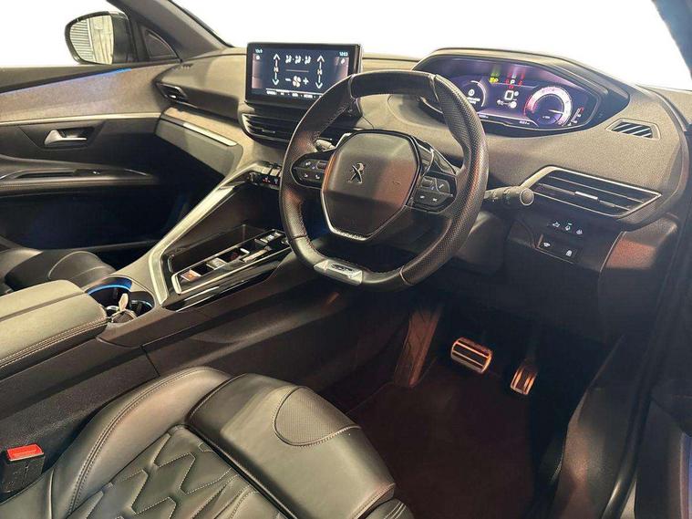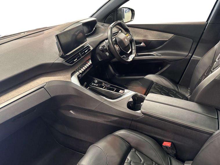 3D connected navigation with 10" HD touchscreen + voice recognition system, Apple car play and Android auto, Bluetooth telephone connection, Drive mode selector (Eco, Normal and Power), Driving timer alert system, Emergency services call system, Extended traffic sign recognition, Exterior temperature indicator with ice warning, Front and rear parking sensors, Lane departure warning system, Multi function trip computer, Peugeot i-cockpit with configurable 12.3" headup digital instrumental panel and compact sports steering wheel, Rear passenger USB charging sockets (x2) (type A), Speed limit recognition and recommendation, Dynamic stability control and electronic anti-skid system, Bi Tuner radio including DAB, USB socket, Aluminium front door sills, Auto self levelling headlights, Automatic activation of hazard warning lights, Black diamond door mirror covers, Black diamond roof, Body colour door handles, Body protectors in black, Dark tinted rear side and tailgate windows, Dynamic frameless design in front radiator grille, Electric adjustable heated door mirrors, Front windscreen wiper with magic wash cleaning system, Full LED headlights with fog mode, Gloss black B and C pillar and aerodynamic deflector trim, Gloss black rear cluster connecting strip, Gloss black windscreen trim, GT emblem (front wings and tailgate), Headlights left on audible warning, Heated rear windscreen with integrated antenna, LED daytime running lights in fang style, LED front indicator, LED rear number plate lighting, LED side indicator lights integrated into door mirrors, LED third brake light, One touch electric front/rear windows with pinch protection, Power folding door mirrors, Rear LED PEUGEOT signature Claw Effect lights (with daylight function) with clear lens and scrolling LED direction indicators, Rear side wing doors, Rear windscreen wiper with auto activation when reversing, Stainless steel door sill scuff plates, Twin exhaust effect trim, 2 cupholders in front centre console, 2 rear reading spotlights, 2 separate seats in 3rd row, 2nd row window blinds, 3 bench rear seats in 2nd row, 3 x 12V power sockets, 4 Grab handles retractable and damped, Aikinite stitching in armrest, gear lever and dashboard facia, Aluminium pedals, Automatic dual zone climate control, Aviation tables on seat back of first row, Blue ambient lighting for connecting zone, Blue ambient lighting for front cupholders, Blue ambient lighting to front door panels, Blue ambient lighting to head up instrument panel, Brumeo fabric trimmed door armrests, Central front armrest with butterfly wing opening and illuminated storage compartment, Electric power steering with reach and rake adjustable steering column, Flocked front door pocket interior with blue ambient lighting, Flocked glovebox interior, Fold flat front passenger seat with picnic table, Footwell lighting, Front interior light with 2 reading spotlights and rear interior light with timer, Front passenger seat manual adjustment (longitudinal and back rest angle), Height adjustable passenger seat, Illuminated glove box, central storage area and load area, Illuminated vanity mirror, Isofix child seat fittings x 3 in the second row, LED interior lighting, Map pocket on front seat backs, Mistral floor mats with Aikinite contrast stitching, Mistral full grain perforated leather steering wheel with aikinite stitch detail and satin chrome 'GT' emblem, Rear ventilation system, Retractable parcel shelf, Roof lining and windscreen pillars in Mistral black, Satin chrome digital instrument panel and touchscreen trim, Satin chrome front door panel recess trim, Satin chrome interior door handles, Satin chrome scorpion's tail and toggle switch trim, Seatbelt not fastened audible and visual alert for front seats, Seatbelt unfastened on the move audible and visual alert for front and rear seats, Second row underfloor storage, Single front passenger seat, Third row seats (can be stored under bootfloor or removed completely), Twin rear coat hooks, Drive assist plus package - 5008, Visibility pack - 5008 GT, ABS + EBD + EBA, Adaptive driver and front passenger airbags including passenger airbag deactivation function, Electric child locking functionality on rear windows and doors, Electronic parking brake + Hill assist, ESP and ASR traction control with deactivation switch, Five 3 point rear safety belts, Front and rear curtain airbags, Front optimised safety headrests and rear retractable headrests (x3), height adjustable, Front side airbags, Front three point retractable seatbelts height adjustable with pre tensioners and force limiters, Front ventilated disc brakes, Rear disc brakes, Rear three-point retractable seatbelts (x3) with pre-tensioners and force limiters in the outer rear seats, Single tone horn, Automatic door locking when moving off, Electronic code immobiliser, Perimetric and volumetric alarm with lift and tilt sensor, Peugeot Open and Go System, Remote control central locking with two plip keys,