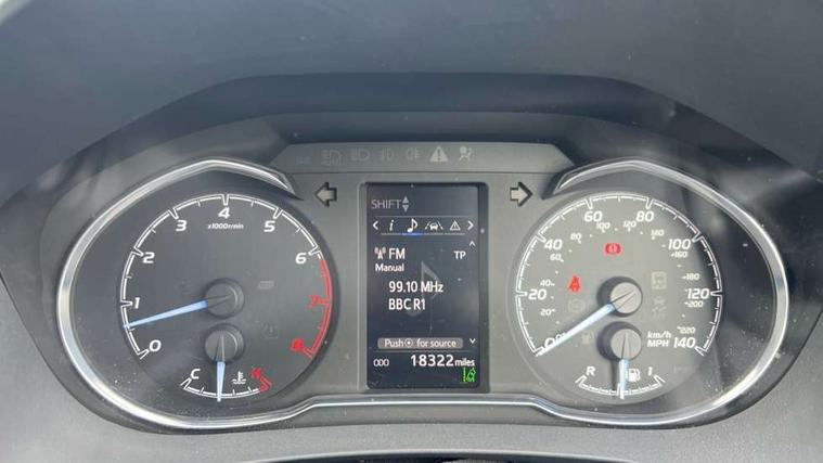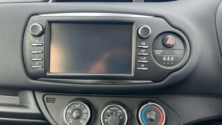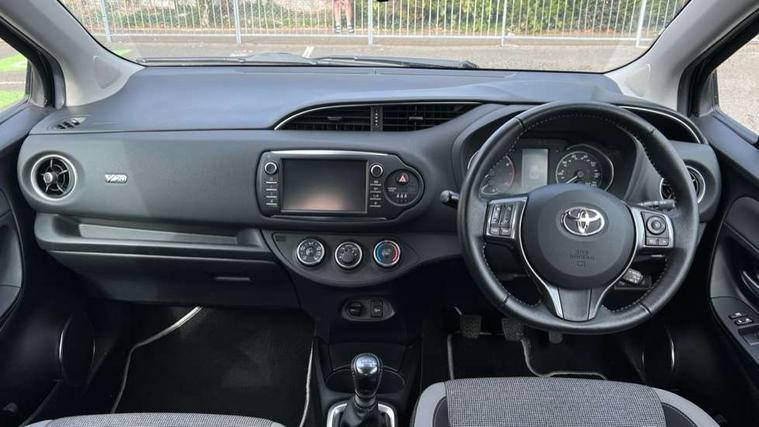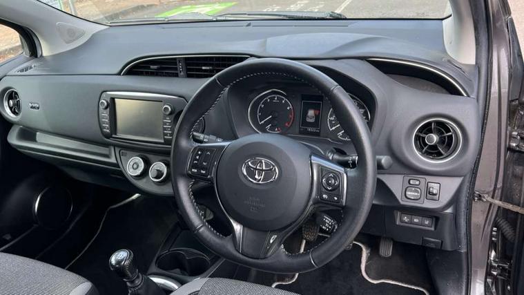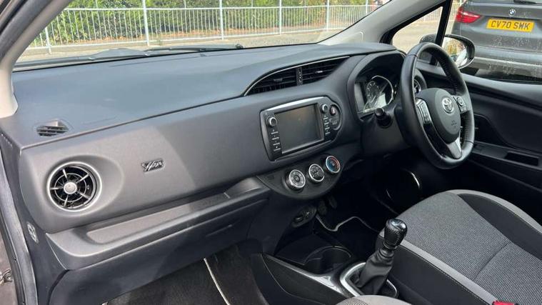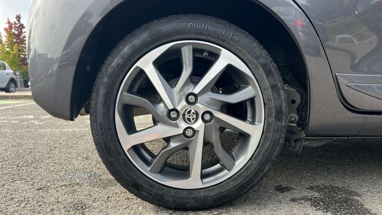 4.2" coloured LED TFT multi information display, Analogue speedometer, Analogue tachometer, Auto speed limiter, Bluetooth connectivity, Cruise control, External temperature gauge, Fuel indicator with low level warning, Key reminder warning, Lights on warning, Multi information display switches on steering wheel, Power Steering, Reversing camera, Trip computer, 6 speakers, Auxiliary input socket, Steering wheel mounted audio/telephone switches, Toyota Touch 2 with DAB, USB connection, Auto up and down function on drivers window, Automatic wipers, Bi-tone grey roof, Black lower front grille, Body colour bumpers, Body colour door handles, C pillar decal, Daytime running lights, Electric adjustable heated door mirrors, Electric front windows, Follow me home headlights, Front fog lights, Grey contrasting colour door mirrors, Grey door moulding, Grey door side sills, Grey front grille and fogs, Headlight cut-off reminder, LED High mounted stop lamp, Manual dimming rear view mirror, Privacy glass, Projector headlights, Rain sensitive windscreen wipers, Rear combination lights bulb type, Rear window defogger, Rear wiper, Turning signal integrated indicators in door mirrors, Y20 Badging, 12v power outlet - front, 3 adjustable rear headrests, 3 spoke leather steering wheel, 60/40 split folding rear seat, Active headrests, Boot light, Data Communication Module (DCM) connected services, Driver and front passenger personal light, Driver and front passenger Whiplash Injury Lessening seats, Fabric upholstery, Front and rear cup holders, Front map reading lights, Front seats with lumbar support, Glovebox, Height adjustable driver's seat, Height adjustable front head restraints, Illuminated entry system, Isofix seat fixing, Leather gearshift, Manual air conditioning, Map pockets on the backs of the front seats, Pollen filter, Removable rear parcel shelf, Sliding front seats, Soft touch inner door garnish, Tilt/telescopic steering column, Y20 badge interior and in seat trim, 3 point seatbelts on all rear seats, ABS+EBD+Brake assist, Collision mitigation braking system, Emergency brake light system (EBS), Front passenger airbag on/off switch, Front seatbelt reminder, Height adjustable front seatbelts with pre-tensioners and load limiters, Hill start assist control (HAC), Rear child proof door locks, Rear seat belt reminder, Road sign information display, Seatbelt warning lamp and buzzer, Supplemental restraint system (SRS) airbags - 7 airbags including driver, front passenger, curtain, side and knee airbags, Toyota safety sense including Road sign assist, Pre collision system, auto high beam and lane departure alert), Tyre pressure warning system, Vehicle stability control VSC + traction control, Engine immobiliser, Power and remote door locking, Interior satin accents, Soft touch instrument panel, 16" 10 spoke grey machined alloy wheels, Space saver spare wheel,