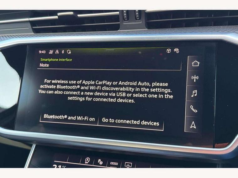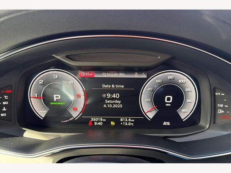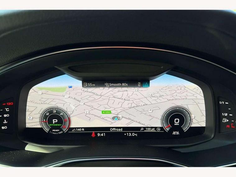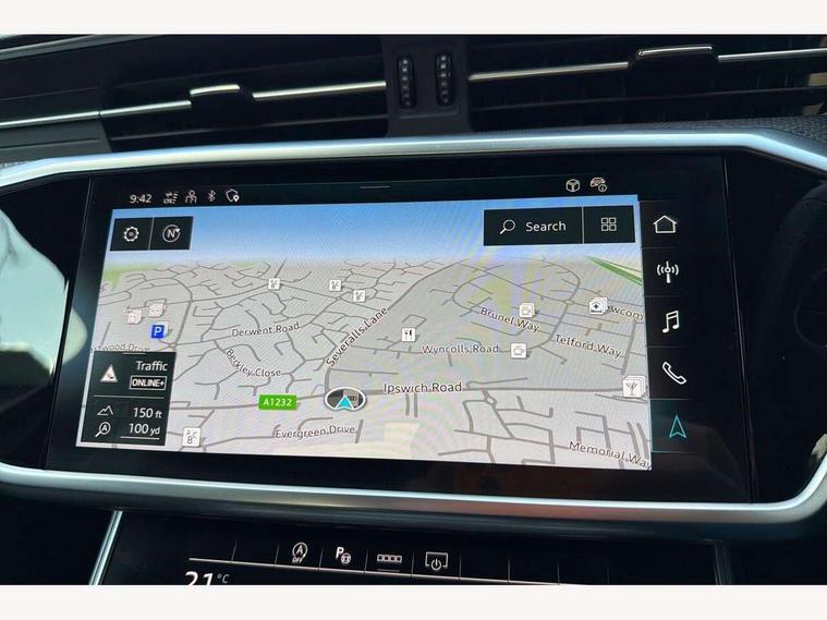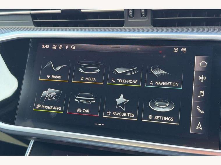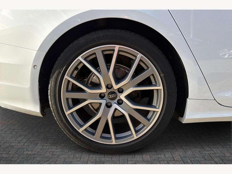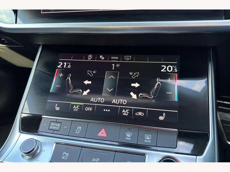 7" high resolution colour driver information display system, Audi connect safety and service (e-call), Audi drive select, Audi parking system plus - acoustic and visual park assist system for front and rear, Audi smartphone interface, Automatic start/stop system with coasting functionality, Bluetooth interface, Lane departure warning system, MMI navigation with MMI touch + twin touch screens 8.8" and 8.6" with haptic and acoustic feedback, Power operated tailgate, Progressive steering, Rear view camera, Service interval indicator, Voice control system, 12V Mild hybrid, 24 litre AdBlue tank, Diesel particulate filter, Quattro on demand, Sports suspension, Audi music interface, Audi sound system, Auxiliary input socket, DAB Digital radio, USB connection, Black roof rails, Electric front/rear windows, Frameless auto dimming interior rear view mirror, Gloss black exterior mirror housings, Gloss black highlights on the exterior area of the Audi Single frame, Gloss black highlights on the front and rear bumpers, Gloss black highlights on the radiator grille, Gloss black highlights on the side windows trim strips, Headlight washers, Heat insulating glass in side and rear windows, Heat insulating glass in windshield, LED rear lights, LED signature front daytime running light, Matrix LED headlights with dynamic rear indicators, Matt black rear diffuser with diffuser strip and tailpipes in chrome, Matt black side air intake grille with inlay in matt aluminium, Privacy glass, Rain and light sensors, Rear roof spoiler, Signature rear LED light design, 2 zone deluxe electronic climate control, 4 way electric lumbar support for driver and front passenger, 40/20/40 split folding 3 rear seat bench in 3 parts with rear centre armrest, Black cloth headlining, Electrically adjustable front seats with driver memory, Front centre armrest, Front head restraints, Front/rear floor mats, Heated front seats, Height/reach adjust steering wheel, Illuminated door sill trims with S logo, Illuminated sun visors with vanity mirrors, ISOFIX child seat mounting and Top Tether with front passenger airbag deactivation, Leather gear knob, Luggage compartment system, Rear headrests, Stainless steel pedals and foot rest, Tool kit and car jack, LED Interior Ambient Lighting Pack - A6, Non smoking pack - A6, 3 point seatbelts on all seats, Airbags - Front side, front and rear including head, Audi pre-sense front, Black seatbelts, EBD - Electronic brakeforce distribution, Electromechanical parking brake, Electronic Stability Control (ESC) including ABS, ASR and EDL, Extended pedestrian protection measures, Seatbelt monitoring, Tyre pressure warning light, Warning triangle and first aid kit, Anti theft alarm with tow away protection, Anti-theft wheel bolts and wheel loosening detection, Immobiliser, Keyless Go, Remote central locking, Matt brushed aluminium dark inlays, 20" 5 V spoke star design Audi sport cast aluminium alloy wheels in matt titanium look,