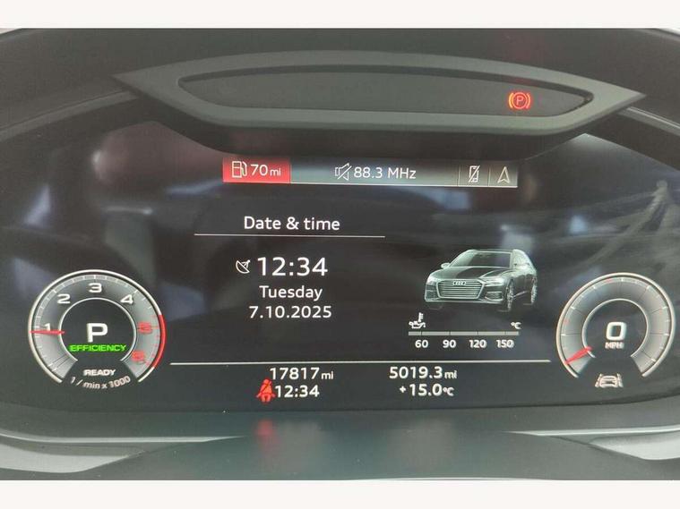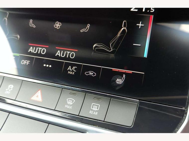 7" high resolution colour driver information display system, Audi connect safety and service (e-call), Audi drive select, Audi parking system plus - acoustic and visual park assist system for front and rear, Audi smartphone interface, Automatic start/stop system with coasting functionality, Bluetooth interface, Lane departure warning system, MMI navigation with MMI touch + twin touch screens 8.8" and 8.6" with haptic and acoustic feedback, Power operated tailgate, Progressive steering, Rear view camera, Service interval indicator, Voice control system, 12V Mild hybrid, 24 litre AdBlue tank, Diesel particulate filter, Quattro on demand, Sports suspension, Audi music interface, Audi sound system, Auxiliary input socket, DAB Digital radio, USB connection, Black roof rails, Electric front/rear windows, Frameless auto dimming interior rear view mirror, Gloss black exterior mirror housings, Gloss black highlights on the exterior area of the Audi Single frame, Gloss black highlights on the front and rear bumpers, Gloss black highlights on the radiator grille, Gloss black highlights on the side windows trim strips, Headlight washers, Heat insulating glass in side and rear windows, Heat insulating glass in windshield, LED rear lights, LED signature front daytime running light, Matrix LED headlights with dynamic rear indicators, Matt black rear diffuser with diffuser strip and tailpipes in chrome, Matt black side air intake grille with inlay in matt aluminium, Privacy glass, Rain and light sensors, Rear roof spoiler, Signature rear LED light design, 2 zone deluxe electronic climate control, 4 way electric lumbar support for driver and front passenger, 40/20/40 split folding 3 rear seat bench in 3 parts with rear centre armrest, Black cloth headlining, Electrically adjustable front seats with driver memory, Front centre armrest, Front head restraints, Front/rear floor mats, Heated front seats, Height/reach adjust steering wheel, Illuminated door sill trims with S logo, Illuminated sun visors with vanity mirrors, ISOFIX child seat mounting and Top Tether with front passenger airbag deactivation, Leather gear knob, Luggage compartment system, Rear headrests, Stainless steel pedals and foot rest, Tool kit and car jack, LED Interior Ambient Lighting Pack - A6, Non smoking pack - A6, 3 point seatbelts on all seats, Airbags - Front side, front and rear including head, Audi pre-sense front, Black seatbelts, EBD - Electronic brakeforce distribution, Electromechanical parking brake, Electronic Stability Control (ESC) including ABS, ASR and EDL, Extended pedestrian protection measures, Seatbelt monitoring, Tyre pressure warning light, Warning triangle and first aid kit, Anti theft alarm with tow away protection, Anti-theft wheel bolts and wheel loosening detection, Immobiliser, Keyless Go, Remote central locking, Matt brushed aluminium dark inlays, 20" 5 V spoke star design Audi sport cast aluminium alloy wheels in matt titanium look,