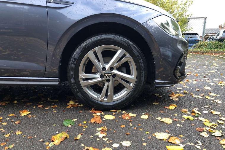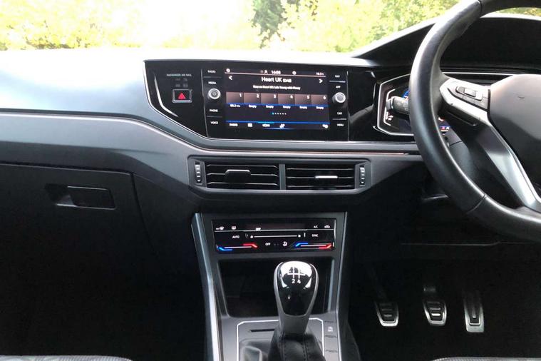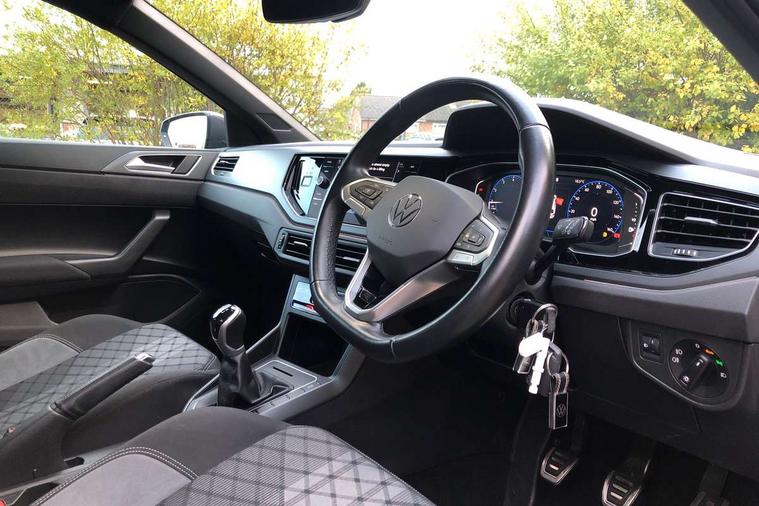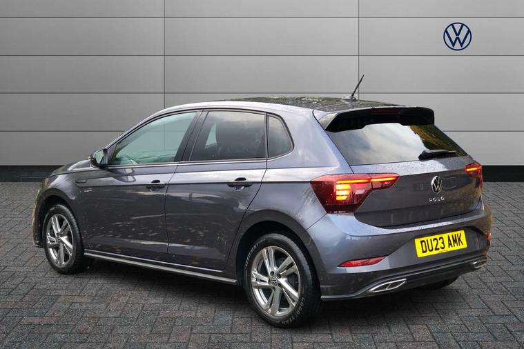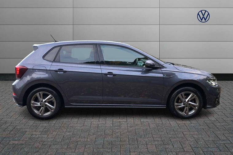 Adaptive cruise control without follow-to-stop and speed limiter, Bluetooth mobile phone interface, Digital Cockpit Pro with 10.25" Display, Driver alert system, Dynamic road sign display, Emergency call service, Power assisted speed sensitive steering, Preparation for We connect and We connect plus, Speedo and rev counter, electronic odometer, trip, service interval display and fuel gauge, Standard rear axle, Travel Assist - Lane keeping system and traffic jam assist, Travel assist including emergency assist, Trip computer, Warning signal and warning light for front and rear seatbelts not fastened, Washer fluid level indicator, Wireless app connect, Front wheel drive, Rear shock absorpion, Start-stop system with battery regeneration (recuperation - energy recovery during braking), DAB Digital radio, Diversity antenna for FM reception, Front and rear 6 speakers, Body colour bumpers, Body colour door handles, Electric front windows, Front scuff plates with R-Line logo, Heat insulating darkened glass in side and rear windows, Heat insulating glass windscreen, Power folding adjustable/heated exterior mirrors and front passenger exterior mirror lowering function, Rear electric windows, Rear fog light, Rear side wing doors, Rear windscreen washer and wiper with interval delay, Third brake light, 12V power socket in centre console, 2 USB-C ports in the front, 2 USB-C charging sockets on the center console in the rear, 3 rear head restraints, 60/40 split folding rear seat and rear seat bench not split, Air care climatronic air conditoning system with active combination filter and 2-zone temperature control, Black roof lining, Chrome plated radiator grille inserts, air vent surrounds and light switch surrounds, Door and side trim panel, Driver and front passenger seat height adjustment, Driver/passenger sunvisors with illuminated vanity mirrors, Front + rear carpet mats in recycled material, Front centre armrest, Front footwell illumination, Front seat backrest storage pockets, Front sports comfort seats, Handbrake lever handle in leather, Headliner in recycled material, Isofix child seat preparation easy-fit (for two outer rear seats, and front passenger seat) compatible with I-size, Karoso artvelours cloth upholstery, Leather trimmed gear knob, LED interior light with switch off delay and dimmer, 2 reading lights front and rear, Luggage compartment cover, Luggage compartment floor, Luggage compartment lighting, Lumbar adjustment for front seats, Multifunction steering wheel, Single front passenger seat, Stainless steel pedals, Standard pedal cluster, Light and sight pack - Polo R-Line/Black Edition, 3 point height adj front seatbelts + pretensioners, 3x3 point rear seatbelts, ABS, Driver and front passenger airbag with front passenger airbag deactivation, Drivers and front passengers safety optimised head restraints, ESC (Electronic stability control) + EDL (Electronic Differntial lock) and ASR (Traction control), Extended and predictive pedestrian/ cyclist protection, Front curtain and side airbags with center airbag, Hill hold control, Manual child lock in rear doors, Single tone horn, Tyre pressure loss indicator, Alarm with interior protection, Anti-theft alarm system with interior monitoring, backup horn, and towing protection, Anti-theft wheel bolts, Electronic engine immobiliser, Chrome applications on rotary light, mirror adjustment, window regulator switches, outlet with frame in black, Dark grey anodised matt decorative inserts in dash and front door panels, Low rolling resistance tyres,