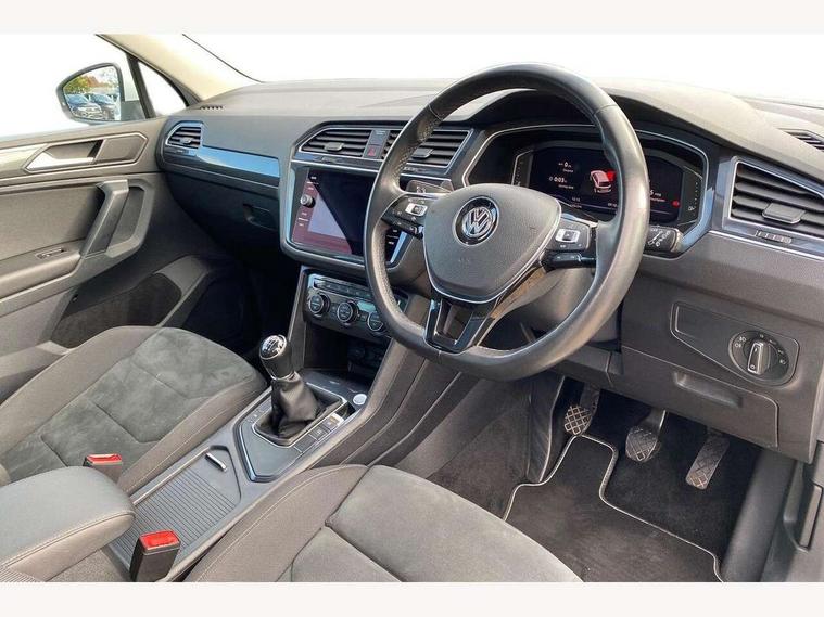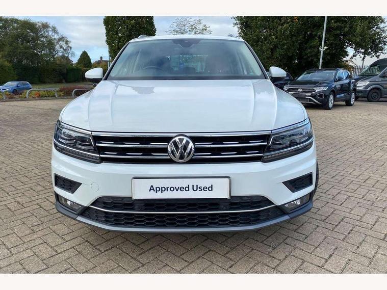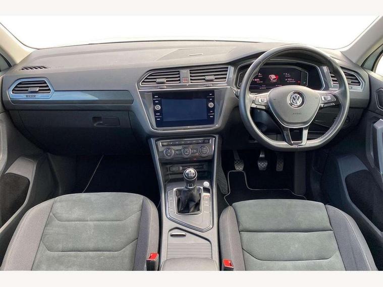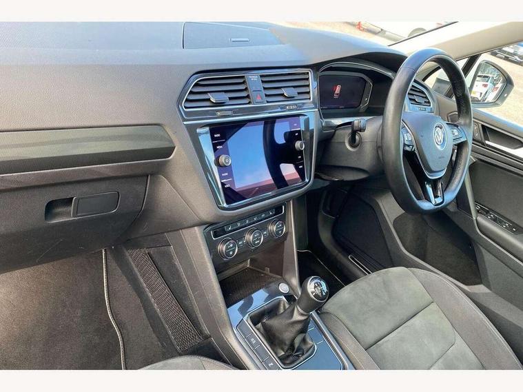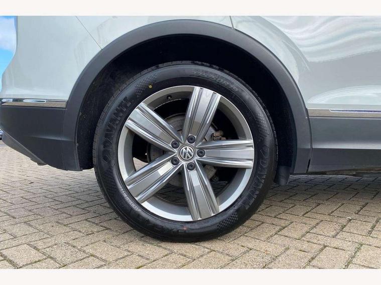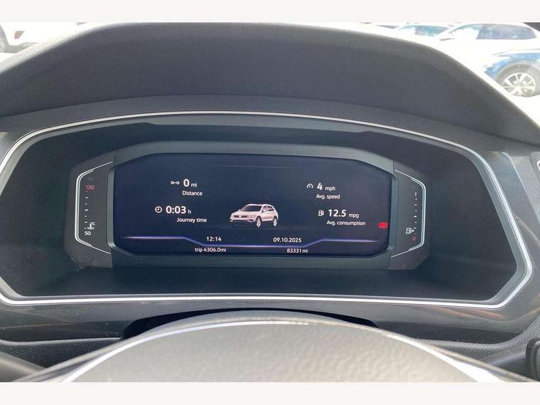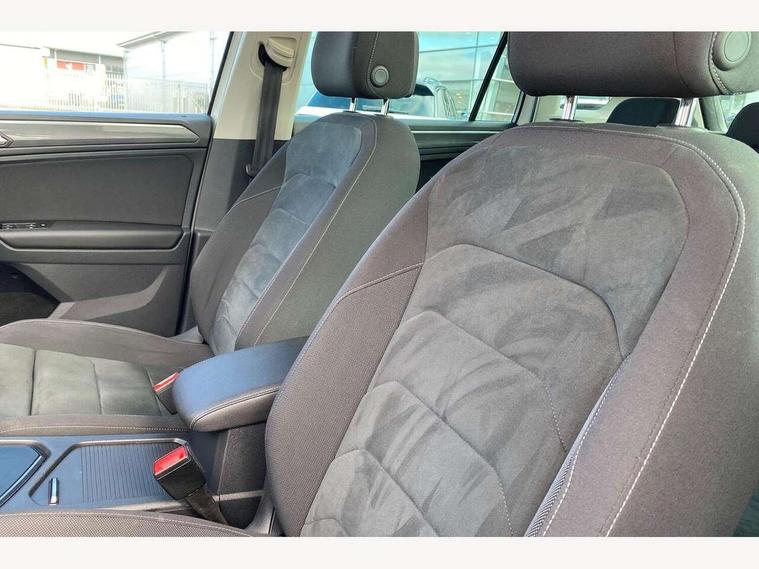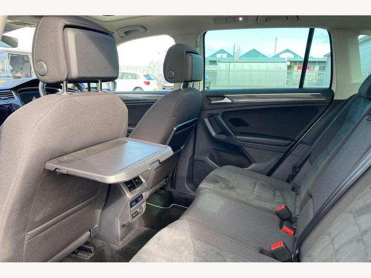 Active information display, Adaptive cruise control, App-Connect, Bluetooth phone integration system, Distance control assist, Drive mode selector, Fatigue detection system, Front assist, radar sensor controlled distance monitor, city emergency braking + predictive pedestrian protection, Instrument cluster, Lane assist, Low washer fluid warning light, Multifunction colour display, Outside temperature display, Service interval indicator, Speed limiter, Warning lights, Diesel particulate filter, XDS electronic differential lock, 2x USB sockets in front, DAB Digital radio, MP3 compatible single CD player, SD card slot, 3D effect LED rear lights, Auto dimming interior mirror, Automatic activation of hazard warning lights, Black door protector with chrome inserts, Body colour door handles, Body colour door mirrors, Body coloured bumpers, Chrome side body trim, Chrome side window surrounds, Chrome trimmed radiator grille, Coming/leaving home lighting function, Dusk sensor + auto driving lights, Electric folding door mirrors, Electric heated + adjustable door mirrors, Electric panoramic sunroof with sunblind, Front and rear electric windows, Heated rear window, Heated windscreen washer jets, LED headlights with dynamic light assist daytime running lights and cornering front fog lights, LED rear lights, Rain sensor windscreen wipers, Rear windscreen washer and wiper with interval delay, Side door sills with chrome inserts, Side skirts and rear bumper with chrome insert, Silver rear diffuser trim, Silver roof rails, Silver under body guard, Tinted windows (B pillar backwards), Windscreen wipers/ intermittent wipe + 4 position delay, 12V Accessory socket in centre console, 3 rear headrests, 3 zone climate control, 4 load lashing points, 40:20:40 split folding rear seats, Bag hook in luggage compartment, Driver + front passenger lumbar support, Foldable passenger seatback, Front + rear carpet mats, Front centre armrest with 12v socket, Front centre armrest with storage + rear 2 air vents + cupholders, Front seatback folding tables, Heated front seats, Height/reach adjust steering wheel, Illuminated driver/passenger vanity mirrors, Illuminated scuff plates, Instrument lighting white adjustable panel illumination, Interior light with delay, Isofix Preparation 2 Rear child seats, Leather gear knob, Load through provision with 2 cupholders when folded, Lockable cooled glovebox, Luggage compartment lighting, Luggage compartment side storage, Map pockets on front seats, Passenger seat height adjuster, Passenger underseat drawer, Rear cupholders, Removable luggage cover, Sliding/reclining rear seats, Storage compartment in driver's door, Storage compartment in passenger's door, Storage compartment in rear doors, Storage tray on dashboard, Sunglasses storage, Variable boot floor, Ambient lighting pack - Tiguan, 3 rear 3 point seatbelts, ABS+EBD+Brake assist, Active bonnet, Active pedestrian safety system, Curtain airbags, Driver/Front Passenger airbags, Driver/Passenger whiplash optimised head restraints, Drivers knee airbag, DTC - Drag torque control, Electronic parking brake with auto hold, ESP with EDL + ASR, First aid kit, Front and rear brake disc, Front assist including city emergency braking, Front side airbags, Front ventilated brake discs, Head airbag system, Height adjustable front 3 point seatbelts + pretensioners, Hill hold control, Passenger airbag deactivate switch, Passenger knee airbag, Pre crash system, Rear side airbags, Seatbelt warning lamp and buzzer, Two tone horn, Warning triangle, Alarm with interior protection, Electronic engine immobiliser, Remote central locking with 2 remote folding keys, Chrome door trim inserts, Piano black interior trim, Steel space saver spare wheel,