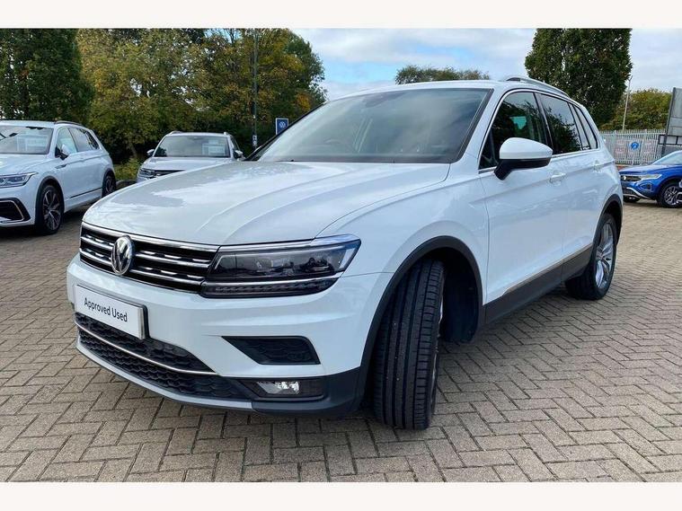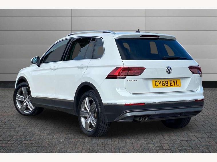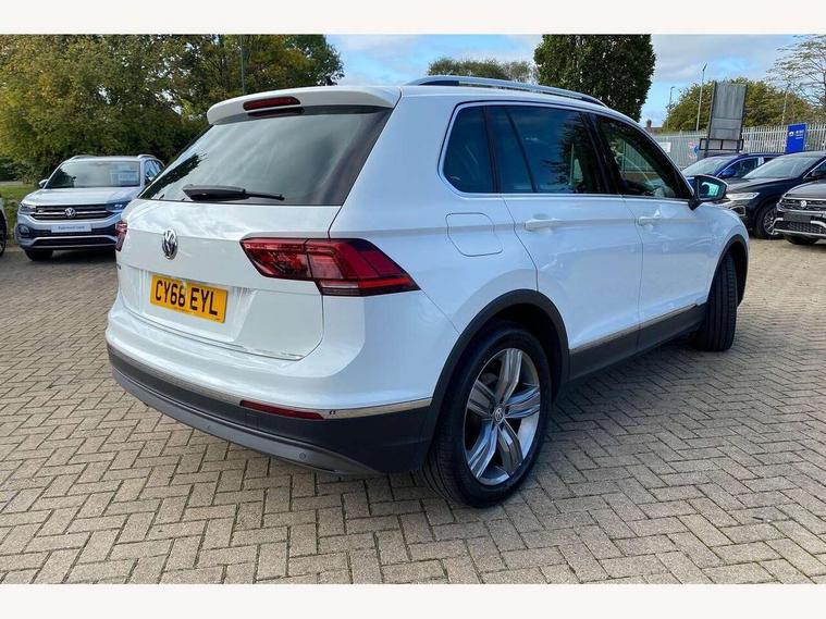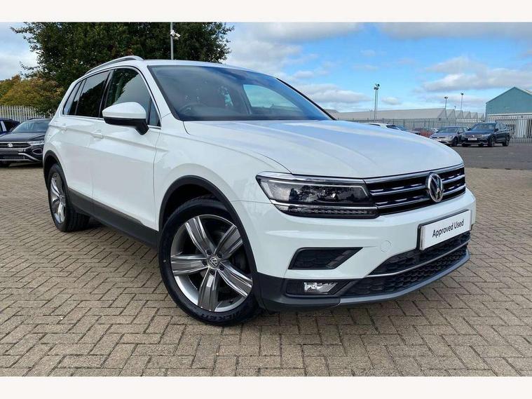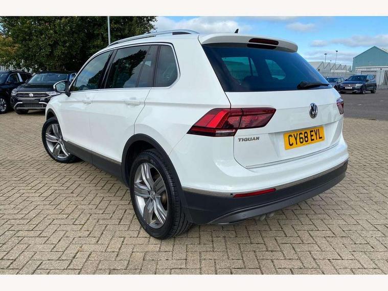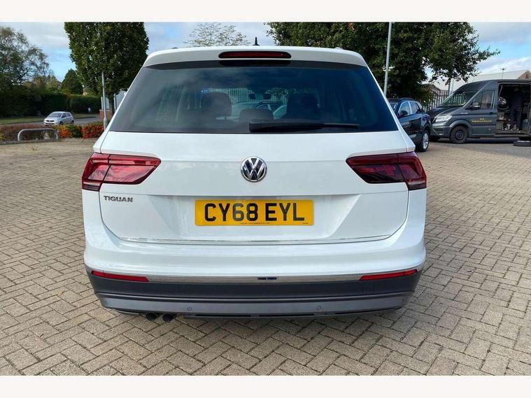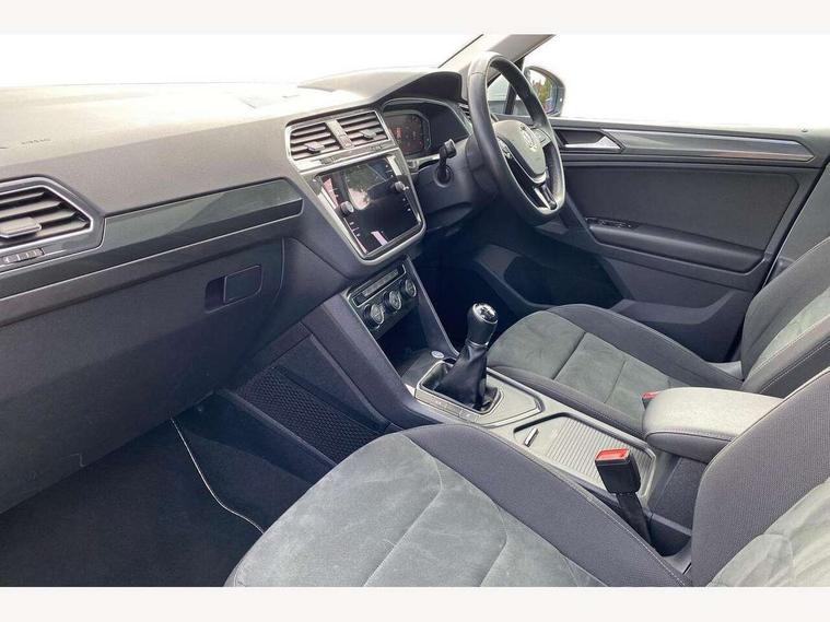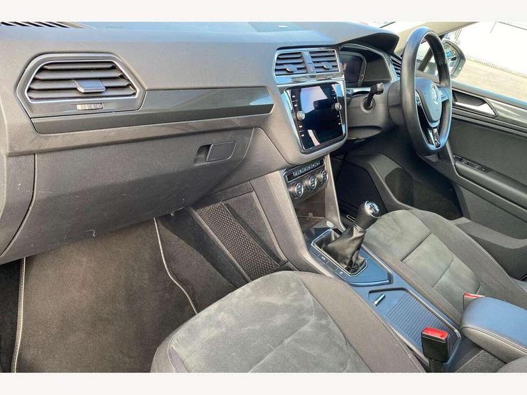 Active information display, Adaptive cruise control, App-Connect, Bluetooth phone integration system, Distance control assist, Drive mode selector, Fatigue detection system, Front assist, radar sensor controlled distance monitor, city emergency braking + predictive pedestrian protection, Instrument cluster, Lane assist, Low washer fluid warning light, Multifunction colour display, Outside temperature display, Service interval indicator, Speed limiter, Warning lights, Diesel particulate filter, XDS electronic differential lock, 2x USB sockets in front, DAB Digital radio, MP3 compatible single CD player, SD card slot, 3D effect LED rear lights, Auto dimming interior mirror, Automatic activation of hazard warning lights, Black door protector with chrome inserts, Body colour door handles, Body colour door mirrors, Body coloured bumpers, Chrome side body trim, Chrome side window surrounds, Chrome trimmed radiator grille, Coming/leaving home lighting function, Dusk sensor + auto driving lights, Electric folding door mirrors, Electric heated + adjustable door mirrors, Electric panoramic sunroof with sunblind, Front and rear electric windows, Heated rear window, Heated windscreen washer jets, LED headlights with dynamic light assist daytime running lights and cornering front fog lights, LED rear lights, Rain sensor windscreen wipers, Rear windscreen washer and wiper with interval delay, Side door sills with chrome inserts, Side skirts and rear bumper with chrome insert, Silver rear diffuser trim, Silver roof rails, Silver under body guard, Tinted windows (B pillar backwards), Windscreen wipers/ intermittent wipe + 4 position delay, 12V Accessory socket in centre console, 3 rear headrests, 3 zone climate control, 4 load lashing points, 40:20:40 split folding rear seats, Bag hook in luggage compartment, Driver + front passenger lumbar support, Foldable passenger seatback, Front + rear carpet mats, Front centre armrest with 12v socket, Front centre armrest with storage + rear 2 air vents + cupholders, Front seatback folding tables, Heated front seats, Height/reach adjust steering wheel, Illuminated driver/passenger vanity mirrors, Illuminated scuff plates, Instrument lighting white adjustable panel illumination, Interior light with delay, Isofix Preparation 2 Rear child seats, Leather gear knob, Load through provision with 2 cupholders when folded, Lockable cooled glovebox, Luggage compartment lighting, Luggage compartment side storage, Map pockets on front seats, Passenger seat height adjuster, Passenger underseat drawer, Rear cupholders, Removable luggage cover, Sliding/reclining rear seats, Storage compartment in driver's door, Storage compartment in passenger's door, Storage compartment in rear doors, Storage tray on dashboard, Sunglasses storage, Variable boot floor, Ambient lighting pack - Tiguan, 3 rear 3 point seatbelts, ABS+EBD+Brake assist, Active bonnet, Active pedestrian safety system, Curtain airbags, Driver/Front Passenger airbags, Driver/Passenger whiplash optimised head restraints, Drivers knee airbag, DTC - Drag torque control, Electronic parking brake with auto hold, ESP with EDL + ASR, First aid kit, Front and rear brake disc, Front assist including city emergency braking, Front side airbags, Front ventilated brake discs, Head airbag system, Height adjustable front 3 point seatbelts + pretensioners, Hill hold control, Passenger airbag deactivate switch, Passenger knee airbag, Pre crash system, Rear side airbags, Seatbelt warning lamp and buzzer, Two tone horn, Warning triangle, Alarm with interior protection, Electronic engine immobiliser, Remote central locking with 2 remote folding keys, Chrome door trim inserts, Piano black interior trim, Steel space saver spare wheel,