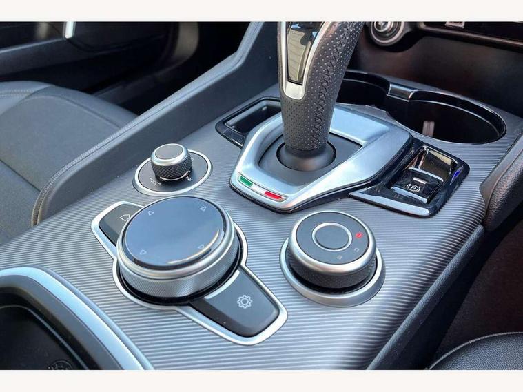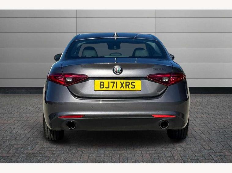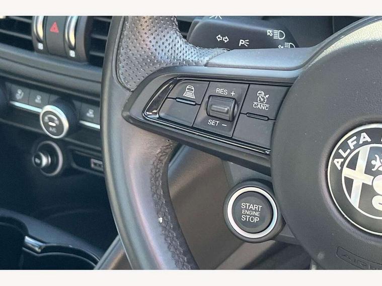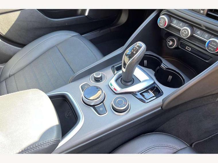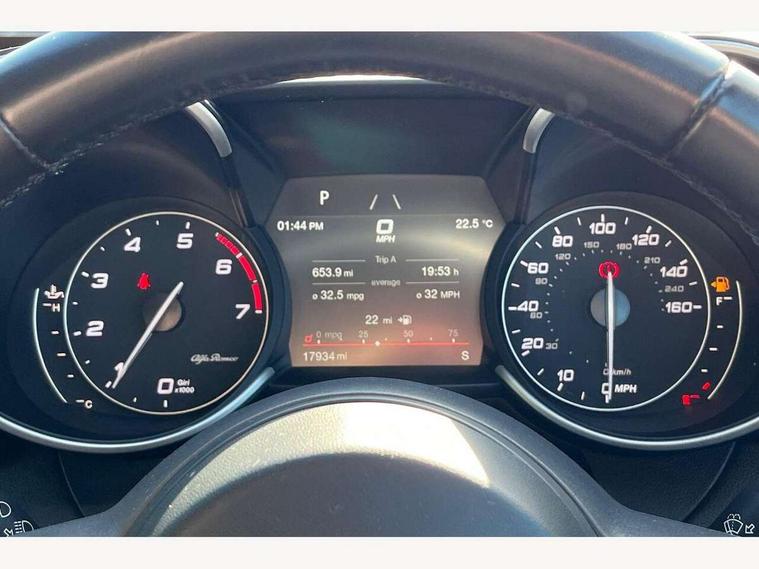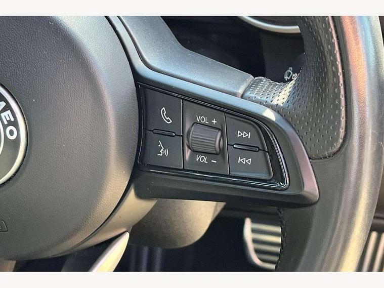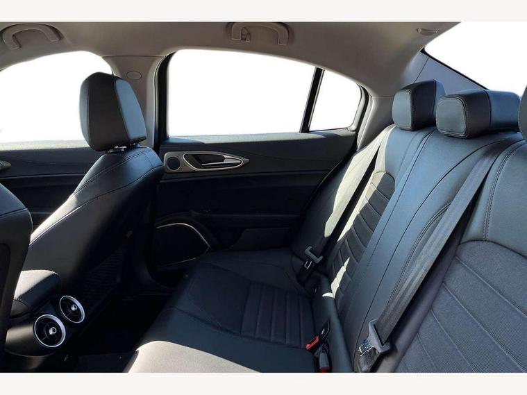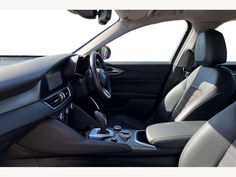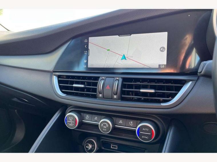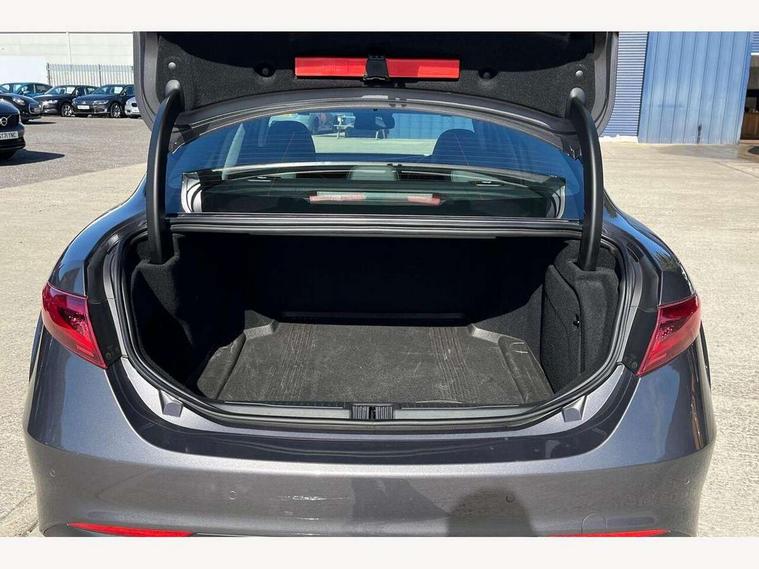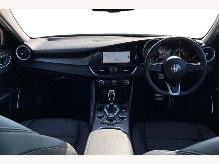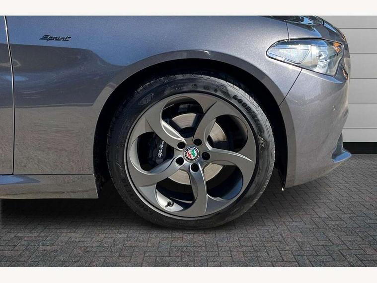 Active cruise control, Alfa connect 3D NAV 8.8'' infotainment system, radio, 3D Sat Nav, MP3, TMC pro, USB, aux-in, bluetooth with 7" TFT instrument display panel, Alfa connect box, Apple car play/Android Auto, Drive mode selector, Dusk sensor, Electrically operated tailgate, Forward collision warning, Lane departure warning system, PAS, Stop/start system, TMC Pro, Trip computer, West European Map, Digital Audio Broadcast radio-DAB, Satin finish speaker surround system, Steering wheel mounted audio controls, USB in front centre console, USB port front armrest mounted, Adjustable headlights, Aluminium tunnel cover, dashboard insert and door handle surround, Automatic front windscreen wipers, Automatic headlights, Bi-Xenon headlamps 25W + LED DRL, Dark finish exhaust finisher, Dark finish Giulia badge, Dark finish V grille, Dual exhaust pipes, Electrically adjustable and folding door mirrors, Electrochrome rear view mirror, Gloss black side window surrounds, Gloss Black sports exterior styling, Headlight washers, LED tail and brake lights, Rain sensor, SPRINT badging (front wing), 12v socket in front, Additional soundproofing, Aluminium kick plate, Aluminium metal sport pedals and footrest, Black painted interior bezels, Dark headlining, Dual zone climate control, English handbook, Front headrests, Sports leather steering wheel + gearshift, Start button on steering wheel, Third rear headrest, Parking assist pack - Giulia, 3x3 point rear seatbelts, ABS, Autonomous emergency braking, Electronic parking brake, ESP, Integrated brake system, Passenger seat airbag disable, Traction control, Tyre pressure monitoring system (TPMS), Alarm system with bonnet and intrusion protection, Immobiliser, Remote central locking, Fix and go puncture repair kit, Monochrome central wheel caps,