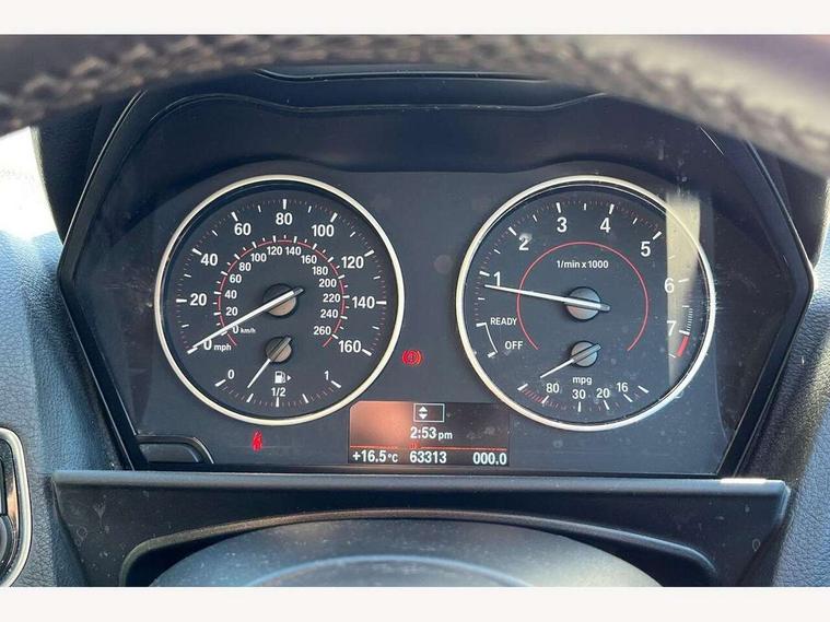 'Lights On' Reminder warning buzzer, BMW Teleservices, Brake force display, Engine start/stop button, Oil level indicator, On board computer, On board diagnostics, Outside temperature display, Service interval indicator, Speed limiter, Drive Performance Control, Auxiliary point for auxiliary devices, BMW professional radio with CD player, DAB Digital radio, Body colour bumpers, Body colour door handles, Body coloured door mirrors, Chrome exhaust tailpipe, Chrome kidney grille with black vertical slats, Electric front windows + one touch + anti-pinch, Electric rear windows, Electrically adjustable door mirrors, Follow me home headlights, Green tinted heat insulating glass, Heated door mirrors, Heated windscreen washer jets, M aerodynamic bodystyling, Rain sensor including auto headlights activation, Rear wash/wipe, Welcome lighting, 12V power socket in centre console, 12V power socket in passenger footwell, 4 grab handles, 60/40 split rear seats, Anthracite Velour floor mats, Door armrests, Door sill finishers with illuminated M designation, Folding rear seat head rests, Front door storage bins, Front folding/sliding centre armrest with storage, Front head restraints, Front sports seats with electric side bolster adjustment, Front/rear courtesy lights with soft on/off dimming, Glovebox, Individual anthracite headlining, Isofix rear child seat preparation, Leather gear knob and handbrake grip, Load restraint lashing eyes, M sports leather steering wheel, Multifunction steering wheel with audio controls, Reach + rake adjustable steering column, Storage compartments in doors, ABS/EBD, Automatic Stability Control (ASC), BMW emergency call, Child locks on rear doors, Cornering brake control (CBC), Crash sensor, Driver/Passenger airbags (Impact dependent), Drivers knee airbag, DSC+, Dynamic brake control, Dynamic Traction Control - DTC, Front passenger airbag deactivation, Front side airbags, Hill start assist, ITS head airbags for front/rear, Pyrotechnically pre-tensioned front seatbelts, Seat belt force limiter, Three 3 point rear seatbelts, Tyre pressure monitor, Warning triangle and first aid kit, Automatic drive away locking facility, Electronic immobiliser, Remote central locking, Thatcham Cat.1 alarm, Run flat tyres,