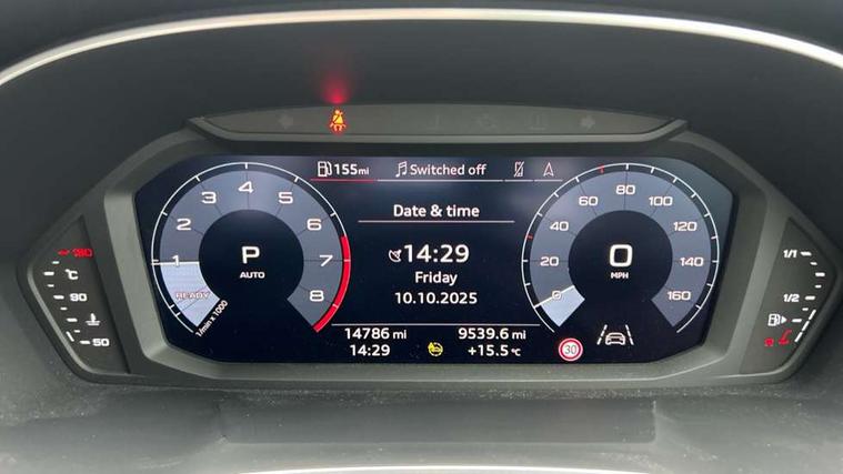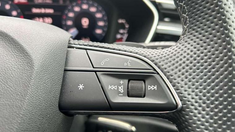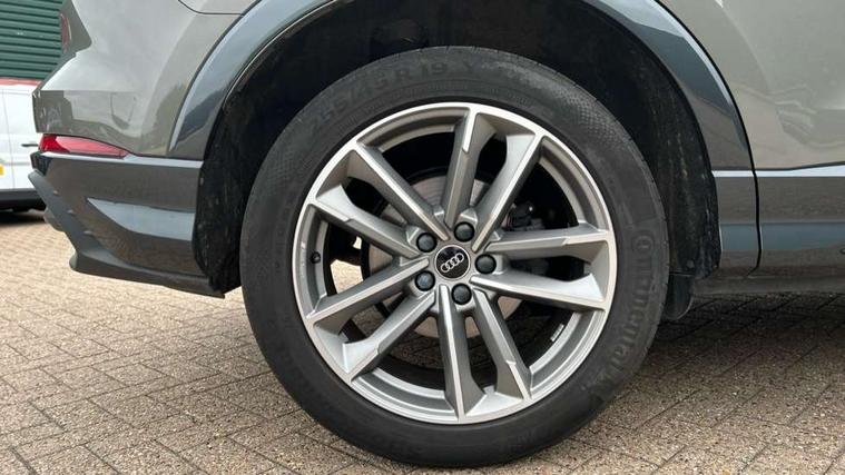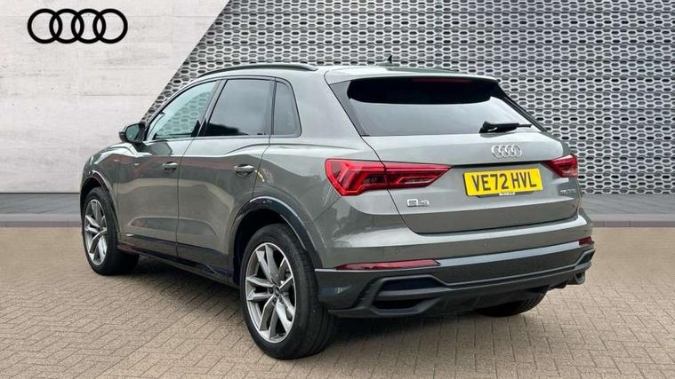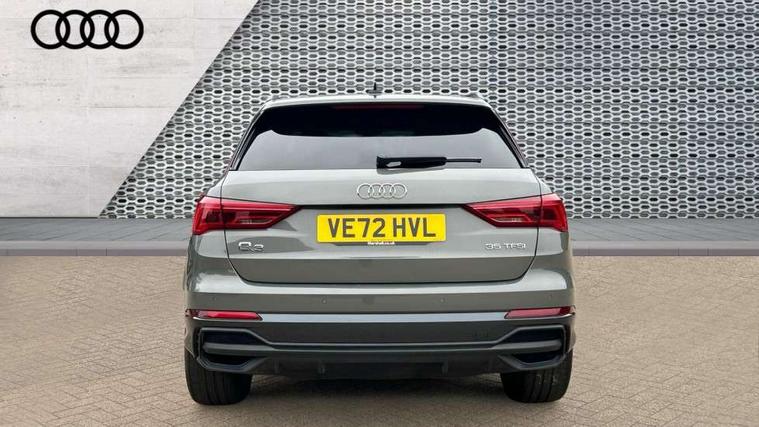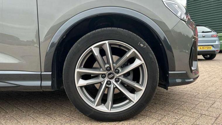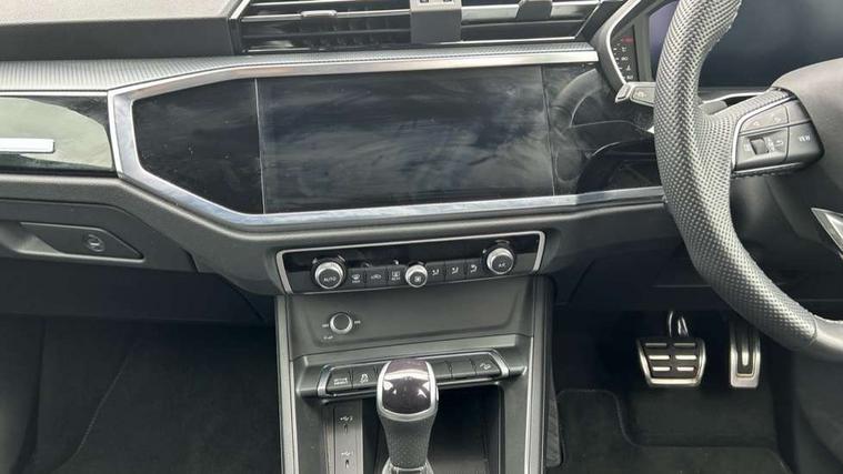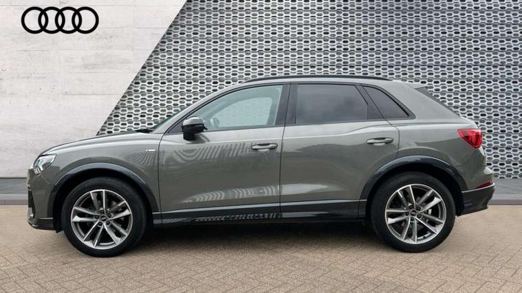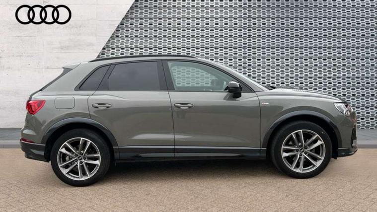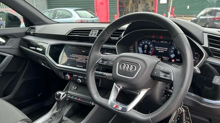 Amazon alexa Integration, Audi drive select, Audi lane departure warning, Audi Virtual Cockpit - 10.25" display, Bluetooth interface, Camera based traffic sign recognition, Legal emergency call, MMI Navigation Plus with high resolution 10.1 inch touchscreen colour display, Power operated tailgate, Progressive steering, Service interval indicator, Smartphone interface includes wireless Apple carplay/Android Auto, Start stop system with recuperation, Voice control system with natural language interaction, Sports suspension, 2 USB-C ports with charge and data functions, 6 passive loudspeakers, DAB digital radio module, Acoustic windscreen, Auto dimming frameless rear view mirror, Black roof rails, Electrically folding, adjustable and heated door mirrors with integrated LED side indicators and kerb view function for passenger side, Front and rear electric windows, Front fog lights, Grille vertical bars in aluminium silver/Matt, High gloss black finish B and C pillars, LED Dynamic rear indicators, LED headlights with LED daytime running lights, LED rear lights, LED third brake light, Privacy glass dark tinted rear and rear-side windows (from B-pillar backwards), Rain and light sensors, Rear diffuser grille in grained matt black, Rear diffuser strip in matt titanium black, Rear side wing doors, Rear wiper, S line bumpers in contrasting Manhattan grey, Variable front intermittent wipers, 12V socket in rear centre console, 3 seat bench in 2nd row, 40:20:40 folding with manual adjustment for 60:40 forwards/backwards position and backrest angle, Adjustable rear seat bench/backrest with centre armrest and cupholder, Black cloth headlining, Dual zone electronic climate control, Front and rear black floor mats with contrast stitching in rock grey, Front and rear headrests, Front and rear roof module including reading lights, Front centre armrest, Glove compartment lighting, Height and reach adjustable steering wheel, Illuminated door sill trims with S logo, ISOFIX child seat mounting for front passenger with airbag deactivation and outer rear seat including top tether attachment point for outer rear seats, Luggage compartment light, Manual front seats with height adjustment, Perforated leather gearknob, Single front passenger seat, Stainless steel luggage compartment sill finisher, Stainless steel pedals, Ambient lighting pack - Q3, Black styling pack - Q3, Non smoking pack - Q3, 3x3 point rear seatbelts, 6 airbags - Driver, front passenger, curtain and side windows, Audi pre-sense front with pedestrain and cyclist recognition, Electrically operated child locks on rear doors, Electromechanical parking brake, Electronic stabilisation control including ABS, ASR and EDL, Front seatbelt reminder, Hill descent control, Hill hold assist, Pre sense basic, Seatbelt monitoring, Tyre pressure warning, Warning triangle and first aid kit, Anti theft alarm, Anti theft wheel bolts, Immobiliser, Remote central locking, Detail dashboard around MMI touch colour display in glass look, black with surround in aluminium look, Leatherette door armrest, Piano black inlay,