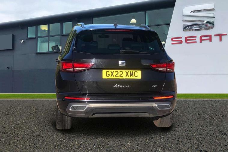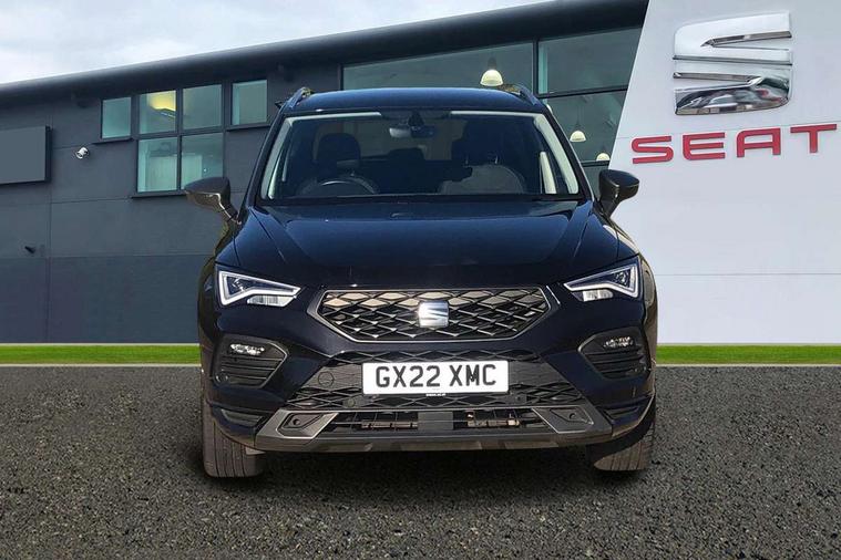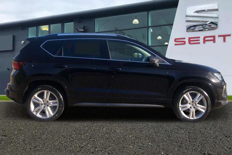 Cruise control system with speed limiter, E-call, Outside temperature gauge, Progressive power assisted steering, SEAT drive profile with driving experience button - Normal, Sport, Eco and Individual mode, steering and throttle response, Self parking functionality (includes front and rear parking sensors), Trip computer, Wireless full link smartphone integration, Wireless phone charger, Steering wheel mounted audio/phone controls, Body colour bumpers, Body coloured wheel arch surrounds, Chrome roof rails, Chrome side window trim, Cosmo grey front grille frame, Dark tinted rear windows, Daytime running lights, Door mirrors with welcome light silhouette, Dynamic headlight range control with self adjusting whilst driving, Electric adjustable/heated/folding door mirrors, Front and rear electric windows, Full LED headlamps with lens and LED front fog lamps with cornering function, Illuminated aluminium front door sill, LED rear tail lights with dynamic indicators, Rear fog lights, Rear side wing doors, Rear spoiler, Rear wash/wipe, Simulated exhaust pipes in chrome frame, 12v socket in front, 3 seat bench in 2nd row, 60/40 split folding rear seat, Aluminium pedals, Dual zone climate control, Front and rear head restraints, Front centre armrest, Front seat back storage pockets, Height adjustable driver and passenger seat with lumbar adjustment, ISOFIX points in outer rear seats with top tether anchorage points, Leather steering wheel and gear knob, Microsuede upholstery with front sports seats, Rear armrest and easy back seat release mechanism from boot, Single front passenger seat, Storage compartment under driver's seat, Convenience pack - Ateca, Interior lighting pack - Ateca, Navigation system pack with DAB - Ateca, 3x3 point rear seatbelts, ABS, Traction control system (TCS), Electronic stability control (ESC) and Electronic differential lock system (XDS), Airbags - Driver and front passenger airbag with deactivation, front side, two curtain and driver's knee airbags, Electric parking brake with auto hold function, Front and rear seatbelt reminder, Front assist with autonomous emergency braking, Hill hold control, Manual rear child locks, Tiredness recognition system, Traction control, Tyre pressure monitoring system, Alarm, Keyless entry, Locking wheel bolts, Chrome interior detailing, 18" Brillaint silver alloy wheels,