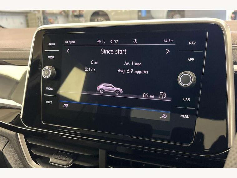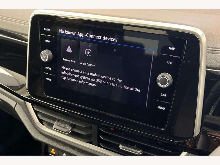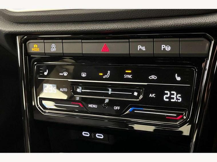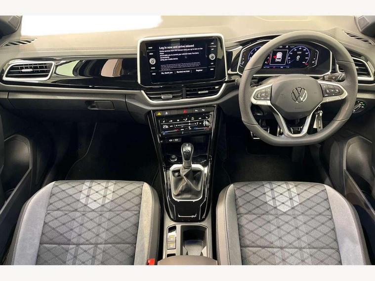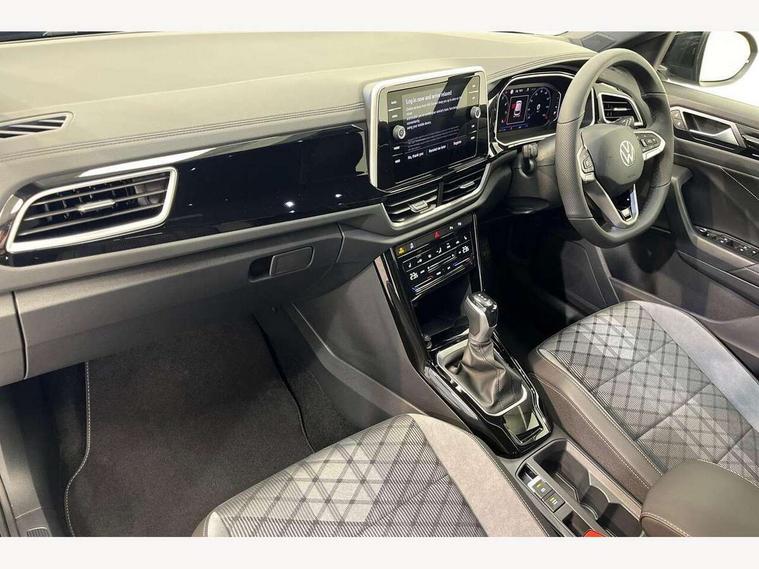 10.25" Digital cockpit pro, Advanced driver attention and drowsiness monitor, Emergency call service, Lane keeping system Lane Assist, Mobile phone interface, Modified key software - reduce switch off time for key status change to Long no motion, Online services, Park assist including front and rear parking sensors, Service interval indicator, Tailgate/trunk lid release from outside, Think blue trainer driver tips and journey analysis, Warning sound and light for front seatbelts unfastened, Wireless app connect, Battery regeneration during braking, Start/stop function with battery regeneration, DAB Digital radio, Diversity antenna for FM reception, Front and rear 6 speakers, Music playback - MP3, WMA and AAC files, Premium USB cable in choice of either Apple or Android smartphone compatibility, SD card slot, Simultaneous pairing of 2 compatible mobile devices, Title and cover art display, We Connect and We Connect Plus functionality, Auto dimming interior rear view mirror, Automatic hazard lights activation under emergency braking, Automatic headlight control with LED separate daytime running lights with coming/leaving home function, Body coloured exterior mirror housings and door handles, Electrically adjustable and heated door mirrors, Extended roof spoiler, Exterior mirrors aspherical on driver side, convex on front passenger side, External USB type C socket and charging sockets, Front windscreen wiper with intermittent wipe and 4 position delay, Heated rear window, LED 3rd brake light, LED rear combination lamps, LED rear number plate lights, Power windows with comfort operation and circuit breaker, Privacy glass for rear side windows and rear window, R-Line design body coloured bumpers, Rain sensor, Rear exhaust tailpipe, Rear fog light on one side and reversing lights on both sides, Rear side wing doors, Rear wash/wipe with intermittent wipe setting, Remote electrically foldable door mirrors, puddle lights and reverse activated passenger's door mirror, 12V power socket in centre console, 3 rear head restraints, 3 seat bench in 2nd row, 4 load lashing points in luggage compartment, Air care climatronic air conditoning system with active combination filter and 2-zone temperature control, Black roof lining, Chrome plated decorative trims, Chrome plated radiator grille inserts, air vent surrounds and light switch surrounds, Door and side trim panel with leatherette insert, Front + rear carpet mats, Front centre armrest, Front cupholders x 2, Front footwell illumination, Front reading light, Front scuff plates with R Line logo, Front seat back storage pockets, Glove compartment door with light, Instrument lighting, white adjustable panel illumination, Interior ambient lighting and surround lighting, Interior light delay, Isofix child seat preparation, Leather gearshift handle, Load-through provision with cup holder when folded down ('Unsplit rear seat bench, split folding backrest, with centre armrest), Luggage compartment lighting, Single front passenger seat, Stainless steel pedals, Storage compartment in left and right luggage area, Storage compartment in rear doors, Storage compartments in driver and front passenger doors, Sunvisors with illuminated vanity mirrors, Variable boot floor, height adjustable and removable, Driver assistance pack without proactive passenger protection - T-Roc, 3 point height adj front seatbelts + pretensioners, 3 point seatbelts in outer rear with ECE label, ABS, Child locks on rear doors, City emergency braking and pedestrian monitoring, Driver and front passenger airbag with front passenger airbag deactivation, Driver and front passenger safety-optimised head restraints, Drivers seatbelt reminder, Electronic parking brake, Electronic Stability Control (ESC) inc EDL (Electronic Differential Lock) and ASR (Traction Control), Front and rear passengers curtain airbag system including front side airbags, Hill start assist, Predictive pedestrian protection, Rear disc brakes, Two tone horn, Tyre pressure loss indicator, Volkswagen roadside assistance, Piano black decorative inserts in dashboard and front door trim panels, Trims for alloy wheels,