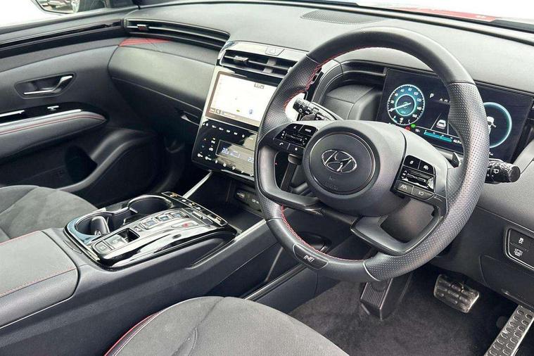 10.25" super vision instrument cluster, 10.25" touchscreen satellite navigation with mapcare and live services, Apple car play/Android Auto, Bluetooth system, Cruise control, Digital clock, Drive mode selector, Driver attention warning, E-call, Emergency stop signalling system, Forward Collision Avoidance Assist (FCA) - Car, Pedestrian and Cycle, Front and rear parking sensors, Intelligent speed limit assist, Lane follow assist, Lane keep assist, PAS, Rev counter, Reversing camera, Tailgate open warning light, Trip computer, Trip odometer, Voice recognition, Water temperature gauge, Windscreen washer fluid sensor and warning indicator, Wireless phone charging pad, Shift by Wire Gear Selector (SBW), 2 front and 2 rear speakers with 2 tweeters, DAB Digital radio, Steering wheel mounted audio/phone controls, USB connections in front and rear, Adjustable intermittent front windscreen wipers with aero wiper blade, Auto dimming rear view mirror, Automatic defog system, Automatic headlights with dusk sensor, Automatic windscreen wipers with rain sensor, Black headlamp bezels, Body colour bumpers, Body colour door mirrors with integrated indicators, Body colour exterior door handles, Body coloured wheel arches, Dark chrome effect radiator grille, Electrically adjustable, heated and power folding door mirrors, Follow me home headlights, Front and rear electric windows with anti-trap mechanism and one touch control, Front fog lights, Gloss black door frame moulding, High beam assist, High level third brake light, LED daytime running lights, LED rear lights, MFR - LED headlight with static bending light, N Line body coloured side mouldings, N Line design front grille, N Line Exclusive front and rear bumpers, N Line rear spoiler with fins, Positioning Lights - LED, Privacy glass - Rear windows and tailgate, Rear side wing doors, Rear wash/wipe with intermittent wipe setting, Roof rails, Silver front and rear skid plate, Sports twin tip exhaust and diffuser, Tinted glass with windscreen shade band, Trailer stability assist, 12V power outlets in front console and luggage compartment, 3 seat bench in 2nd row, 40/20/40 split folding rear seat, Adjustable head restraints (Up and down), Alloy pedals, Ambient lighting, Black headliner, Cupholders in rear armrest, Door courtesy lights, Driver and passenger sunvisors with illuminated LED vanity mirrors, Driver's seat electric lumbar support, Driver's seat manual height adjust, Dual zone climate control, Front and rear door pockets, Front armrest with storage box, Front door pocket bottle holders, Front passenger seat lumbar adjustment, Heated front seats, Height/reach adjustable steering column, Illuminated/air conditioned glove compartment, ISOFIX child seat anchorage points attached on outer rear seats, Leather wrapped steering wheel, Leather/suede upholstery, Luggage area underfloor compartment, Luggage compartment lighting, Luggage cover, Luggage hooks, Manual height adjustable front passenger seat, Map and reading lights, N Line logo on steering wheel, Reclining rear seats, Retractable load cover, Single front passenger seat, Sunglasses holder, 3x3 point rear seatbelts, Active bonnet, Airbag - Front, front side, curtain and centre front airbags, Anti-lock brake system (ABS), Brake assist function, Childproof rear door locks, Curtain airbag roll over sensor, Downhill brake control, Electric parking brake with auto hold function, Electronic stability control, Front and rear seatbelt reminder, Front passenger airbag deactivation switch, Front seatbelt pretensioners, Hill start assist control (HAC), Multi-Collision braking, Outer rear seatbelt height adjustment, Seatbelt height adjustment for front seats, Traction control, Tyre pressure monitoring system with individual tyre pressure display - TPMS, Vehicle stability management, Alarm, Deadlocks, Immobiliser, Locking wheel nuts, Remote control central locking, Smart key with keyless entry and engine start/stop button, Speed sensitive auto door locking, 19" Alloy wheels, Tyre repair kit,