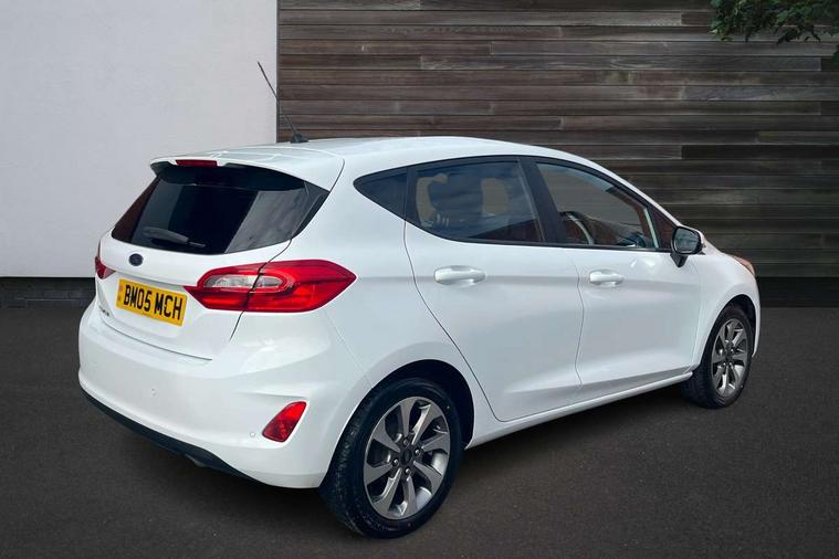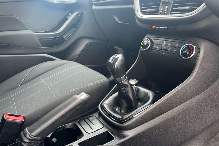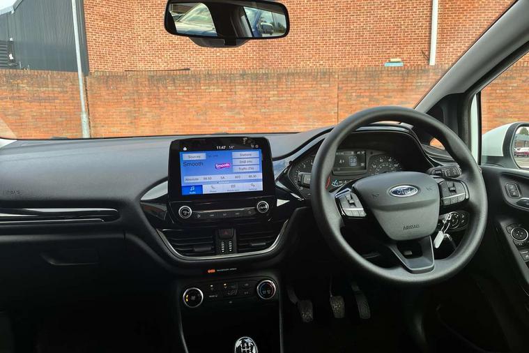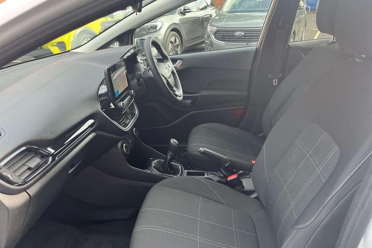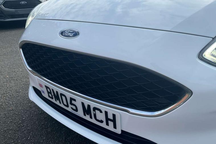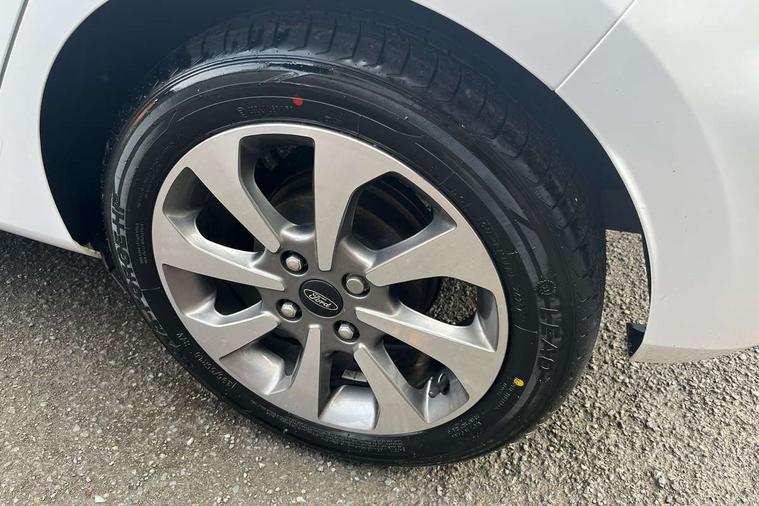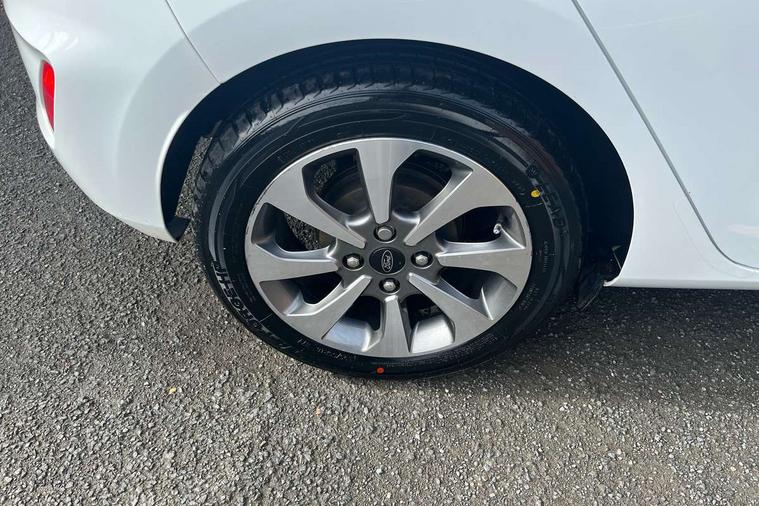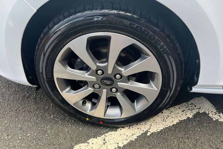 Bluetooth system, Electric power steering, Ford easy fuel, Trip computer, 2 USB ports, Auxiliary input socket, DAB Digital radio, Ford SYNC includes 8" touchscreen, 6 speakers, apple carplay, android auto and emergency assistance, Steering wheel mounted controls, Body colour bumpers, Body colour door handles, Body colour rear spoiler, Chrome beltline trim, Cornering front fog lights, Electric front windows/one touch facility, Electric rear windows, Halogen projector style headlights with static cornering lights + LED daytime running lights, Mesh design front grille with chrome surround, Privacy glass, Quickclear heated windscreen, Rear privacy glass, Rear wiper, Tinted glass, 12V Accessory socket in centre console, 60/40 split folding rear seat, Adjustable head restraints, Ambient lighting, Boot carpet, Chrome inner door handles, Cloth upholstery, Footwell illumination, Front map reading lights, Front seat and rear pockets, Height adjustable driver's seat, Illuminated glovebox, Leather gear knob, Leather trimmed handbrake handle, Load area light, Luxury woven headliner, Manual air conditioning, Overhead console with sunglasses holder, Pollen filter, Rake/reach adjustable steering wheel, NCAP Pack - Fiesta, 3 point seatbelts on all rear seats, ABS+EBA, Curtain airbags, Driver and passenger airbags, Drivers knee airbag, Electronic stability control with hill start assist, Front passenger airbag deactivation, Front side airbags, Tyre pressure monitoring system, MyKey system, Remote central locking & engine immobiliser, Thatcham Cat.1 alarm, 16" 8 spoke alloy wheels with rock metallic machined finish,
