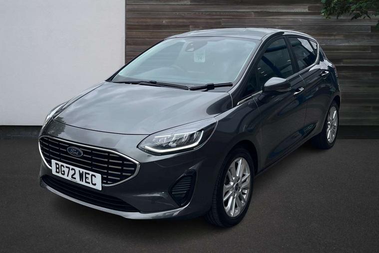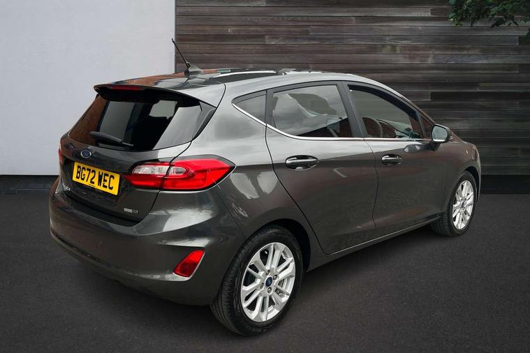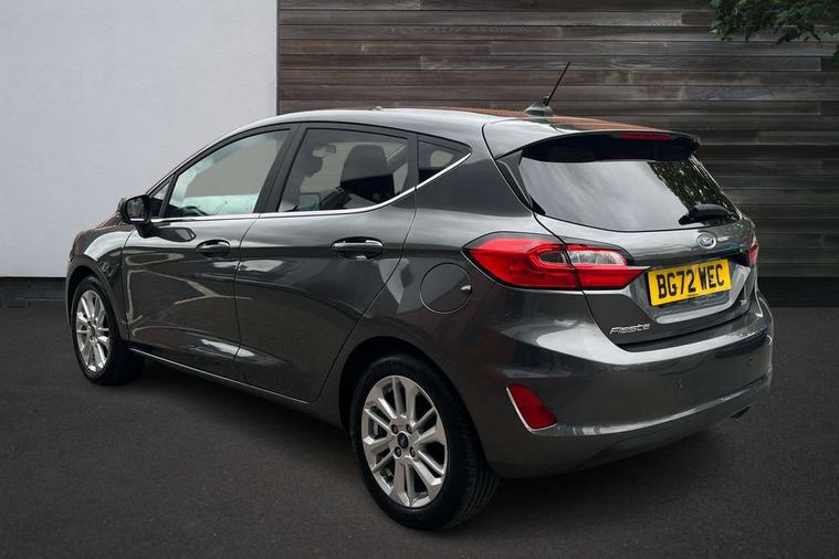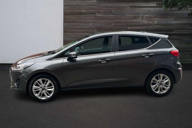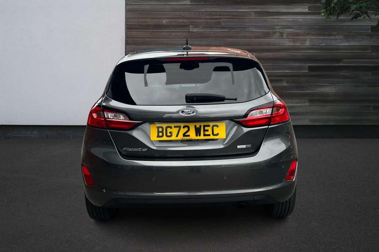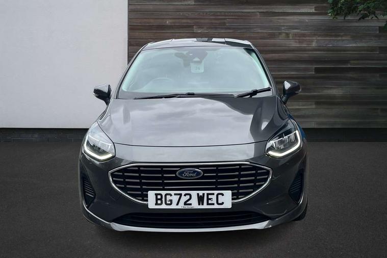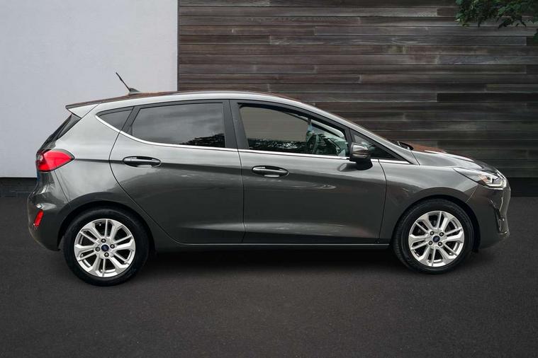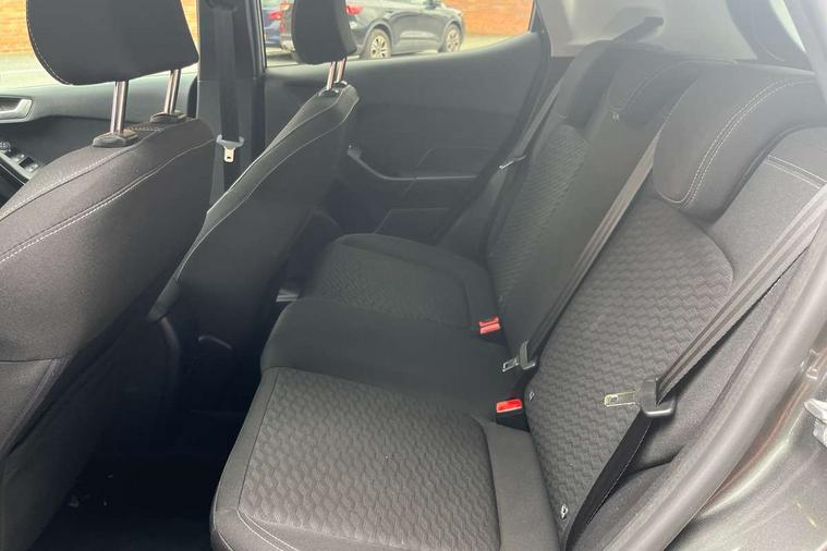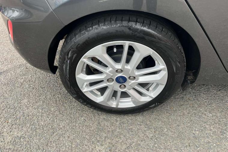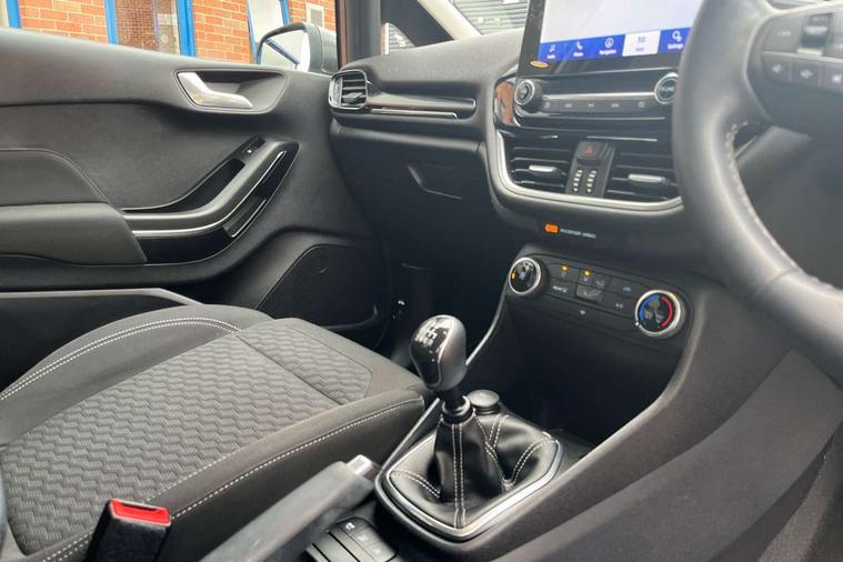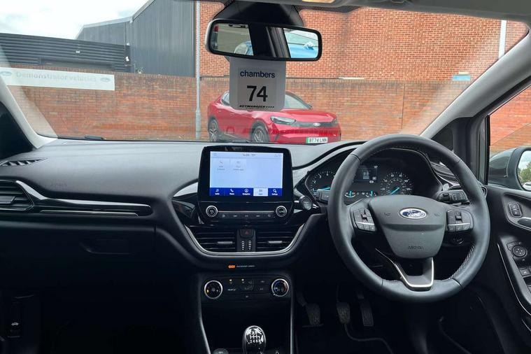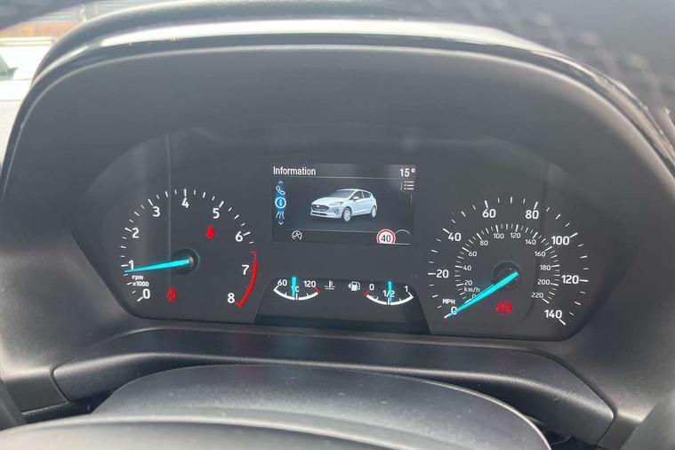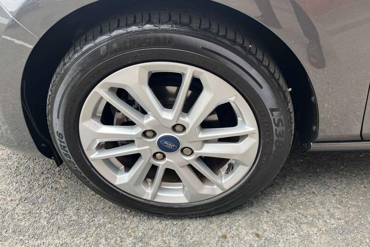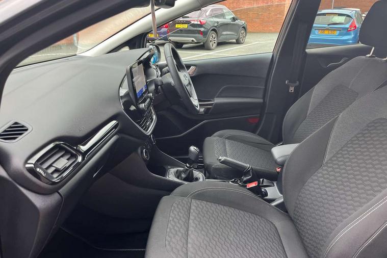 Bluetooth system, Electric power steering, Ford easy fuel, Ford SYNC 3 Navigation system incl 8" touchscreen, 7 speakers, FordPass connect, Apple carplay, android auto, voice control and emergency assistance, Rear parking distance sensors, Selectable drive modes (Normal, Sport, Track), Trip computer, 2 USB ports, Auxiliary input socket, DAB Digital radio, Steering wheel mounted controls, Body colour bumpers, Body colour door handles, Body colour rear spoiler, Body coloured electrically operated and heated door mirrors with side indicators, Chrome beltline trim, Chrome front grille, Chrome lower window surround, Cornering front fog lights, Electric front windows/one touch facility, Electric rear windows, Quickclear heated windscreen, Rain sensing wipers and auto dimming rear view mirror, Rear privacy glass, Rear wiper, 3 spoke leather trimmed steering wheel with audio control, 60/40 split folding rear seat, Adjustable head restraints, Boot carpet, Centre console with opening armrest, 2x cupholders, 12v and USB, Chrome inner door handles, Cloth upholstery, Footwell illumination, Front floor mats in velour, Front map reading lights, Front seat and rear pockets, Illuminated glovebox, Leather gaiter, Load area light, Luxury woven headliner, Manual 2 way passenger seat adjust, Manual 4-way driver seat adjust, Manual air conditioning, Overhead console with sunglasses holder, Pollen filter, Rake/reach adjustable steering wheel, Sensico wrapped steering wheel, NCAP Pack - Fiesta, 3 point seatbelts on all rear seats, ABS+EBA, Curtain airbags, Driver and passenger airbags, Drivers knee airbag, Electronic stability control with hill start assist, Front passenger airbag deactivation, Front side airbags, Seatbelt warning, Two tone horn, Tyre pressure monitoring system, Keyless start with 'Ford Power' starter button, MyKey system, Remote central locking & engine immobiliser, Thatcham Cat.1 alarm, 16" 10 spoke alloy wheels,