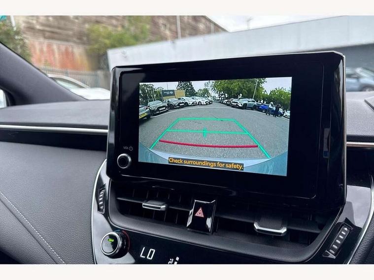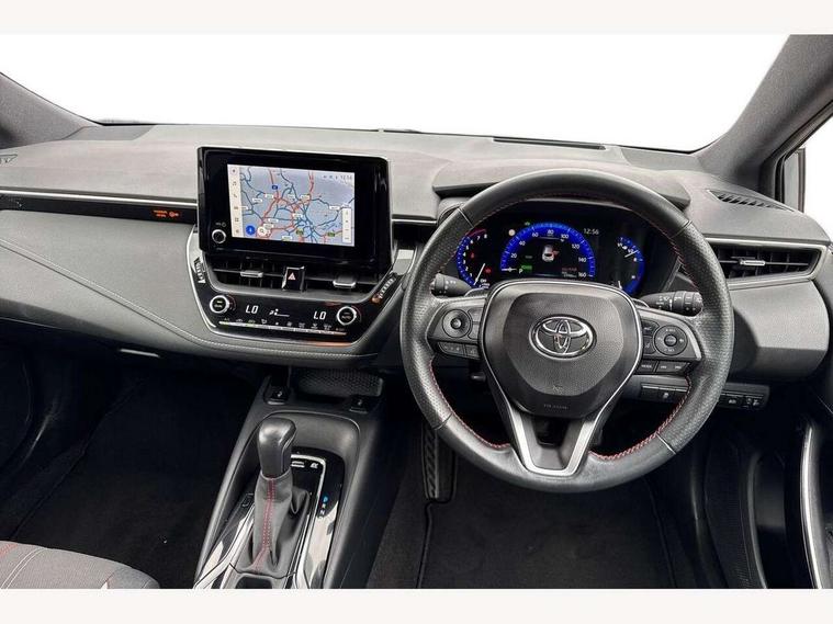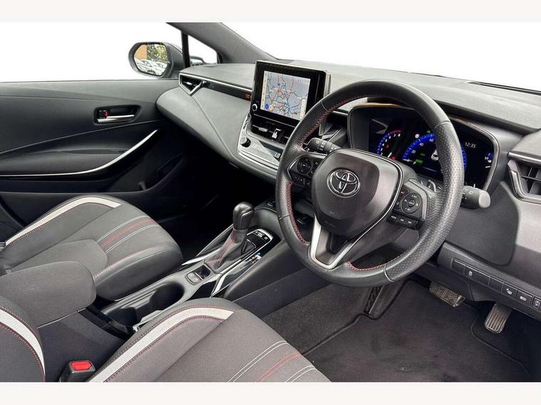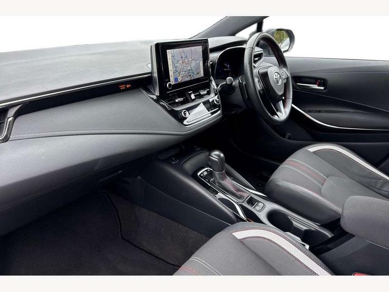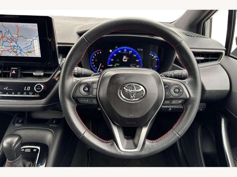 7" Multi information display screen, Bluetooth telephone connectivity, Connected car functionality upgrade, tracker, remote status and e-care, Dynamic radar cruise control (with RSA) including switch on steering wheel, E-call, Electrically assisted power steering, EV drive indicator, Head up Display, Intelligent park assist, Lane Departure Alert (LDA) switch on steering wheel, Memory on adjustable speed limiter, Push button start, Reversing camera, Smartphone integration with Apple CarPlay and Android auto, Gasoline particulate filter, Vehicle Stability Control (VSC), 6 speakers, 8" Touchscreen with MM19 Multimedia system and voice recognition, AM/FM radio, DAB Digital radio, Toyota touch 2 with go navigation system, USB and Aux in connectors + 12V front outlet, Anti-jam protection on power windows, Auto dimming inside rear view mirror, Auto up and down function on all power windows, Automatic folding mirrors, Automatic headlights with high beam assist, Black toyota logo in front, Black window frames, Body colour rear spoiler, Body coloured bumpers, Body coloured door mirrors, Body coloured outside door handles, Follow me home headlights, LED daytime running lights, LED front fog lights, LED Headlights, LED High mounted stop light, LED rear combi lights with LED lightguide, Piano black surround on lower front grille with dark chrome mesh effect, Power adjustable heated door mirrors, Power front windows, Power rear windows, Privacy glass, Rain sensing wipers, Rear bumper with satin chrome plated inserts, Rear side wing doors, Rear window defogger, Rear window wiper, Reverse tilting door mirrors, Shark fin antenna, Time adjustment on intermittent wiper, Turning signal integrated indicators in door mirrors, Unique lower skirt, Unique side rocker with black insert, UV-filter on driver and passenger windows, 3 rear headrests, 3 seat bench in 2nd row, 3 spoke leather steering wheel + gear knob, 60/40 split folding rear seat, Adjustable speed limiter switch on steering wheel, Alcantara/partial leather upholstery, Audio, multimedia and telephone switches on steering wheel, Boot light, Centre room light, Clean air filter, Driver and front passenger personal light, Driver and passenger assist grip, Driver and passenger seatback pockets, Driver and passenger sun visor with mirror and light, Dual zone automatic air conditioning with ECO mode switch, Fabric armrests, Front and rear cup and bottle holders, Front door pockets, Front head restraints, Front passenger seat, Heated driver and front passenger seats, Illuminated entry system in room lamp, ISOFIX seat fixing (2 fixings on rear outer seats), Leather gear shift with satin chrome on gear shift console, Manual height adjustable for driver and front passenger seat, Paddle shifts, Parcel shelf, Pollen filter, Power adjustable lumbar support on driver seat, Power window switches with satin chrome inserts, Rear armrest with 2 cupholders, Rear passenger coat hooks (2), Satin chrome inside door handles, Shopping bag hooks in luggage compartment, Sliding armrest on centre console box, Slow opening glovebox with lights, Sports seats, Tilt/telescopic steering column, Voice recognition switch on steering wheel, Whiplash Injury Lessening (WIL) feature (active headrest) for seats, Parking pack - Corolla, Toyota safety sense 2 pack - Corolla, 3x3 point rear seatbelts, Adjustable driver and front passenger seat belt extender to top anchor point, Anti lock braking system + Electronic brake force distribution, Brake assist function, Child locks on rear doors, Downhill Assist Control (DAC), Electronic parking brake, Emergency brake light signal (EBS), Front passenger airbag on/off switch, Front seatbelt reminder, HAC - Hill start assist control, Rear seat belt reminder, Seatbelt pretensioners and force limiters, Supplemental restraint system (SRS) 7 airbags - dual driver, dual side curtain, side impact and driver knee airbags, Traction control, Tyre pressure warning system, Acoustic vehicle alert system (AVAS), Alarm with motion sensor and immobilizer, Remote central locking + deadlocks, Smart entry, Satin chrome dash trim, Soft touch texture on upper dashboard, Space saver spare wheel, Unique wheel finish with red wheel cap,