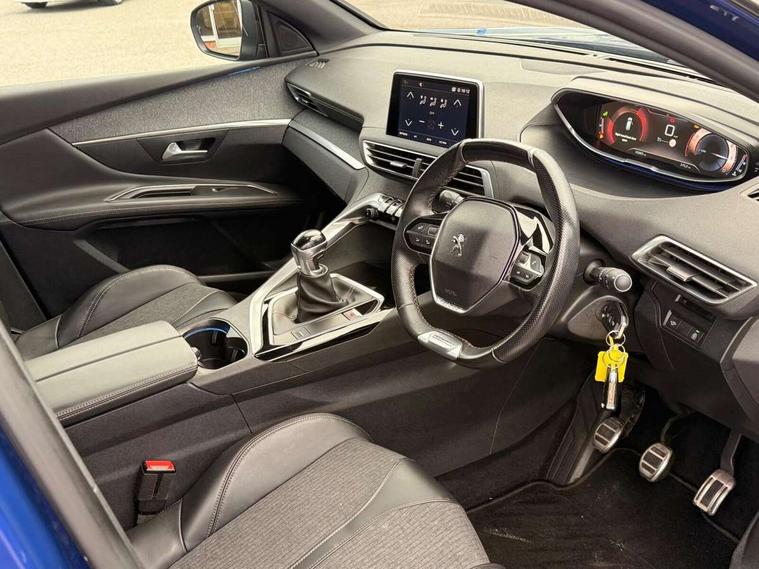 3D connected navigation + voice control + Peugeot connect SOS and assistance, Blind spot monitoring, Digital clock, Exterior temperature gauge, Lane departure warning system, Lane keep assist, Mirror screen with mirror link and car play, Multi function trip computer, Peugeot i-cockpit with amplify configurable interior ambiences, headup display with distance alert, touch screen, Programmable cruise control and speed limiter, Rear parking aid, Smartphone cradle, Speed sensitive power steering, DAB Digital radio, Peugeot connect with USB and bluetooth, Radio/MP3 player, Steering column mounted multifunction controls, Automatic activation of hazard warning lights, Automatic headlamp levelling, Black diamond roof, Black door mirrors, Body colour door handles, Body colour rear spoiler, Body coloured bumpers, Chrome bumper inserts, Chrome front fog light surround, Chrome radiator grille and surround, Chrome side window trim, Dark tinted rear windows, Electric folding door mirrors with courtesy approach lighting, Electric operated/heated door mirrors, Heated rear windscreen, LED daytime running lights, LED headlights with LED front fog light and static cornering light, LED rear lights, One touch electric front/rear windows, Peugeot smart beam assist, Rear wiper, Sports front bumper, Twin exhaust tailpipe, 1/3 to 2/3 split folding rear seats, 3 x 12V power sockets, 4 Lashing eyes in boot, Blue ambient lighting, Centre console cupholder, Centre front armrest with illuminated cool compartment, Cupholders - 2 in rear centre armrest, Dual zone automatic climate control, Fold flat front passenger seat with picnic table, Front headrests, Front reading lights, Front seat back map pockets, Gear shift indicator, Grab handles, Height adjustable headrests, Height adjustable passenger seat, Height/reach adjust steering wheel, Illuminated glovebox, Illuminated vanity mirrors, Instrument panel light dimmer, ISOFIX on front passenger and rear outer seats, LED interior illumination, Mistral floor mats, Mistral full grain perforated leather steering wheel with aikinite stitch, Rear centre armrest/ski flap, Rear coat hook, Rear headrests, Rear passenger footwell storage, Rear reading lights, Reclining front seats, Roof lining - Tramontane black, Satin chrome interior door handles, Visibility pack - 3008, 3 point front seat belts, 3 point seatbelts on all rear seats, ABS + EBD + EBA, Auto city emergency braking, Driver SMART airbag, Electronic parking brake, ESP with ASR, Front and rear curtain airbags, Front and rear pre-tensioning and force limiting seatbelts, Front passenger SMART airbag with deactivate switch, Height adjustable front seatbelts, Hill start assist, Seatbelt warning lamp and buzzer, Side airbags x 2, Tyre pressure sensor, Automatic door lock/re-lock after 30 seconds, Central locking button on dash, Child lock control of rear doors and windows, Deadlocks, Locking wheel bolts, Perimetric and volumetric anti theft alarm, Remote control central locking with two plip keys, Rolling code transponder immobiliser, Brumeo fabric interior trim,