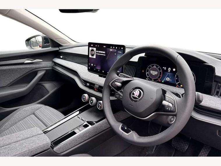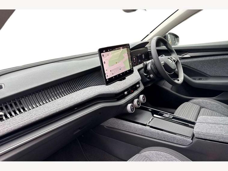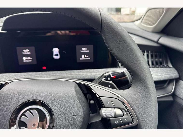 13" touchscreen display with satellite navigation, 4x USB-C ports (2x in front centre console and 2x in rear) (45W), Adaptive cruise control with speed assist, lane assist plus and traffic tram assist, Blind spot detection with door exit warning, Bluetooth system, CareConnect and Emergency Call, ChatGPT functionality, Driver fatigue sensor, Front assist with extended predictive pedestrian protection, Front cross traffic assist, PAS, Quick start all heating software functionality, Rear view camera with washer, Stop/start engine system, Traffic sign recognition, Turn assist with evasive assistance, Virtual Cockpit - 10.25" digital display, Voice control system, Wireless charging for one smartphone (15W) with cooling function, Wireless smartlink apple carplay, SmartLink+ android auto, 8 Speakers, DAB Digital radio, Display cleaner, FM radio connection, Web radio connection, Acoustic side windows and interior noise suppression, Backdrop lighting, Body colour door handles, Body coloured door mirrors, Chrome window surround, Electrically adjustable, heated, folding and driver side auto-dimming door mirrors with integrated indicators and logo projection, Frameless auto-dimming rear view mirror with USB-C, Front windscreen with heat-insulating glass, Ice scraper in fuel tank cap, LED 3rd brake light, Light assist with High beam control, Light assistant (coming/leaving home/tunnel light), Privacy glass, Rear fog light (x1), Rear side wing doors, Tow bar preparation, Unique dark chrome design logo on alloy wheels, Unique dark chrome grille surround with dark chrome rib elements, Windscreen wipers with rain sensor, 12V socket 1x centre console 1x boot, 12V socket and 2x cargo elements in boot, 2 spoke multifunction steering wheel with DSG paddles, 3 seat bench in 2nd row, 60:40 Split folding rear seats, Bottle holders in the front doors 1.5 litre bottle and rear 1.5 litre bottle, Cup holder in front with easy open mat, Front and rear footwell illumination, Front armrest with storage box, Front comfort seats, Heated front seats, Height adjustable driver and front passenger seats with 2-way electric tilt, 4-way pneumatic lumbar support, and extendable thigh support, Height adjustable front and rear head restraints, Height adjustable front passenger seat, Illuminated glovebox, Interior lights with control switches, Isofix child seat fittings in outer rear and front passenger seats, LED front and rear reading lights, Massage function for front seats, Single front passenger seat, Skoda lettering on steering wheel, Storage pockets on back of front seats, Sun visors with illuminated vanity mirrors, Ticket holder on A Pillar, Tri zone climate control, Umbrella in driver's door, 3 rear seatbelts, 8 Airbags - Front driver and passenger, front side driver and passenger, centre, curtain front and rear, drivers knee, Crew protect assist, Driver and passenger seatbelts with warning light, Electronic parking brake, ESC including ABS, EBV, MSR, ASR, EDS, HBA, DSR, RBS, CBC, multi-collision brake (MKB) and Auto hold, Hill hold assist, Power operated child lock in rear doors, Alarm with interior monitoring tilt sensor and back up horn, Backrest remote release from trunk, Electronic engine immobiliser, Keyless start/stop, Remote central locking with SAFE system, Third key, Decorative front door sills,