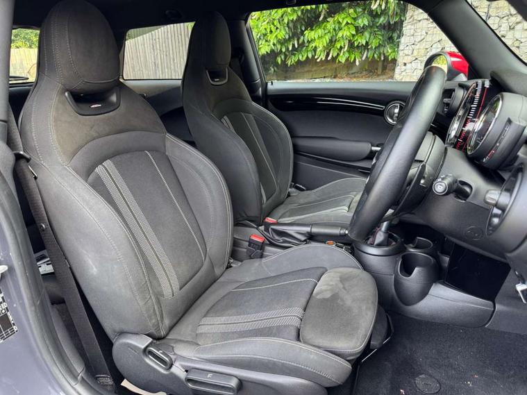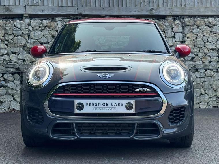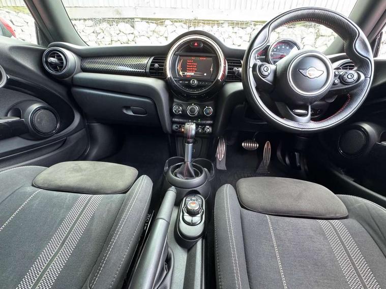 Acoustic seat-belt warning, Brake fluid level warning light, Brake pad wear indicator warning light, DTC - Dynamic traction control, Exterior temperature gauge, Intelligent emergency call, MINI Driving Modes - centre toggle switch to control driving setting (sport, mid and green), MINI TeleServices, Oil level indicator, On board computer, Push button starter, Service interval indicator, Servotronic PAS, Electronic differential lock, Performance Control, Auxiliary input socket, DAB digital radio module, 2 speed wipers+intermittent wipe, Anti dazzle mirror, Anti trapping/one touch open close front windows, Body colour scoop integrated into engine- compartment lid, Body coloured bumpers, Chili red grille bar, Chrome bezels around rear lights and headlights, Chrome door handles, Chrome plated fuel cap, Chrome plated trim on bottom edge of window, Chrome strip on lower grille, Electric front windows, Electrically adjustable door mirrors, Extended wheel arches, Follow me home headlights, Green tinted heat insulating glass, Heated door mirrors/heated windscreen washers, Heated rear window with auto timer, High gloss black tailgate, Honeycomb radiator grille, John Cooper Works roof spoiler, Metal look door sill finishers, Rear wiper, Side scuttles, Twin chromed exhaust pipes, White indicator lights, 2 rear head restraints, 4 boot load lashing points, 6 way manually adjustable passenger seat, 6-way manually adjustable driver's seat, Active carbon filter, Air recirculation system, Anthracite headlining, Auxiliary socket in centre console storage compartment, Centre console storage, Driver's seat height adjuster, Driver/passenger sunvisors, Easy entry seats, Front and rear cupholders, Front head restraints, Front interior light, Front passenger grab handle, Front seat backrest storage nets, Front sports seats, Gear/selector and handbrake in artificial leather, Internal chrome door handles, Isofix child seat preparation, Luggage compartment lighting, Multifunction steering wheel, Passenger seat height adjuster, Reach + rake adjustable steering column, Rear grab handles, Rear storage trays, Split folding rear seats, Storage compartments in doors, Toolkit in luggage compartment, Vanity mirrors, 3 point seatbelts, ABS/EBD, ASC+T, Brake calipers in red, Cornering brake control (CBC), Crash Sensor - activates hazard/interior lighting + unlocks doors, Driver and passenger airbags, Driver/front passenger side airbags, DSC - Dynamic Stability Control, Fuel cut off safety device, Head airbags, Hill start assist, Passenger airbag deactivation system, Seatbelt pretensioners, Tyre pressure warning, Ventilated front disc brakes, Drive away door locking, Locking wheel bolts, Remote central locking/doors+fuel cap+tailgate, Second remote key, Thatcham category 1 alarm + immobiliser,
