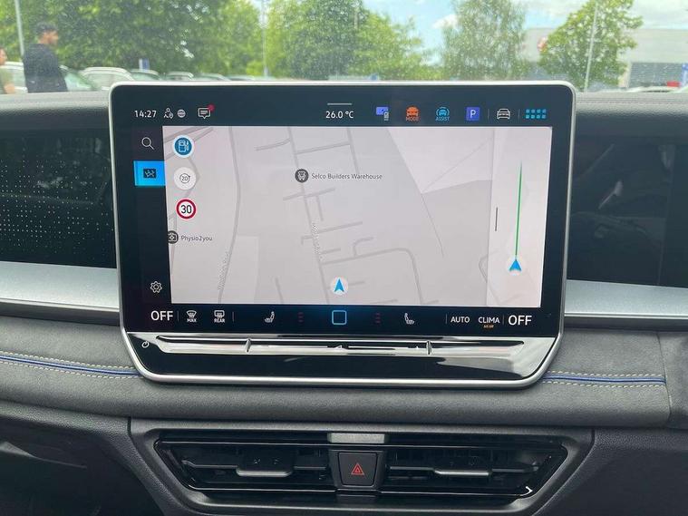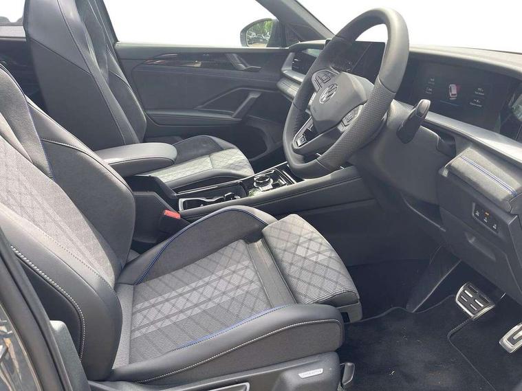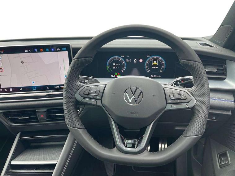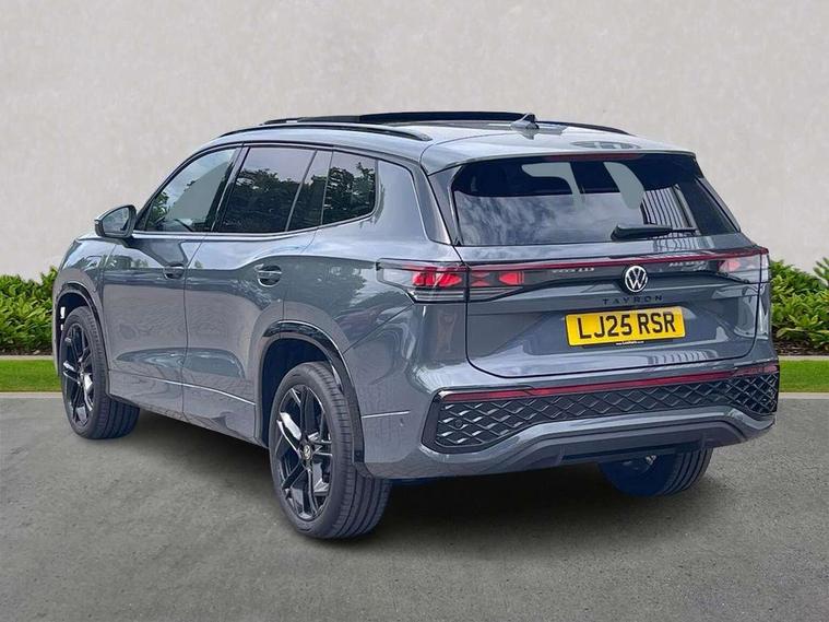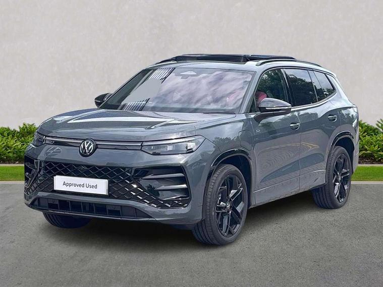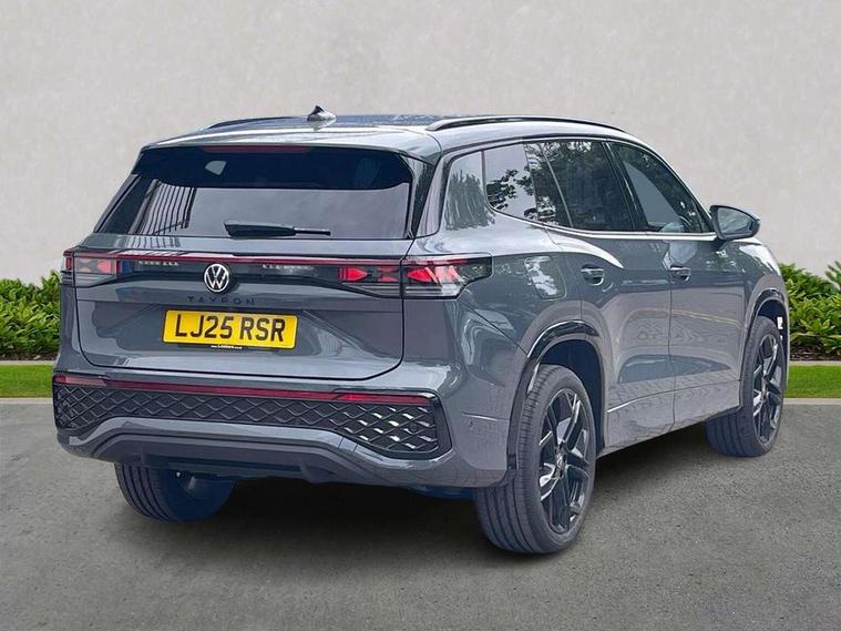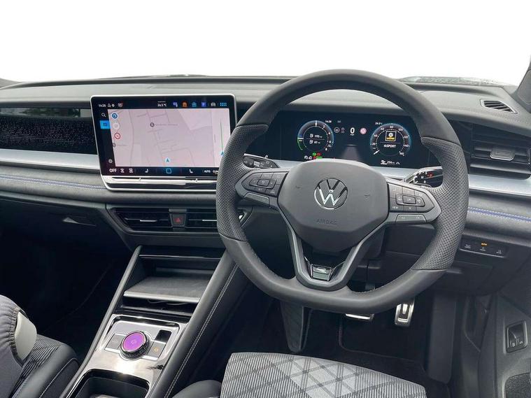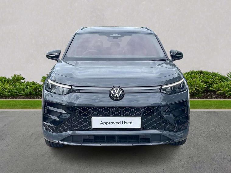 Adaptive cruise control (ACC), Digital Cockpit Pro - 10.25" high resolution dash display screen with customisable menus and information, Driver alert system, Driver attention monitoring system, Dynamic road sign display, E-Sim card for online connectivity, eCall emergency call system, Lane change system, Side assist, Rear traffic alert and Exit warning system, Multifunction front facing camera, Oncoming vehicle braking when turning including swerve support, Progressive steering, Start/stop system with regenerative braking, Voice activation spoken voice commands for telephone and navigation system, Warning signal and warning light for front and rear seatbelts not fastened, Wireless App-Connect, Adaptive chassis control DCC pro includes driving mode selection, Charging cable Mode 2 Type 2 / G (10A), Charging cable Mode 3 Type 2 / 3 (16A), Front shock absorption G08, Front wheel drive, Rear shock absorption, Digital radio reception (DAB), Diversity antenna for FM reception, Air intake with Chrome trim, Auto dimming interior rear view mirror, Automatic headlight control system, Body colour door handles, Chrome moldings on the side windows, Coming/leaving home lighting function, Dynamic headlight range control with dynamic cornering light, Exterior mirrors convex on the left and aspherical on the right, Heat insulating glass in side and rear windows, Illuminated Volkswagen logo rear with animation, Laminated safety glass winshield, heat insulating, LED 3rd brake light, LED separate signature day time running light, Puddle lights, Rain sensor windscreen wipers, Rear fog light on one side, reversing light on both sides, Rear side wing doors, Rear wiper, Reverse activated passenger's door mirror, Surround lighting with welcome light, Tilting and sliding panoramic sunroof with rear panoramic sunroof, Volkswagen logo in front, illuminated lighting animation with wake up/goodbye scenario and illuminated door handles, 10 colour interior ambient lighting, 12V outlet in center console rear and in luggage compartment, 3 rear headrests, 3 rear seat bench in 2nd row, split folding, longitudinally movable and folding with load-through hatch, Black roof lining, Brushed stainless steel pedals, Carpet mats, front and rear, Centre console with illuminated storage compartment with sliding cover and two drinks holders, Chrome elements on the mirror switch and power window switches and door pulls, Door and side trim panel insert in Art velour, Flat luggage compartment floor, Front centre armrest, Front scuff plates in alumium, ISOFIX anchors for child seats on outer rear seats and front passenger seat compatible with i-Size, Mechanical rear seat release, Power adjustable lumbar support in front, Single front passenger seat, Sports comfort seats in front, Sun visors with illuminated vanity mirrors, Comfort package with park assist pro - Tayron, 3 Point seat belts in front with pretensioners, 3 point seatbelts in outer rear with ECE label, Autonomous emergency braking front assist with pedestrian and cyclist monitoring, Driver and front passenger airbag with front passenger airbag deactivation, Electronic parking brake with auto hold, First aid kit with warning triangle and safety vest, Front and rear curtain airbags, Front and rear side airbags, Front centre airbag, Front disc brakes, Hill start assist, Rear disc brakes, Two tone horn, Decorative material set R-Line, Interior door handle in matte chrome, Tool kit for tyre mobility set, Tyre mobility kit including compressor and sealing foam. In lieu of spare wheel,