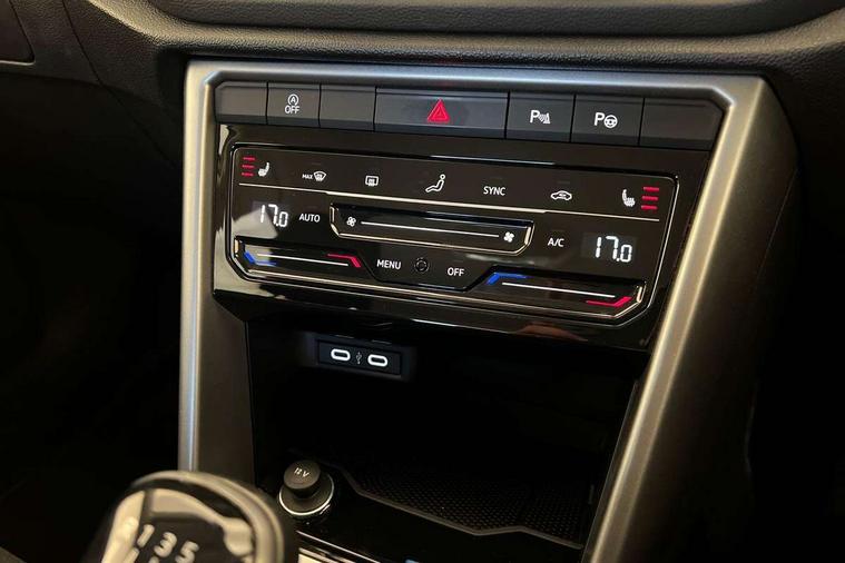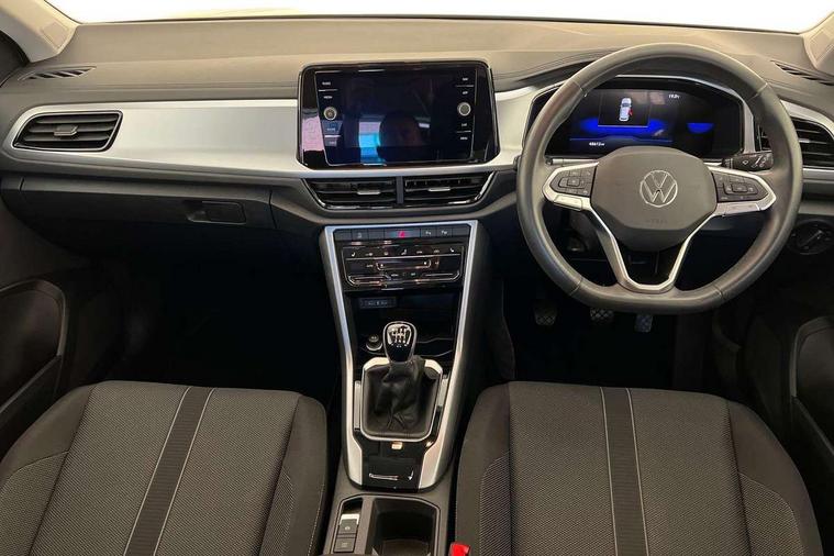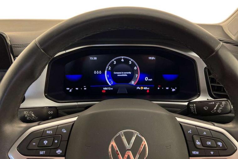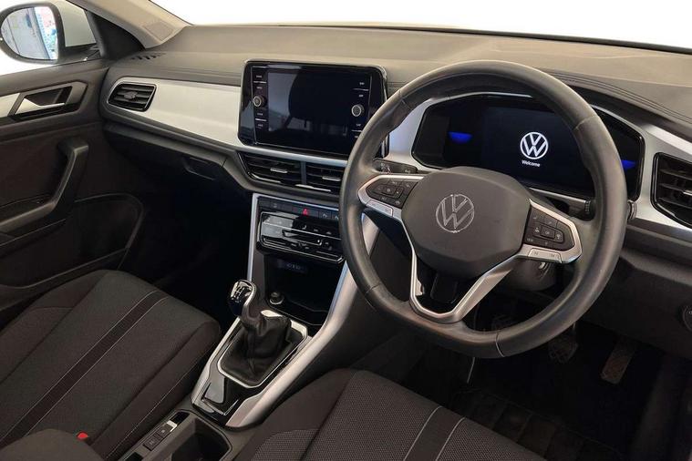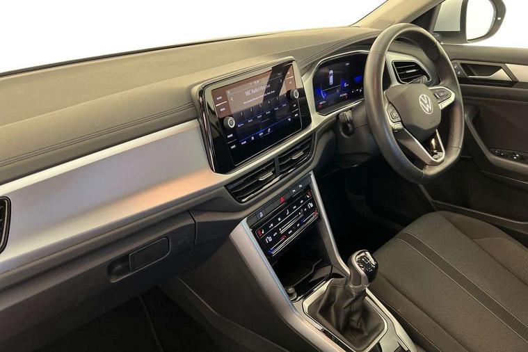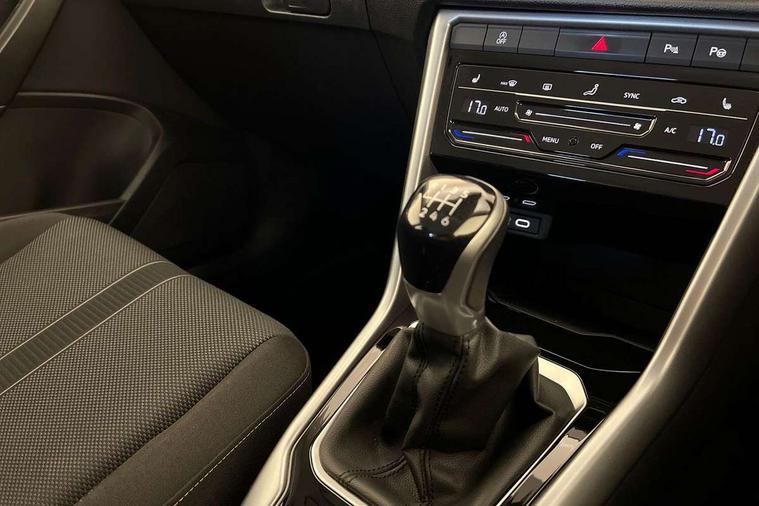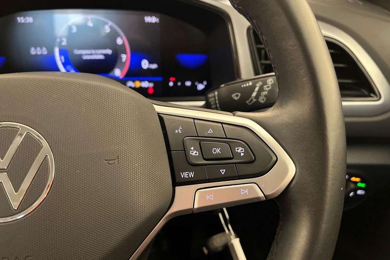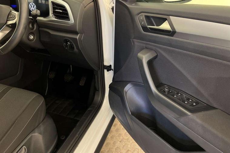 Bluetooth mobile phone interface, Driver alert system with fatigue detection, Driver tips and journey analysis, Emergency call service, Lane keeping system Lane Assist, Modified key software - reduce switch off time for key status change to Long no motion, Online services, Park assist including front and rear parking sensors, Power assisted speed sensitive steering, Service interval indicator, Tailgate/trunk lid release from outside, Think blue trainer driver tips and journey analysis, Warning sound and light for front seatbelts unfastened, Wireless app connect, Battery regeneration during braking, Front shock absorption, Rear shock absorption chassis with increased ride height, Start/stop function with battery regeneration, DAB Digital radio, Diversity antenna for FM reception, Music playback - MP3, WMA and AAC files, Premium USB cable in choice of either Apple or Android smartphone compatibility, SD card slot, Simultaneous pairing of 2 compatible mobile devices, Title and cover art display, We Connect and We Connect Plus functionality, 3rd brake light, Auto dimming interior rear view mirror, Automatic hazard lights activation under emergency braking, Automatic headlight control with LED separate daytime running lights with coming/leaving home function, Black roof rails, Body coloured bumpers and radiator grille with chrome trim and front fog lamps with chrome bezel, Body coloured exterior mirror housings and door handles, Extended roof spoiler, Exterior mirrors aspherical on driver side, convex on front passenger side, External USB type C socket and charging sockets, Front windscreen wiper with intermittent wipe and 4 position delay, Heated rear window, LED rear combination lamps, LED rear number plate lights, LED tail lamp rear comination lamps, Power windows with comfort operation and circuit breaker, Rain sensor, Rear exhaust tailpipe, Rear fog light on one side and reversing lights on both sides, Rear side wing doors, Rear wash/wipe with intermittent wipe setting, Remote electrically foldable door mirrors, puddle lights and reverse activated passenger's door mirror, 12V power socket in centre console, 3 rear head restraints, 3 seat bench in 2nd row, 4 load lashing points in luggage compartment, Air care climatronic air conditoning system with active combination filter and 2-zone temperature control, Ambient lighting with mirror logo projection, Cloth upholstery, Door and side trim panel in cloth, Drawer under drivers seat, Driver/front passenger seat height adjustment, Front centre armrest, Front comfort sports seats, Front cupholders x 2, Front reading light, Instrument lighting, white adjustable panel illumination, Interior light delay, Isofix child seat preparation, Leather gearshift handle, Load-through provision with cup holder when folded down ('Unsplit rear seat bench, split folding backrest, with centre armrest), Luggage compartment lighting, Lumbar support for driver's and front passengers seat, Non-folding front passenger seat backrest, Single front passenger seat, Storage compartment in left and right luggage area, Storage compartment in rear doors, Storage compartments in driver and front passenger doors, Sunvisors with illuminated vanity mirrors, Variable boot floor, height adjustable and removable, Driver assistance pack without proactive passenger protection - T-Roc, 3 point height adj front seatbelts + pretensioners, 3 point seatbelts in outer rear with ECE label, ABS, Child locks on rear doors, Driver and front passenger airbag with front passenger airbag deactivation, Driver and front passenger safety-optimised head restraints, Drivers seatbelt reminder, Electronic parking brake, Electronic Stability Control (ESC) inc EDL (Electronic Differential Lock) and ASR (Traction Control), Front and rear passengers curtain airbag system including front side airbags, Front assist with city emergency braking and pedestrian monitoring, Front disc brakes, Front seat side impact airbags, Hill start assist, Predictive pedestrian protection, Rear disc brakes, Single tone horn, Tyre pressure loss indicator, Volkswagen roadside assistance, Alarm with interior protection, Anti-theft alarm system with interior monitoring, backup horn, and towing protection, Remote central locking with SAFELOCK, radio remote control with 2 remote control folding keys, Pewter matt decorative inserts for intrument panel, centre console and door panels at the front, Trims for alloy wheels,
