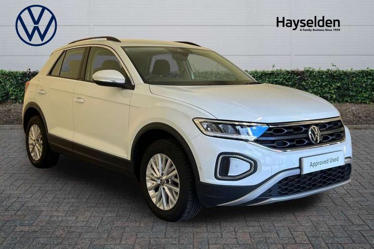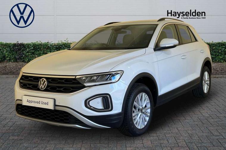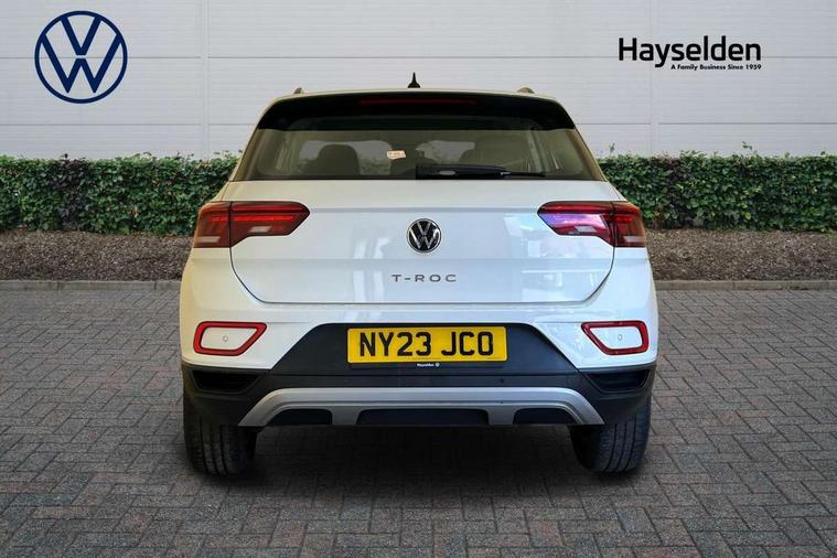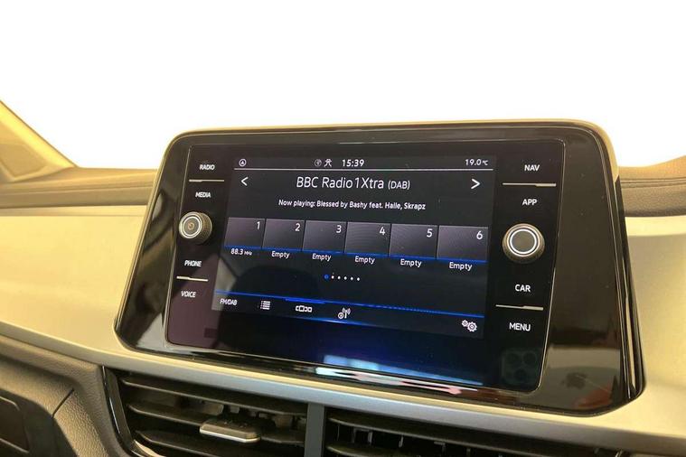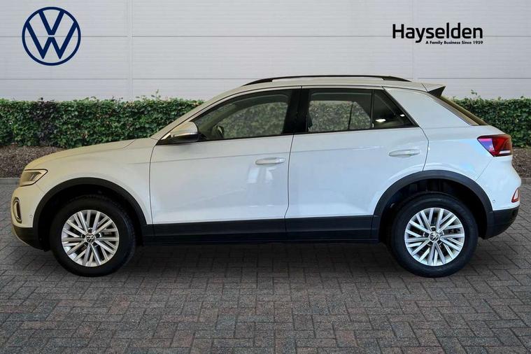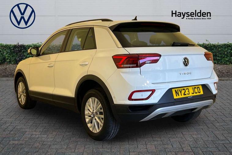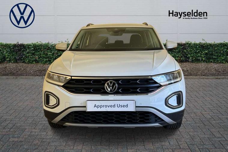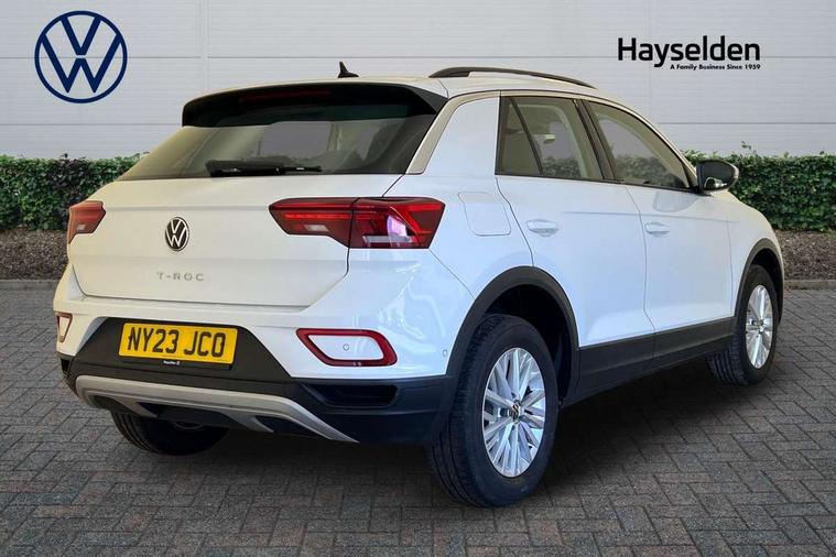 Bluetooth mobile phone interface, Driver alert system with fatigue detection, Driver tips and journey analysis, Emergency call service, Lane keeping system Lane Assist, Modified key software - reduce switch off time for key status change to Long no motion, Online services, Park assist including front and rear parking sensors, Power assisted speed sensitive steering, Service interval indicator, Tailgate/trunk lid release from outside, Think blue trainer driver tips and journey analysis, Warning sound and light for front seatbelts unfastened, Wireless app connect, Battery regeneration during braking, Front shock absorption, Rear shock absorption chassis with increased ride height, Start/stop function with battery regeneration, DAB Digital radio, Diversity antenna for FM reception, Music playback - MP3, WMA and AAC files, Premium USB cable in choice of either Apple or Android smartphone compatibility, SD card slot, Simultaneous pairing of 2 compatible mobile devices, Title and cover art display, We Connect and We Connect Plus functionality, 3rd brake light, Auto dimming interior rear view mirror, Automatic hazard lights activation under emergency braking, Automatic headlight control with LED separate daytime running lights with coming/leaving home function, Black roof rails, Body coloured bumpers and radiator grille with chrome trim and front fog lamps with chrome bezel, Body coloured exterior mirror housings and door handles, Extended roof spoiler, Exterior mirrors aspherical on driver side, convex on front passenger side, External USB type C socket and charging sockets, Front windscreen wiper with intermittent wipe and 4 position delay, Heated rear window, LED rear combination lamps, LED rear number plate lights, LED tail lamp rear comination lamps, Power windows with comfort operation and circuit breaker, Rain sensor, Rear exhaust tailpipe, Rear fog light on one side and reversing lights on both sides, Rear side wing doors, Rear wash/wipe with intermittent wipe setting, Remote electrically foldable door mirrors, puddle lights and reverse activated passenger's door mirror, 12V power socket in centre console, 3 rear head restraints, 3 seat bench in 2nd row, 4 load lashing points in luggage compartment, Air care climatronic air conditoning system with active combination filter and 2-zone temperature control, Ambient lighting with mirror logo projection, Cloth upholstery, Door and side trim panel in cloth, Drawer under drivers seat, Driver/front passenger seat height adjustment, Front centre armrest, Front comfort sports seats, Front cupholders x 2, Front reading light, Instrument lighting, white adjustable panel illumination, Interior light delay, Isofix child seat preparation, Leather gearshift handle, Load-through provision with cup holder when folded down ('Unsplit rear seat bench, split folding backrest, with centre armrest), Luggage compartment lighting, Lumbar support for driver's and front passengers seat, Non-folding front passenger seat backrest, Single front passenger seat, Storage compartment in left and right luggage area, Storage compartment in rear doors, Storage compartments in driver and front passenger doors, Sunvisors with illuminated vanity mirrors, Variable boot floor, height adjustable and removable, Driver assistance pack without proactive passenger protection - T-Roc, 3 point height adj front seatbelts + pretensioners, 3 point seatbelts in outer rear with ECE label, ABS, Child locks on rear doors, Driver and front passenger airbag with front passenger airbag deactivation, Driver and front passenger safety-optimised head restraints, Drivers seatbelt reminder, Electronic parking brake, Electronic Stability Control (ESC) inc EDL (Electronic Differential Lock) and ASR (Traction Control), Front and rear passengers curtain airbag system including front side airbags, Front assist with city emergency braking and pedestrian monitoring, Front disc brakes, Front seat side impact airbags, Hill start assist, Predictive pedestrian protection, Rear disc brakes, Single tone horn, Tyre pressure loss indicator, Volkswagen roadside assistance, Alarm with interior protection, Anti-theft alarm system with interior monitoring, backup horn, and towing protection, Remote central locking with SAFELOCK, radio remote control with 2 remote control folding keys, Pewter matt decorative inserts for intrument panel, centre console and door panels at the front, Trims for alloy wheels,