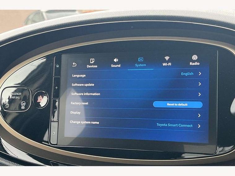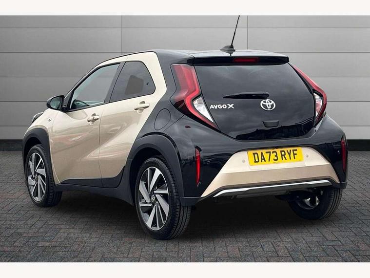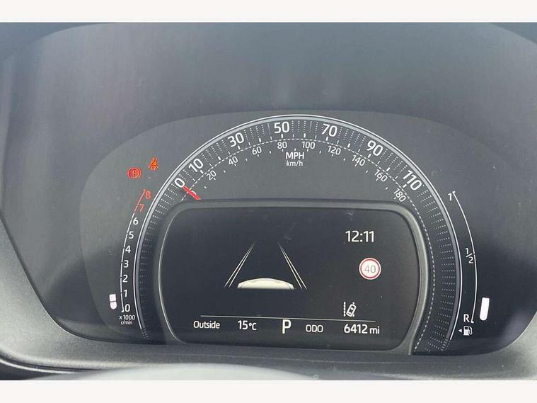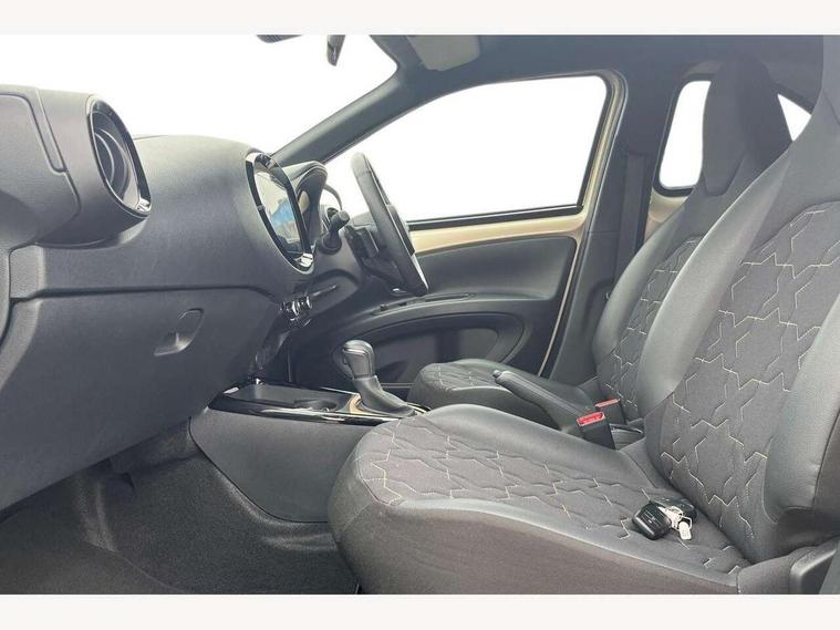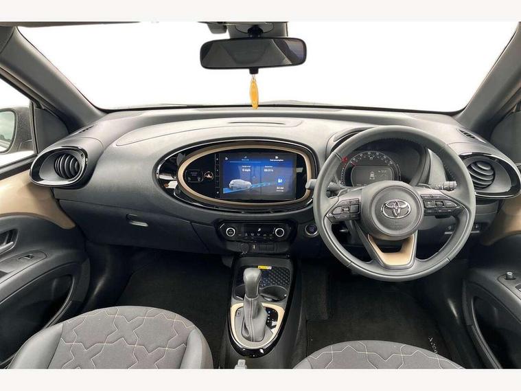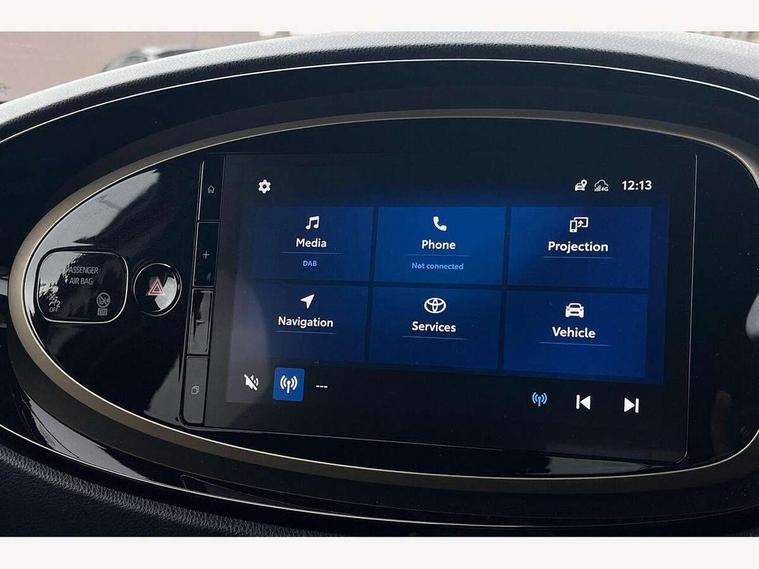 4.2" TFT colour screen, Adjustable speed limiter, Analogue speedometer, Bluetooth connectivity, Digital tachograph, Driver attention alert system, eCall emergency call system, ECO-driving indicator, Electric power steering, Front and rear parking sensors with auto brake, Intersection turn assist, Key reminder warning, Noise reduction kit, Pre collision system with emergency steering assist, Remote boot door release on key, Reversing camera with static guide lines, Smart entry and push button start, Speed limit display, Start and stop, Wireless charger, Wireless Smartphone Integration includes Apple CarPlay and Android auto, Vehicle Stability Control (VSC), 4 speakers, 9" HD multimedia display touch screen with Toyota smart connect, DAB digital audio broadcast, USB connector, Auto headlights, Auto wipers, Automatic headlights cut-off, Automatic high beam On/Off switch, Bicycle towing hook, Black fog light surrounds, Black side protection mouldings, Black wheel arch mouldings, Body colour door handles, Body coloured front bumper, Boot door scuff plate, Eclipse black rear bumper, Electric heated door mirrors, Follow me home headlights, Front and rear underruns in silver, Front fog lights, Front power windows, Gloss black door mirrors, Gloss black upper front grille, Headlight cut-off reminder, LED daytime running lights guide, LED front light guide, LED High mounted stop lamp, LED projector headlights, Manual day/night rear view mirror, Manual headlight levelling, Pagoda roof, Power adjustable door mirrors, Power back door, Privacy glass, Rain sensor, Rear combination lights LED bulb type, Rear side wing doors, Rear windscreen defogger, Rear windscreen wiper, Remote hazard lights system, Short antenna, Variable intermittent windscreen wipers, 12v power outlet - front, 2 seat bench in 2nd row, 3 spoke leather steering wheel, 50/50 split folding rear seat, Adhesive roof headlining, Adjustable speed limiter switch on steering wheel, Audio and telephone switches on steering wheel, Auto air conditioning, Black roof lining, Body colour satin anodised insert on steering wheel, Boot light, Centre room light, Chrome interior door handles, Chrome surround on air conditioning buttons, Clean air filter, Console box storage, Floor mats, Front and rear cup holders, Front head rest deco art, Front head restraints, Gear shift indicator, Height adjustable driver seat, Intelligent adaptive cruise control switch on steering wheel, ISOFIX child restraint system on rear seats, Lane departure alert switch on steering wheel, Leather gearshift knob, Light blue ambient lighting in centre console, Manual tilt steering wheel, Manually reclining and sliding driver seat, Manually reclining and sliding front passenger seat, Multimedia switches on steering wheel, Paddle shift levers on steering wheel, Partial synthetic leather upholstery, Pollen filter, Rear door pockets, Rear head restraints, Remote air-conditioning system, Satin silver insert on gear shift knob, Single compartment glovebox with lights, Single front passenger seat, Soft tonneau cover, Sun visors with mirror on driver and passenger side, Voice recognition switch on steering wheel, Toyota safety sense pack - Aygo X, Anti lock braking system + Electronic brake force distribution, Child safety door lock, Emergency brake light signal (EBS), Hill start assist control (HAC), Passenger airbag on/off switch, Seat belt reminder for front and rear seats, Supplement restraints system (SRS) - 6 airbags, Traction control, Tyre pressure warning system, Immobiliser, Remote power door locks, Black wheel centre caps, Tyre repair kit,