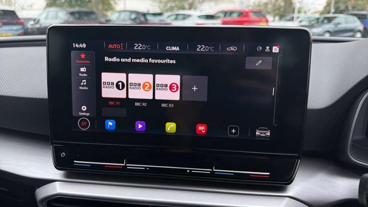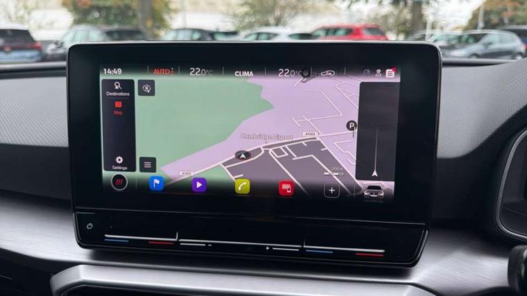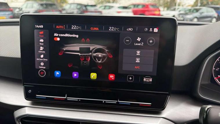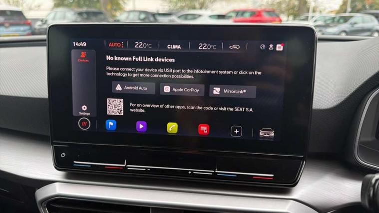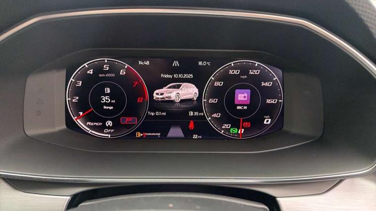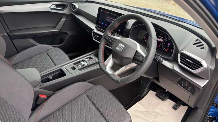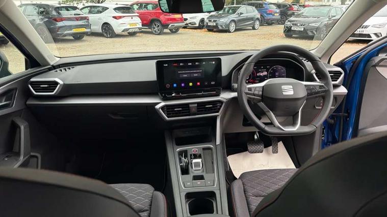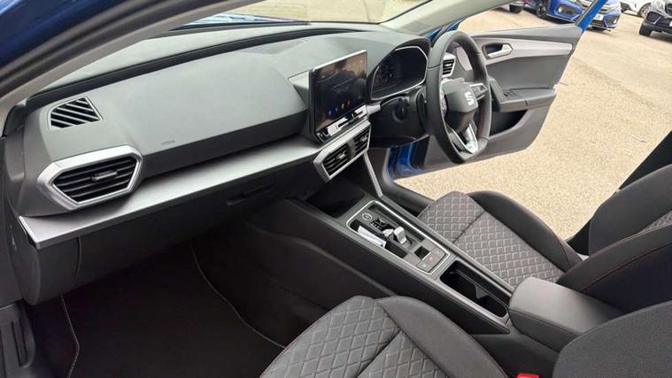 Digital cockpit, E-call, Four x USB Type C ports, Front assist with forward collision warning braking reaction to vehicles, pedestrians and cyclists, Full link smartphone integration with Mirror Link, wireless Apple CarPlay and wired Google Android Auto, Lane assist, Lockable tailgate, Park assist (inc front/rear parking sensors), Power assisted speed sensitive electro-mechanical steering, Rear view camera, RPM, trip computer, outside temp gauge, instrument light brightness, low fuel warning light, lights on reminder, gearshift indicator, SEAT drive profile with 4 modes (Eco/Normal/Sport/Individual), throttle response and gearshift mode, Service interval indicator, Start/stop system with regenerative braking, Sports suspension, XDS electronic differential lock and dynamic traction support, 7 speakers, Auxiliary input socket, Auto dimming rear view mirror, Body colour door handles, Body coloured bumpers, Cosmo grey exterior mirrors with integrated LED indicators, Dark tinted rear windows, Dynamic headlight range control, Electric front/rear windows, Electrically adjustable, heated and folding door mirrors, FR sports bumper, Illuminated front door sill, LED front fog lamps, LED Headlights with dynamic turn signals, LED tail lights and rear fog lights with rear coast to coast lighting, Matt black roof rails, Rear side wing doors, Rear wash/wipe, Separate daytime running light with automatic headlight control and coming home feature, Third brake light, Welcome light silhouette from exterior mirrors, Windshield wiper intermittent control with light/rain sensor, 12v power point in centre console, 3 seat bench in 2nd row, 60/40 split rear bench seat with armrest, Ambient lighting with glovebox, footwell and single monocolour, Driver/passenger manual seat height adjustment, Dust/pollen filter, Front and rear height adjustable headrests, Front and rear reading lights X 4, Front centre armrest, Front seatback storage pockets, Height/reach adjust steering wheel, ISOFIX points in outer rear seats with top tether anchorage points, Luggage tie-down hooks, Lumbar adjustment for front seats, Single front passenger seat, Sliding boot cover, Sunvisors with covered illuminated mirror, Three zone climate control, Two tone cloth upholstery, Media system plus with navigation - Leon, 3 point seatbelts on all rear seats, ABS, Brake control system - ESC and brake booster, Child proof door locks, Driver and front passenger airbags with front passenger airbag de-activation, front side and curtain airbags, Electronic parking brake, Extended safety system - seat belt tensioner, window closure and hazard lights, Hill hold control, Rear disc brakes, Seat belt reminder for front and rear seats, Tiredness recognition system, driver alert system, Tyre pressure monitoring system, Anti theft alarm system with interior monitoring in cab, backup horn and towing protection, KESSY Go (Keyless start), Locking wheel bolts, Wireless phone charging, Chrome interior detailing, 17" Dynamic Bi-spoke alloy wheels with 91W tyres, Tool kit,
