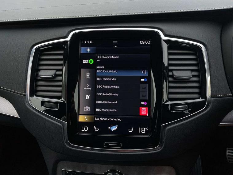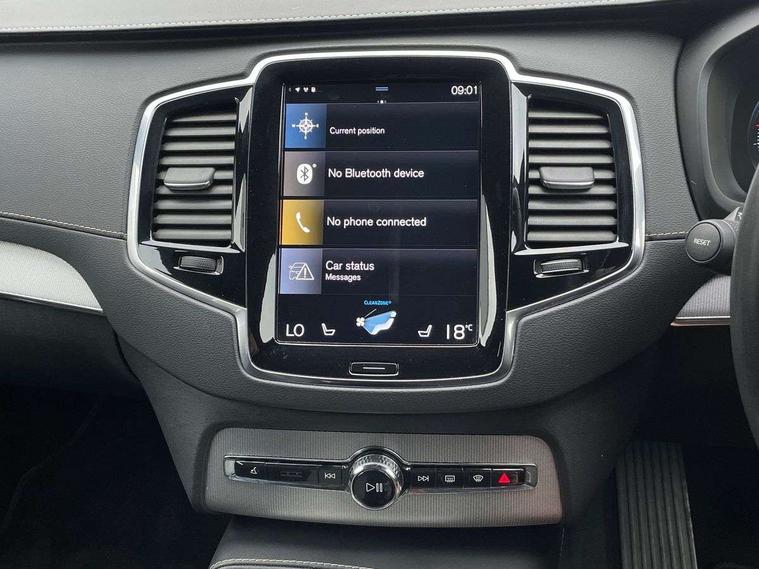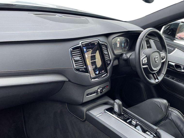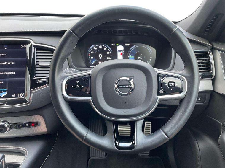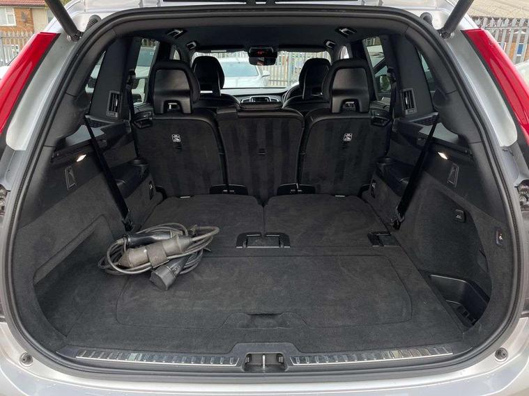 12.3" Active TFT crystal driver's instrument display, 9" centre console portrait touch screen, Adjustable steering wheel force, Bluetooth hands free telephone connection, Drive mode settings, Driver alert control with lane keeping aid, Driver assistance (pilot assist and adaptive cruise control), Driver awareness - Blind spot information system with steer assist, cross traffic alert with autobrake and rear collision warning and mitigation, Front and rear park assist, Handsfree power tailgate opening and closing, Oncoming Lane Mitigation, Sensus navigation with European mapping and traffic information, Service interval indicator, Speed limiter, Speed sensitive steering, Trip computer, Voice activated control for key functions, Volvo on call, 7m Charge Cable with 3 Pin Plug, 7m Type 2/mode 3 charge cable, 8 speed automatic transmission with start/stop + manual change functions, All wheel drive system, Electric rear axle drive, Lithium-ion battery, Recharging port located in nearside front wing, Touring chassis, DAB Radio (Digital Audio Broadcasting), Steering wheel audio controls, Steering wheel remote infotainment controls, Adaptive brake lights with high level LED brake lights, Auto dimming interior + exterior mirrors, Automatic headlight levelling system, Automatic LED Headlights + Active high beam incorporating daytime running lights, Body colour bumpers, Dark tinted windows for rear side windows and cargo area, Dual integrated exhaust pipes with high gloss black surround, Electric folding and heated door mirrors, Front and rear power windows, Heated washer nozzles, High gloss black Deco lower front bumper, High gloss black door mirrors, High gloss black lower rear valance, High gloss black mesh front grille with surround, High gloss black window surround, Home safe and approach lighting, Integrated roof rails in high gloss black, Puddle lights, Rain sensor with automatic windscreen wiper activation, Rear wash/wipe with intermittent wipe setting, Roof antenna, Roof spoiler, Visible VIN plate, 12V socket front tunnel console, rear passenger compartment and cargo area, 4 Zone electronic climate control + cooled glovebox, A-pillar parking ticket holder, Ambient door and instrument panel lighting, B Pillar ventilation, Bright metal luggage threshold, Cargo divider with grocery bag holder, Centre console cupholders and storage, Charcoal headlining, Driver's side lower dashboard storage compartment, Front and rear door pocket and front cupholder illumination, Front footwell and side step illumination, Front headrests, Front seat cushion extensions, Heated front seats, Height/reach adjustable steering column, Illuminated luggage compartment, Illuminated tailgate, Illuminated vanity mirrors + ticket holder, Illumination lockable glovebox compartment, Integrated sun curtains in rear doors, Load protection net, Lower dashboard, tunnel console, Lower door panel in blond, Multicolour theatre lighting, Outboard armrest with cupholder and storage for third row passengers, Power driver seat with multi directional lumbar support and memory for seat and exterior mirrors, Power folding 2nd row headrests, Power passenger seat with multi directional lumbar support and memory, Rear footwell and side step illumination, Rear headrests, Recharge aluminium tread plates, Semi automatic load cover, Sports floor mats, Sports leather gear knob, Sports pedals, Three 2nd row individual folding passenger seats with fore/aft adjustment, Two 3rd row individual folding passenger seats, Underfloor cargo storage, 7 three point seatbelts, City safety includes pedestrian, cyclist and large animal detection and front collision warning with full auto brake, Drivers knee airbag, Dual stage driver/passenger airbags, First aid kit, Front seats SIPS airbags, Hill descent control, Hill start assist, IC (Inflatable Curtains) - Full Length, Passenger airbag cut-off switch, Power parking brake with auto hold function, Road sign information display, Run off Road Mitigation, Run off Road Protection, Seatbelt reminder and pretensioners for all seats, SIPS (Side Impact Protection System), Slippery road and hazard light alert, Stability and Traction Control with Spin control, Engine Drag Control and Corner Traction Control, Tyre pressure monitoring system, Vehicle deceleration control with Anti-lock Brake System, Electronic Brake Distribution and Emergency Brake Assist, Warning triangle, WHIPS whiplash protection system - front, Anti-theft alarm including immobiliser/volume sensor + level sensor, Care key with user defined top speed, Key integrated remote control central locking + fuel flap with deadlocking system and auto open/close power windows, Keyless drive (includes keyless entry and keyless start) with remote tag, Locking wheel nuts, Private locking for glovebox and tailgate, Metal mesh inlays, Tailored Instrument Panel and Door Tops with Contrast Stitching, Tyre sealant kit + 12v compressor,