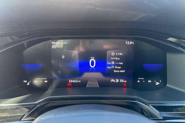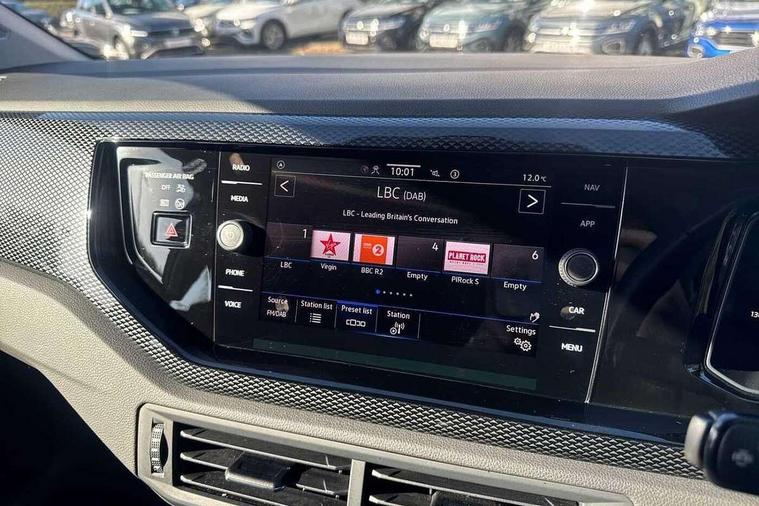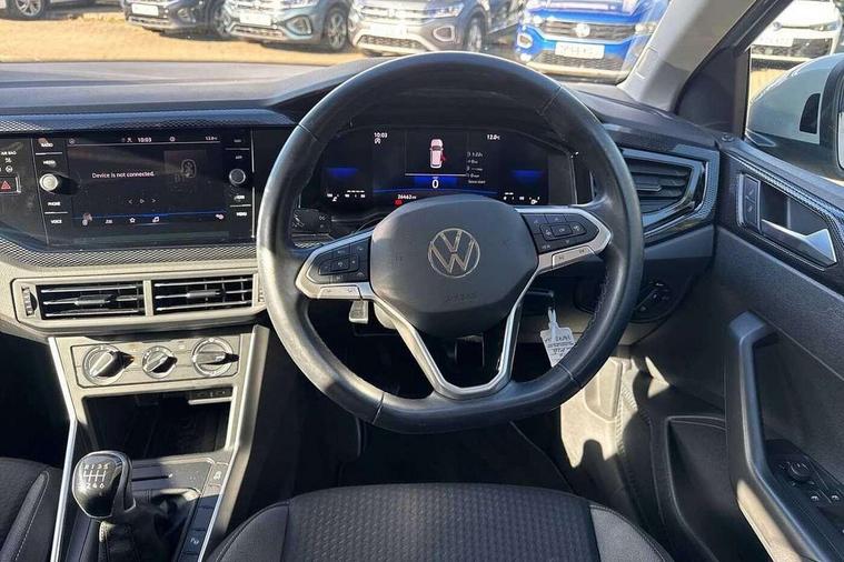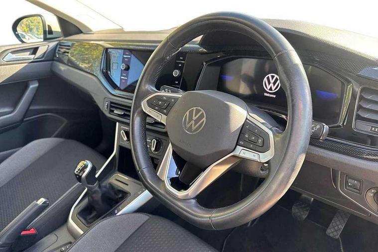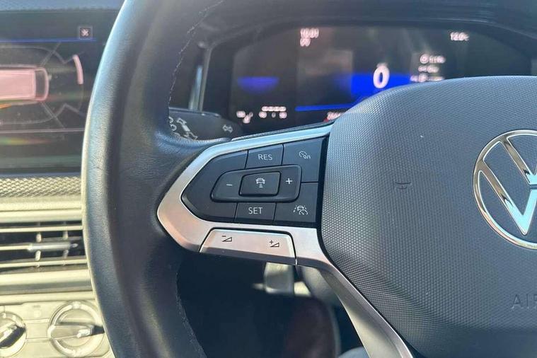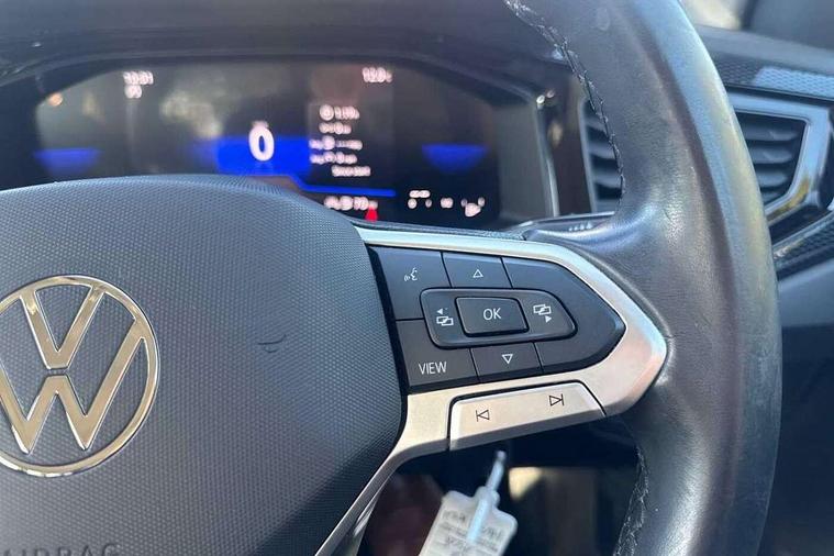 Driver alert system, e-Call (emergency call), Power Steering, Travel assist including emergency assist, Washer fluid level indicator, Wireless Charging including Bluetooth, Start-stop system with battery regeneration (recuperation - energy recovery during braking), WeConnect plus, Ambient lighting with logo projection, Aspherical driver's exterior mirror, Auto headlights, Body coloured bumpers, Body coloured exterior mirror housings and door handles, Electric windows, External USB type C socket and charging sockets, Front fog lamps with cornering function, Headlight range control, Heat insulating glass windscreen, LED headlamps, LED rear combination lamp, LED third brake light, Left convex exterior mirror, Power folding adjustable/heated exterior mirrors and front passenger exterior mirror lowering function, Rear fog light on one side, reversing light on both sides, Rear side wing doors, Rear wash/wipe with intermittent wipe setting, 'Slash/ Austin' Cloth upholstery, 12V socket in centre console, 2 front reading lights, 3 rear head restraints, 3 seat bench in 2nd row, Black carpets, Child seat anchor for child seat system i-Size, 2x top tether and child seat anchor in front on front passenger side, Door and side trim panels in titan black, Driver and front passenger seat height adjustment, Front centre armrest, Handbrake lever handle in leather, Height and reach adjustable steering wheel, Leather trimmed gear knob, Leather wrapped multifunction steering wheel, Luggage compartment floor, Luggage compartment light, Lumbar support for driver's and front passengers seat, Seat covers in titanium black, Single front passenger seat, Split folding backrest with centre armrest and unsplit rear seat bench, Storage compartment under front seats, Sun visors with illuminated vanity mirrors, Chrome Package - Taigo, Drivers assistance pack - Taigo, Light and Sight pack including High beam assist - Taigo, 2 x 3-point seatbelts/outer rear seats with ECE label, 3-point seat belts in front with pretensioner and height adjustment, 3-point seatbelt for centre rear seat, Driver and front passenger airbags with front passenger airbag de-activation, front side and curtain airbags, Driver and front passenger safety-optimised head restraints, Electronic stability control, Extended and predictive pedestrian/ cyclist protection, Front and rear disc brakes, Front curtain and side airbags with center airbag, Hill start assist, Manual rear child locks, Single tone horn, Tyre pressure loss indicator, Anti-theft alarm system with interior monitoring, backup horn, and towing protection, Anti-theft wheel bolts, Lava stone black gloss/matt decorative inserts in dash and front door panels, Low rolling resistance tyres,