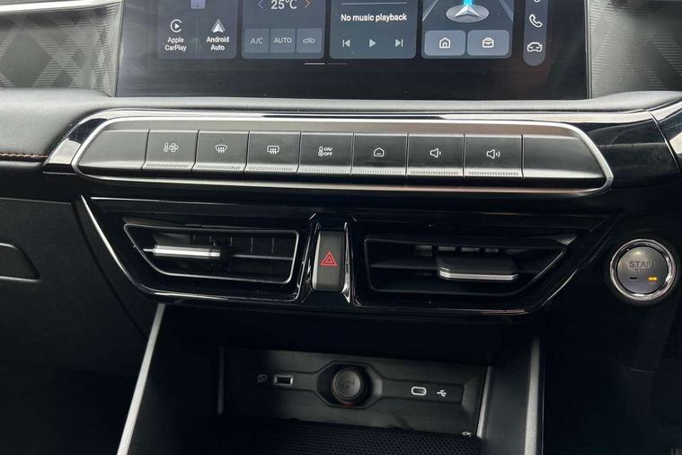 10.25" Colour touchscreen, 360 degree camera with rear sensor, 7" Driver display, Adaptive cruise control, Android Auto, Apple car play, Blind zone detection with lane change assist, Bluetooth connection, Driver attention alert system, E-call, Forward collision warning, Intelligent speed limit assist, Lane keep assist system (LAS) with Lane departure warning system (LDWS), PAS, Rear cross traffic alert, Reverse parking sensors, Satellite navigation with speed limit recognition, Traffic jam assist, Trip computer, 1 x USB port at rear for charging only, 6 speaker audio system, DAB audio, Radio, MP3 and AUX/USB, USB ports (2x front, 1x rear), Auto dimming rear view mirror, Automatic headlamps, Body colour bumpers, Body coloured door handles, Body coloured electrically adjustable heated door mirrors, Follow me home headlights, Front and rear electric windows with driver's one-touch up/down, Intelligent headlamp control, LED centre brake light, LED daytime running lights, LED projector headlights, Rain sensor wiper, Rear privacy glass, Rear side wing doors, Rear window defogger, Rear wiper, 12V socket, 3 seat bench in 2nd row, Air conditioning, Boot space lamp, Driver 6-way adjustable seat, Front centre armrest with storage, Front cup holders, Front headrests, Front interior courtesy light with time delay and reading lights, Front passenger seat map pocket, Front sun visors with driver and passenger mirrors, Heated front seats, Heated steering wheel, Leather style with cloth inserts upholstery, Multifunction steering wheel, One piece folding rear seat, Passenger 4-way adjustable seat, Single front passenger seat, Tilt adjustable steering column, 2 x adjustable rear head rests, 3x3 point rear seatbelts, ABS/EBD, Active emergency braking with pedestrian/Bicycle detection, Drivers seatbelt reminder, Dual front airbags, EBA, Electric parking brake with autohold, ESP, Front and rear passenger seat belt reminder, Front passenger airbag deactivation switch, Front seatbelts (3-point + pretensioner + load limiter), Front side airbags, Hill start assist, Rear child locks, Rear ISOFIX child-seat upper tether & lower anchor, Side curtain airbags, Tyre pressure monitoring system, Alarm & Engine Immobiliser, Keyless entry, Remote Central Locking with Fold-away Key, 16" Atlas alloy wheel, Tyre repair kit,