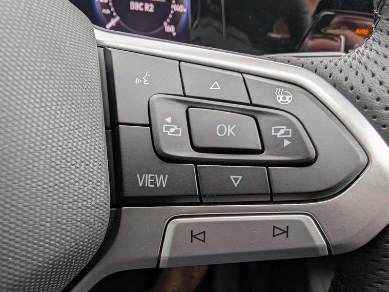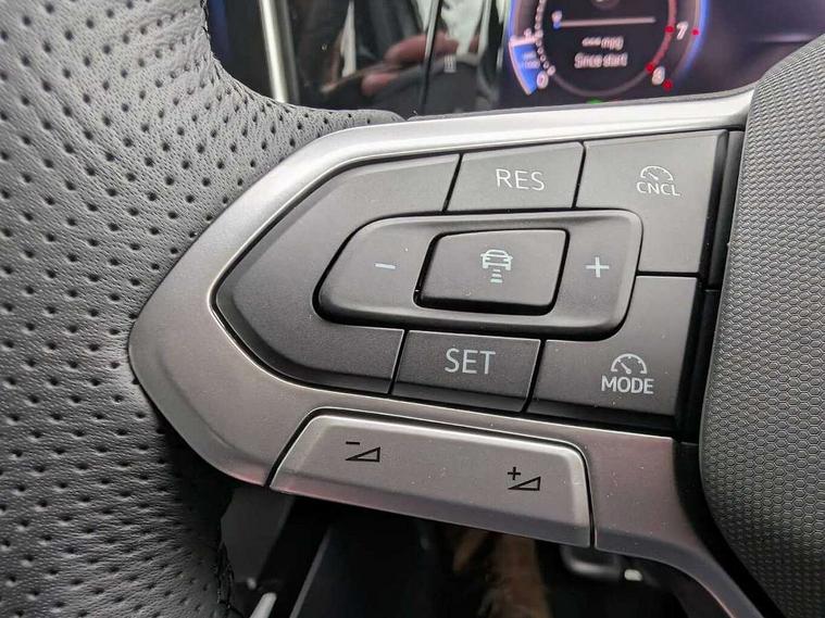 Activated carbon canister, Adaptive cruise control (ACC), Advanced driver attention and drowsiness monitor, Dynamic road sign display, Dynamic steering, E-Sim card for online connectivity, eCall emergency call system, Multi-color Digital cockpit pro, selection of different info profile possible, Multifunction front facing camera for distance control, Navigation system, Oncoming vehicle braking when turning including swerve support, Speed limiter, Speedo, rev counter, electronic odometer, trip, service interval display, exterior temperature and fuel gauge, Traffic jam assist, Voice enhancer and voice control, Warning signal and warning light for front and rear seatbelts not fastened, We connect plus preparation, We connect preparation, Wireless app connect, Hybrid propulsion system, Petrol Particulate Filter, Start-stop system with battery regeneration (recuperation - energy recovery during braking), XDS electronic differential lock for improved traction and handling, 2 USB C ports in front, 2 USB charging sockets on the centre console in the rear charging capacity upto 45W, Digital radio reception (DAB), Diversity antenna for FM reception, Gaming platform via car app, Infotainment system with 12.9" display, Mobile phone interface with inductive charging feature, 3rd brake light, Automatic headlamp activation with Coming home and Leaving home feature, Body colored bumpers in R-Line style, Body colour door handles, Exterior mirrors convex on the left and aspherical on the right, Front and rear electric windows, Heat insulating windshield made of laminated glass, LED separate daytime running light, Rear exhaust tailpipe, Rear fog light on one side and reversing lights on both sides, Rear side wing doors, Rear windscreen washer and wiper with interval delay, Remote electrically foldable door mirrors, puddle lights and reverse activated passenger's door mirror, Welcome light with surround lighting, 12V socket in front centre console, 12V socket in luggage compartment, 3 rear head restraints, 3 seat bench in 2nd row, Ambient lighting with 30 colour including LED light unit in front footwell with selectable light colour, Black roof lining, Brushed stainless steel pedals, Chrome plated radiator grille inserts, air vent surrounds and light switch surrounds, Door insert, side trim panel and arm support in leatherette, Front + rear black carpet mats, Front centre armrest, Front seat lumbar support adjuster, Integrated front head restraints, ISOFIX anchors for child seats on outer rear bench seats and on front passanger seat compatible for i-Size, Luggage compartment lighting, Manual height adjustable front passenger seat, Manually height adjustable driver seat, Plastic gear knob, Premium sports seats in front, Rear cupholder and loadthough, Sardegna cloth upholstery with front and outer rear seats Art Velour inner sides of bolsters, Single front passenger seat, Split folding backrest with centre armrest and unsplit rear seat bench, Sun visors with illuminated vanity mirrors, Titanium black instrument panel, 3 point height adj front seatbelts + pretensioners, 3 rear three point seatbelts, ABS, Autonomous emergency braking front assist with pedestrian and cyclist monitoring, Child locks on rear doors, Driver and front passenger airbag with front passenger airbag deactivation, Electronic parking brake with auto hold, ESC (Electronic Stability Control), Extended pedestrian protection measures, Hill start assist, Rear disc brakes, Two tone horn, Tyre pressure loss indicator, Volkswagen roadside assistance, Anti theft wheel bolts, Preparation for alcohol interlock, Decorative inserts carbon grey for dashboard and front door trim panels, Tool kit for tyre mobility set, Tyre mobility kit Includes 12V compressor and tyre sealant,