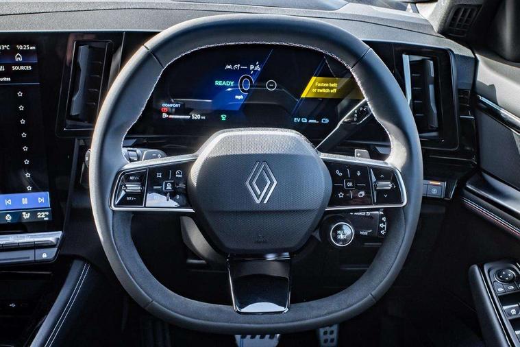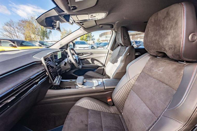 12.3" driver information display cluster, 4Control - 4 wheel steering technology, 9.3" head-up display, Blind spot warning and rear detection, Bluetooth, Digital rear view camera, Driver attention alert system, Electric power boot opening, Emergency lane keep assist including solid line, oncoming traffic and road edge detection, Engine start button, Exterior temperature display, Front and rear park assist with front, rear and side parking sensors, Intelligent contextual adaptive cruise control, Internet access, Lane centering assist, Lane change warning, Lane departure warning, Lane keeping assistance, Miles per hour configuration, MULTI-SENSE driving modes (eco, comfort, sport and personal), My safety switch: shortcut to personalise configuration of driving aids, Navigation system with build in google maps, PAS, Qrescue, Renault automatic emergency assist, Safe stopping distance warning, Service interval indicator, Speed alert, Speed limiter, Traffic sign recognition, Trip computer, Voice control for navigation system with built in google assistant, Wireless apple car play/android Auto, Wireless phone charger, 12" open R link screen with built-in Google, Arkamys audio system with 6 speakers, DAB radio, Wi-Fi hot spot, 3rd brake light, Automatic headlights + automatic windscreen wipers, Automatic high / low beam, Black door mirrors, Body colour spoiler, Boot alloy kicking plate (trim on boot lip), Bumper grill background appears blue, Electric heated folding door mirrors, Esprit alpine exterior styling, Frameless auto-dimming rear view mirror with brightness adapt and rain sensor, Front and rear electric windows with one touch, Heated rear window, Heated windscreen, LED daytime running lights, LED rear lights with mirage effect, Matrix LED vision headlights, Privacy glass, Rear side wing doors, Rear wiper, Shark fin antenna, 12v socket in front, 2 front and 2 rear touch LED interior lighting, 3 rear headrests, 3 seat bench in 2nd row, 40:20:40 split folding rear bench seat, 6 way electric driver seats with 2 way lumbar and massage function, 6 way electric passenger seat with 2 way lumbar, Air purifier, Alcantara synthetic leather/fabric upholstery, Aluminium pedals, Automatic dual zone climate control, Black carpets, Blue trim within door pockets, Esprit alpine interior styling, Front headrests, Heated driver and front passenger seats, Heated steering wheel, Ingenious rear armrest with swivelling arms/foldout stands for devices and USB-C charging ports, Interior ambient lighting, ISOFIX child seat fixing points on rear outermost seats, Luggage compartment light, Manual height and depth adjustable steering wheel, Multifunction steering wheel, Paddle shift levers for regenerative braking, Single front passenger seat, Sliding centre console armrest with storage, Synthetic leather sport steering wheel with triple topstitching and alcantara finish, 3 point seatbelts on all rear seats, ABS, Active emergency braking system - Urban, pedestrian/cyclist with junction function, Adjustable driver and passenger safety seat belts, Approaching vehicle sound for pedestrians, Blue trim seatbelts on front seats and outermost rear, Collision avoidance braking, Driver and front passenger airbags, Driver knee airbag, Electronic brake distribution, Electronic parking brake with auto hold function, Electronic Stability Programme (ESP), Emergency brake assist, Front thorax airbags, Hill start assist and trailer stability assist, Manual rear child locks, Multi-Collision braking, Occupant safe exit, Passenger airbag deactivation system, Passenger knee airbag, Rear active emergency braking system, Rear traffic alert and rear pedestrian alert with rear automatic braking, Row 1 and 2 curtain airbags, Seatbelt load limiter, Seatbelt pretensioners, Seatbelt reminder, Side airbags, Tyre pressure warning light, Alarm, Hands free key card with Keyless access and start, Immobiliser, Locking wheel nuts, Remote central locking, Super locking system, 20" Castellet black diamond-cut esprit Alpine alloy wheels with smoked varnish,