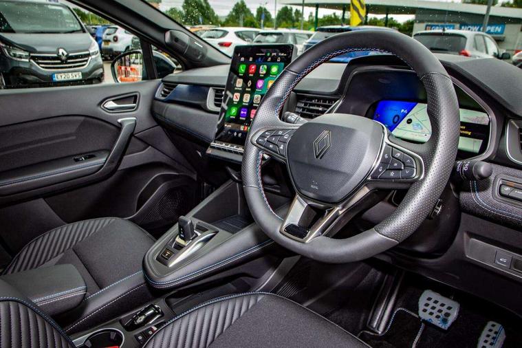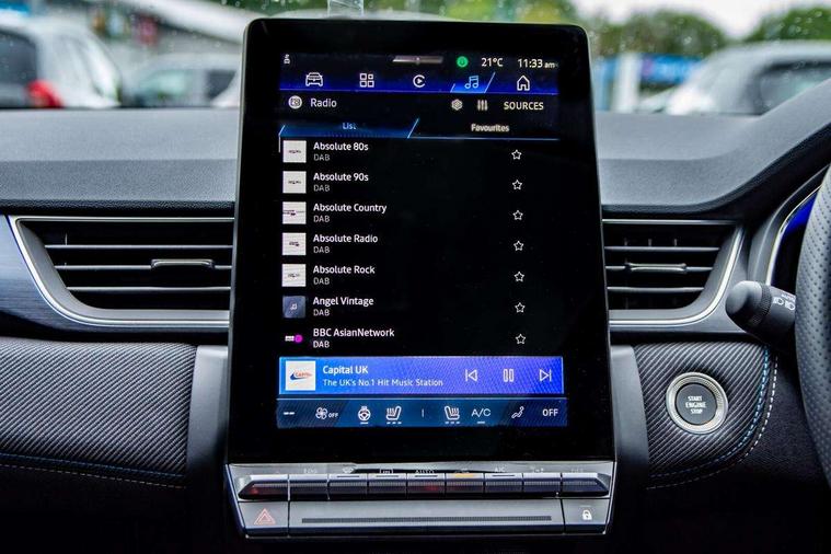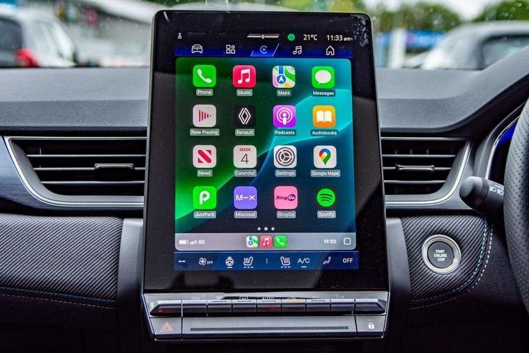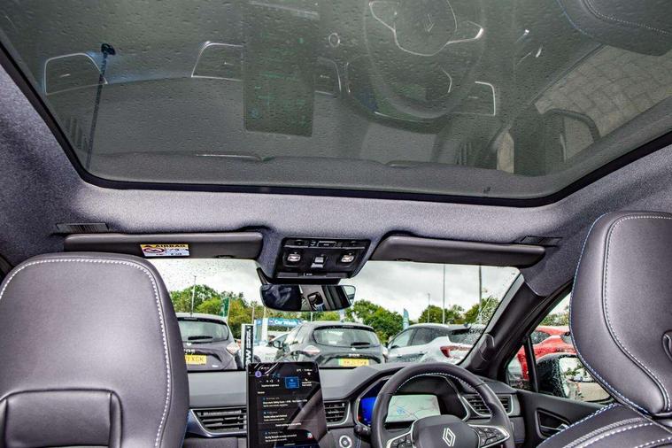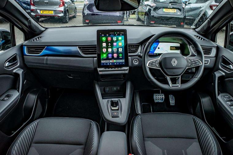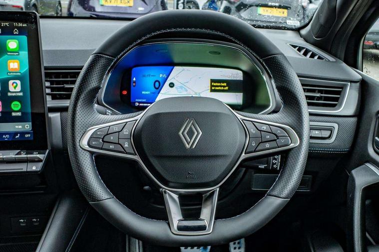 10.25" digital driver display, 10.4" OpenR link touchscreen with with built in Google Automotive Services, 9-speaker premium Harman Kardon audio system and navigation, 360 around view 3D camera, Adaptive cruise control with speed limiter, Blind spot warning and rear detection, Driver attention alert system, Eco mode driving function, Engine start button, Exterior temperature display, Front, rear and side parking sensors, Front/rear detection with emergency lane keep assist incl. solid line, oncoming traffic and road edge detection, Gear change indicator, Hands free parking, Internet access/wi-fi hotspot, Lane centering assist, Lane change warning, Lane departure warning, My safety switch - ability to personalise ADAS features at press of a button, PAS, Performance mode selector - multisense 4 driving modes (sport, comfort, perso and eco), Power hands-free tailgate opening, Qrescue, Rear cross traffic/pedestrian alert with rear braking assitance, Renault automatic emergency assist, Service interval indicator, Traffic sign recognition with overspeed prevention, Trip computer, Voice control for navigation system with built in google assistant, Wifi smartphone integration compatible with Apple CarPlay and Android Auto, Wireless phone charger, 2 front and 2 rear USB-C ports, DAB radio with Bluetooth, Automatic headlights, Automatic high / low beam, Automatic windscreen wipers with rain sensor, Dark tinted rear windows and tailgate, Electric adjustable/heated/auto folding door mirrors, Esprit alpine exterior styling, Frameless auto dimming rear view mirror, Front and rear electric windows with driver window one touch facility and anti pitch function, Front matte grey and rear skid plates, Full LED front and rear lights, Gloss black window surround, Heated rear window, LED daytime running lights, LED rear fog lights, LED third brake light, Matte grey F1 blade, Radiator grille with 3D graphics in black upper part with grey graphics and body tone lower part, Rear side wing doors, Rear wiper, Shark fin antenna, Solarbay opacifying panoramic sunroof, Twin reversing lights, 12v power outlet - front, 2 front roof LED lights and central rear rooflight with 3 reading LED lights, 3 seat bench in 2nd row, 48 ambient lighting colours, Aluminium sports pedals, Automatic air conditioning with one touch quick demist function and air quality regulator, Driver and front passenger seat with electric height adjustment, Esprit alpine interior styling, Flying console with central storage, sliding armrest and 2 rear air vents, Front and rear head restraints, Front seats manual lumbar adjustment, Heated front seats, Heated synthetic leather steering wheel, Height and depth adjustable steering wheel, ISOFIX child seat fixing points on rear outermost seats, Luggage compartment light, Modular boot floor, Multifunctional steering wheel, Rear seats - 1/3:2/3 foldable sliding bench, Recycled jacquard madama fabric upholstery, Single front passenger seat, Sunvisor with mirror and light, 3x3 point rear seatbelts, Abs with emergency brake assist, Active emergency braking system - Urban and pedestrian/cyclist, Adjustable driver and passenger safety seat belts, Approaching vehicle sound for pedestrians, Collision avoidance braking, Distance warning alert, Driver and front passenger and 3 rear passengers seatbelt reminder, Driver and front passenger, side, head and curtain airbags, Electronic parking brake with auto hold function, Electronic Stability Programme, Front passenger airbag deactivation, Front seatbelt pretensioners, Hill start assist, Occupant safe exit, Rear window and door child locking function, Tyre pressure warning light, Alarm/immobiliser, Hands free keycard with Keyless access and start, Locking wheel nuts, Remote central locking, Super locking system, Brushed blue decorative upper strip, Lower textile strip on dashboard with red, white and blue flag, 19" Esprit alpine elixir alloys wheels,