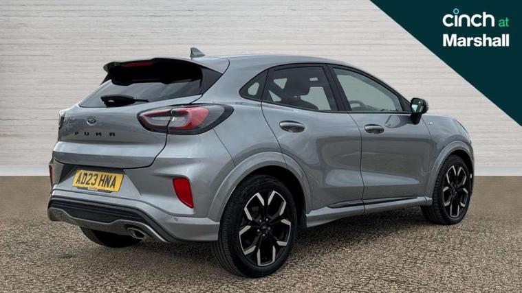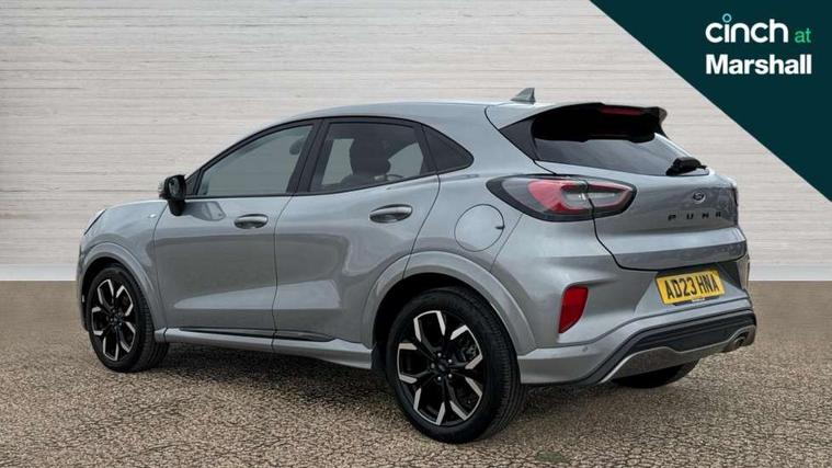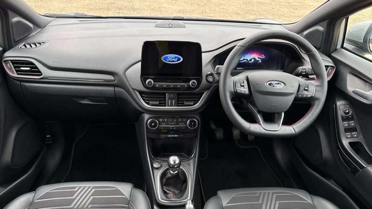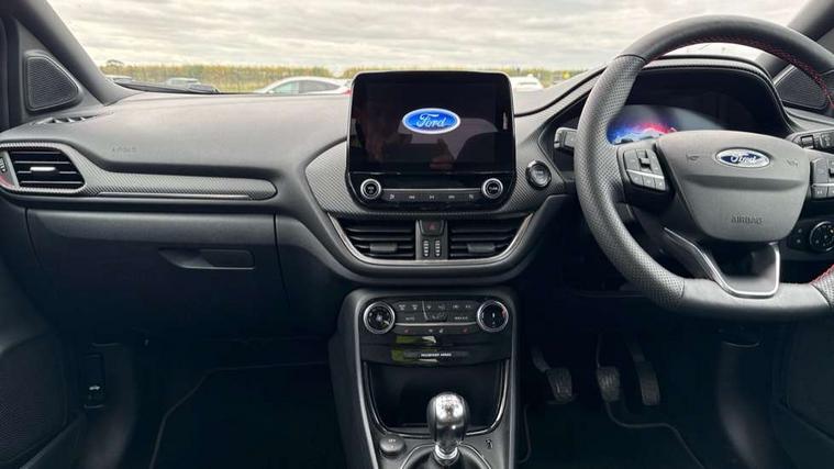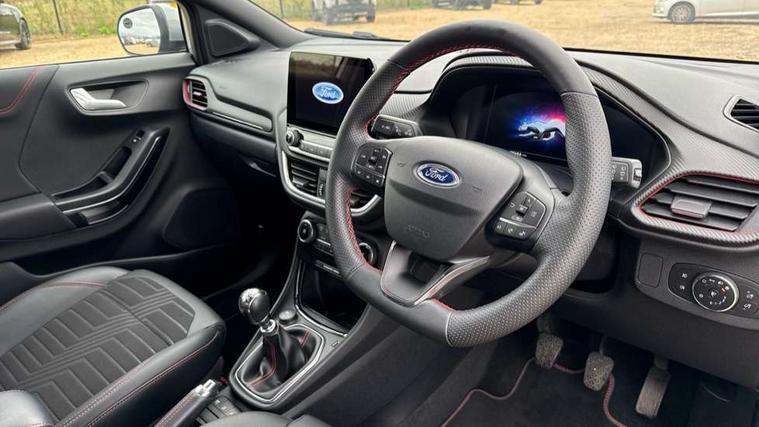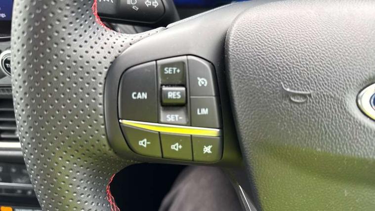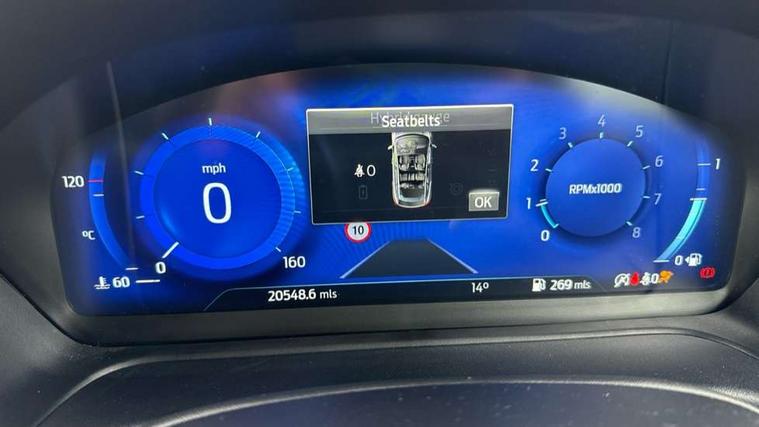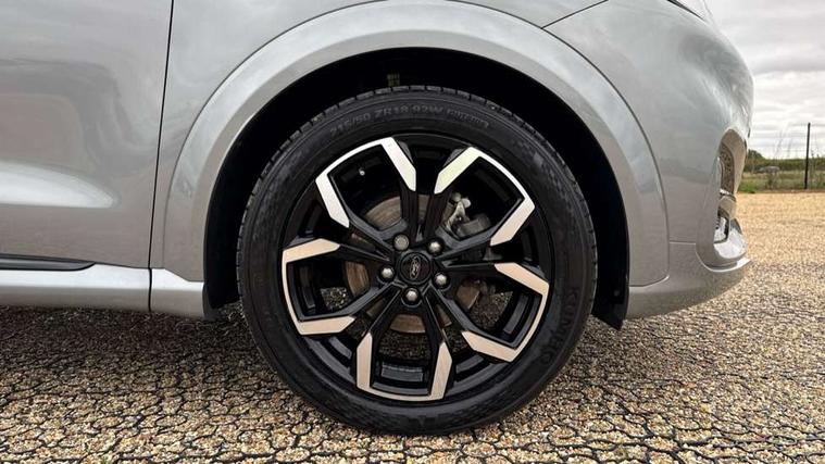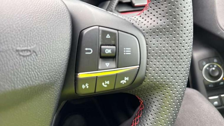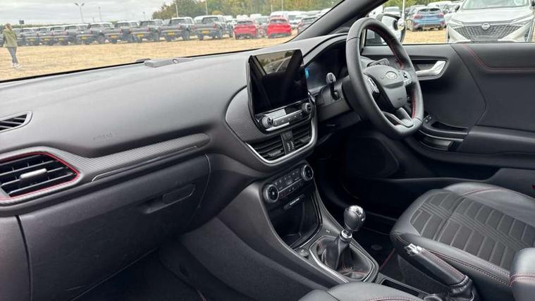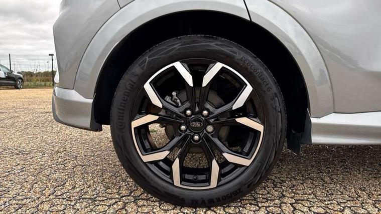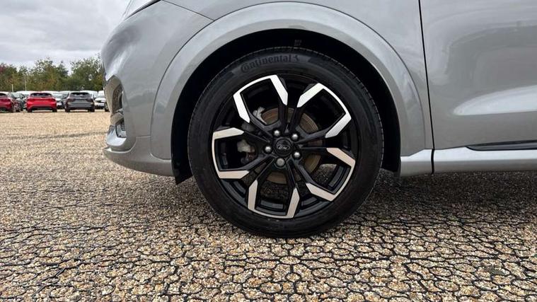 Driver impairment monitor, Emergency call service, Ford easy fuel, Full digital 12.3" instrument cluster, Lane keeping aid with lane departure warning, Power assist steering, Power start button, Rear parking sensor, Selectable drive modes(Normal, sport, Eco, trail, slippery), Speed sign recognition, Sport suspension, Automatic headlights with auto high beam, Automatic rain sensing wipers, Front fog lamps, LED daytime running lights, LED rear lamps, Power foldable heated door mirrors with puddle lamps, Privacy glass to side rear windows and tailgate glass, Quickclear heated windscreen, Rear side wing doors, Rear wiper, ST-Line body styling kit with unique grille and large body colour rear spoiler, Third brake light, 3 seat bench in 2nd row, Centre console with armrest and stowage, Ford megabox extended bootspace, Front and rear head restraints, Front floor mats, Manual 4 way driver seat adjust with lumbar adjustment, Manual 4 way passenger seat with lumbar seat adjustment, Sensico partial premium upholstery, Single front passenger seat, ST-Line flat bottomed sensico leather steering wheel with leather handbrake and aluminium gear knob, Wireless charging pad with electronic air temperature control (EATC), B&O Premium Audio system + Ford SYNC 3 navigation pack - Puma, 3 rear seatbelts, Child safety lock, Electronic stability control (ESC) and hill start assist, Pedestrian/cyclist detection & post-collision braking, Pre collision assist system, Tyre pressure monitoring system (TPMS), Thatcham alarm, Carbon look interior deco spears,
