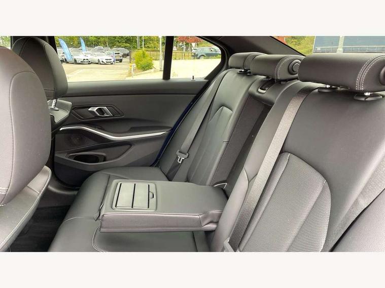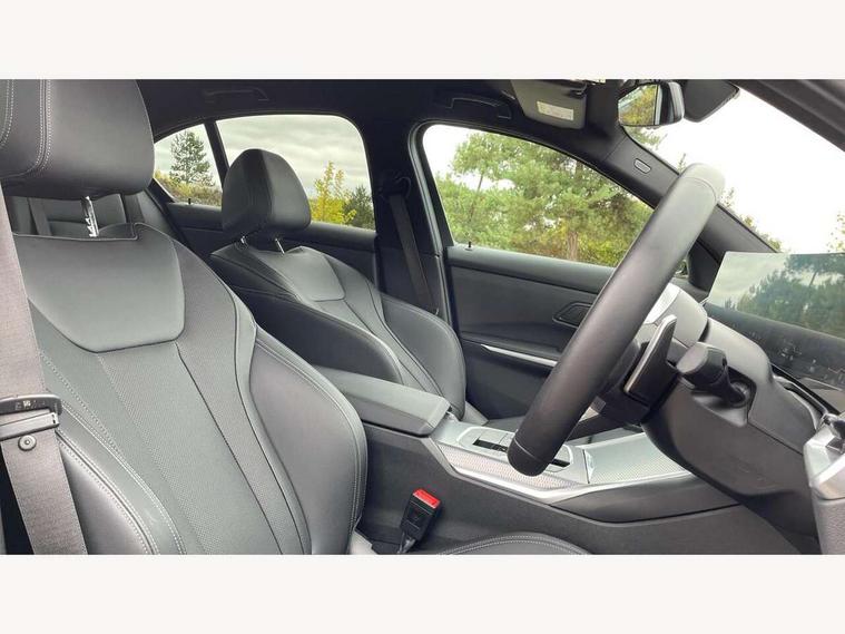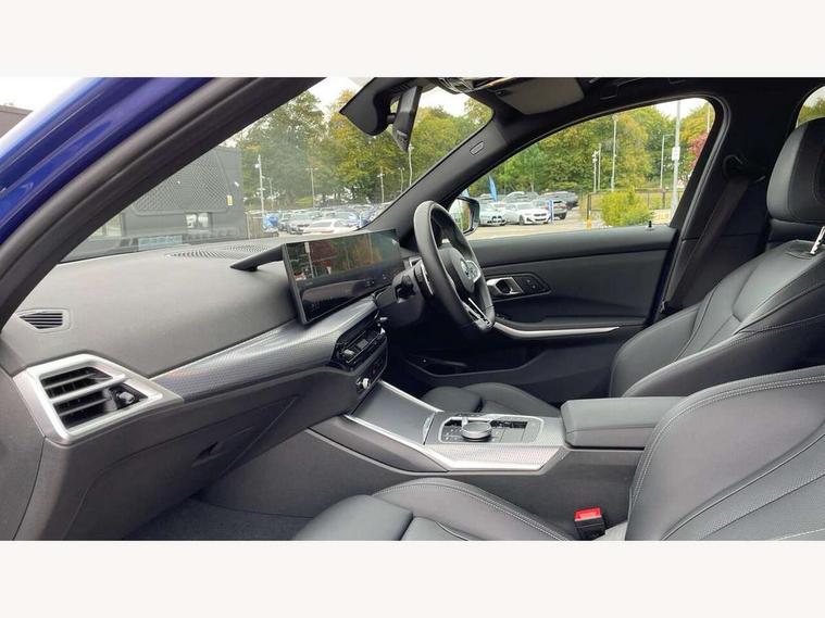 Active guard plus, Attentiveness assist, Automatic Start/stop button, Bluetooth Wi-Fi interface, BMW iDrive, BMW Teleservices, ConnectedDrive Services - last state call, Live cockpit plus with Navigation + 12.3" instrument display + 14.9" display, Intelligent voice assist, 2 USB, 4G LTE connect, Oil sensor for level and grade, Personal e-SIM, Shifting point display, Double joint spring strut front axle, Fuel tank breather system, Public mode 3 professional fast charging cable with 5m length, Steptronic Sport automatic transmission with steering wheel mounted gearshift paddles launch control and xtreme drive lever control, DAB tuner, 3rd brake light, Auto dimming rear view mirror, Automatic headlight beam throw control with load dependent regulating reaction, dynamic compensation of braking dive and acceleration squat, Bi-LED Low and high beam headlights, BMW emblem, engine compartment lid and tailgate, Body colour roof fin, Door sill strips, Electric windows - front and rear, with open/close fingertip control, anti-trap facility and comfort closing, Fading support, Follow me home headlight function, Front and rear bumper system with replaceable deformation elements, Front apron plastic in body colour, Fuel filler flap - right rear in body colour, Heat protection glazing on front windows and windscreen, Heated washer jets, High gloss chrome kidney frame with high gloss black kidney struts, LED daytime running lights, LED rear lights, LED turn indicator, Licence plate panel integrated into front bumper and tailgate, M high gloss shadow line exterior trim, Matt black B-pillar finsher, Matt black window recess cover, Model designation on right side of tailgate, One piece front bumper cover including towing eye cover in body colour, Rain sensor with automatic headlight activation, Rear boot, Rear side wing doors, Reversing lights, Side frame decorative moulding black matt, Trailer stabilisation logic, Visible exhaust tailpipe finisher, Welcome lights in interior and door handle area, 12V power socket in front storage compartment, 2 front cupholder in centre console with clamping elements and matt black inlay, 3 seat bench in 2nd row, 3 spoke M Sport multifunction flat bottom leather steering wheel, 3 zone automatic air conditioning, 40:20:40 split folding rear seat with loading system, Anthracite headlining, Armrest integrated in front and rear door trim + front centre console armrest, Battery in luggage compartment, BMW ID, Cruise control operation in steering wheel, Driving experience mode switch, Folding rear centre armrest with 2 cupholders, Front and rear headrests, Front and rear velour floor mats, Front reading light, Heated front seats, Height adjustable mechanically and infinitely variable steering column, Illuminated armrest storage compartment, Illuminated glove compartment, Illuminated luggage compartment, Lashing eyelets in luggage compartment, Single front passenger seat, Sunvisors with illuminated vanity mirrors and ticket pocket, Toolkit located in luggage compartment, Connected pack professional - 3 Series Saloon/Touring, Interior and exterior mirror pack - 3 Series Touring/Saloon, M sport exterior styling pack - 3 Series Saloon/Touring, Parking assistant pack - 3 Series, 3x3 point rear seatbelts, BMW emergency call, Child locks on rear doors, Crash sensor activating of airbags, Unlocking doors, hazard warning lights, interior light, safety battery terminal, Drive-off assistant, Driver and front passenger with seat occupancy detection for driver's and passenger side, Driver and passenger side airbags, body protection at side and airbags deploy from seat backrests, Dry braking, Dynamic brake control, Dynamic stability control + (DSC+) - Anti-lock Braking System (ABS) with brake assist and cornering brake control + Automatic Stability Control (ASC), Dynamic Traction Control - DTC, Electric parking brake including automatic hold function and automatic release of the parking brake when driving off, Electronic differential lock control (EDLC), Front airbag deactivation, Front airbags for driver and front passenger, Head airbags in 1st and 2nd row, head protection at side, curtain airbags open from headliner above 1st and 2nd row, Plastic fuel tank, Side impact protection, Tyre pressure sensors, Ventilated front and rear disc brakes, Warning triangle and first aid kit, Alarm system, Centre lock switch, Closing system with central locking, Electronic vehicle immobiliser, Locking wheel bolts,