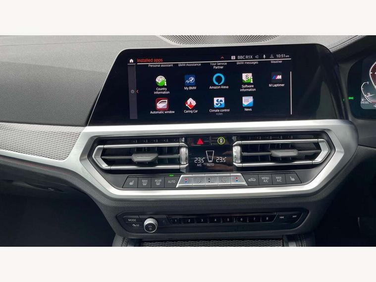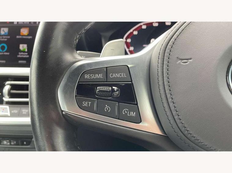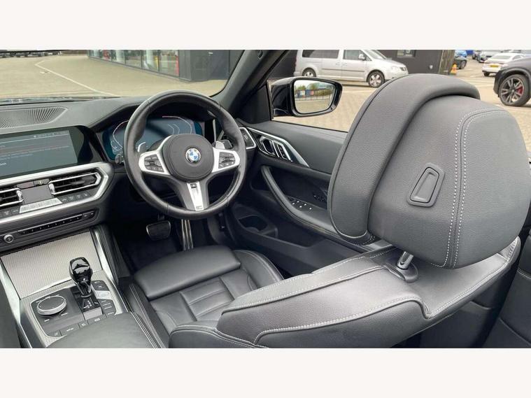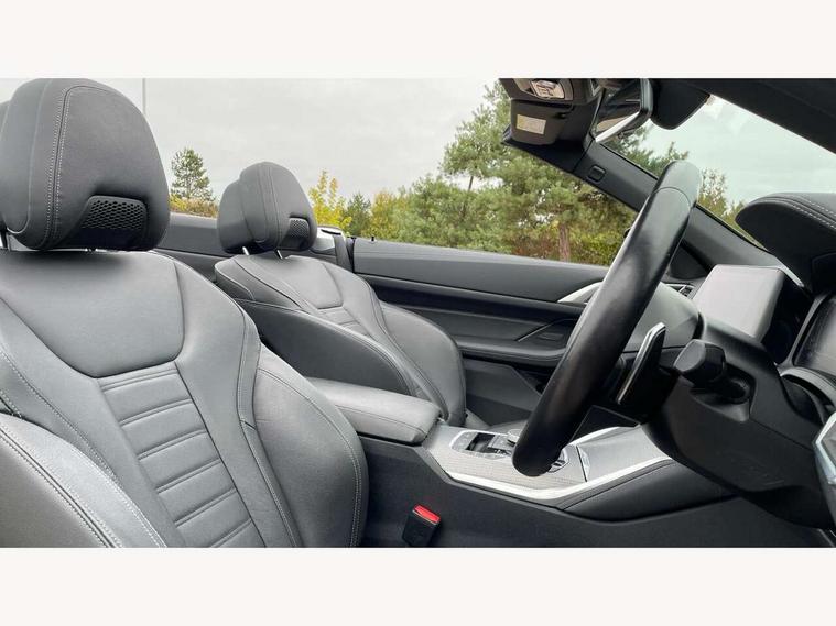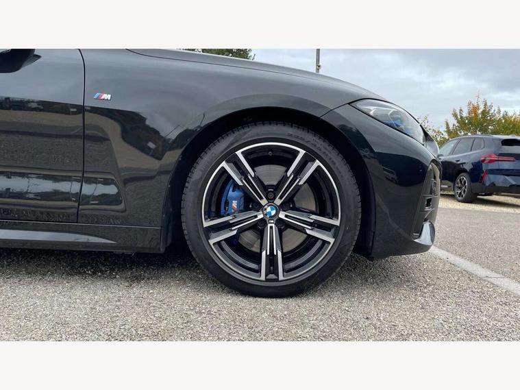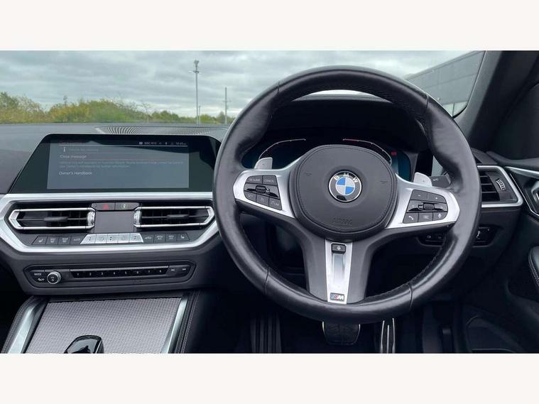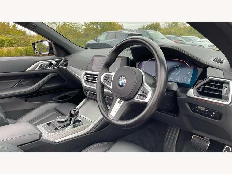 Active guard plus, Attentiveness assist, Auto start-stop, BMW ConnectedDrive online services, BMW iDrive controller on centre console, BMW Live Cockpit Professional Nav with 12.3" instrument display + 10.25" display, Intelligent Voice Assist, BMW OS 7, HDD, 2USB, 4G LTE connect, BMW service history, BMW Teleservices, Brake pad wear indicator in front and rear, Check Control warning system for monitoring of lights and door/luggage compartment open warning, Condition based service, Cruise control with speed limit function, Electric power steering with Servotronic steering optimised at all speed ranges, Gearshift time display in manual mode, Instrument cluster with speedometer with mph readout, tachometer, fuel gauge and oil temperature gauge, Integrated owners handbook, Oil sensor for level and grade, warning by check control system, On board computer - average speed, fuel consumption, outside temp display with acoustic warning, clock/date, service interval, odometer/trip meter, Optimum shift indicator, Run flat indicator, Shifting point display, Variable sport steering, 48V Mild hybrid technology, 8 speed automatic steptronic transmission with gearshift paddles, Balanced 50/50 weight distribution, Diesel particulate filter, Double joint spring strut front axle, Drive performance control - ECO PRO, comfort and sport modes, Incorrect fuelling protection, Low centre of gravity, M sport suspension, Stroke dependent dampers, 2x USB Type C ports in front centre console for charging and data transfer, 2x USB Type C ports in rear centre console for charging, DAB tuner, Electronic service booklet, Acoustic glazing, Automatic headlight beam throw control with load dependent regulating reaction, dynamic compensation of braking dive and acceleration squat, Automatic windscreen wipers and automatic headlight, Automatically dimming electrochromatic rear view mirror, BMW emblem on engine compartment lid and tailgate, BMW kidney grille with mesh grille front side of the nuggets in matt aluminium and frame in chrome high gloss, Body colour fuel filler flap, Body colour roof fin, Brushed aluminium inserts in the front door sill finishers with BMW designation, Door sill strips, Dynamic brake lights, Electric windows - front and rear, with open/close fingertip control, anti trap facility and comfort closing function all round, Exterior mirrors - electrically folding with anti-dazzle, Fading support, Follow me home headlights, Front and rear bumper system, Front apron plastic in body colour, Green tinted heat protection glazing, High gloss shadow line exterior trim, Illuminated bow type door handles in body colour drivers side with door lock, Interior rear view electrochromatic mirror with automatic anti dazzle function, LED daytime running lights, LED front fog lights, LED front indicators, Licence plate panel integrated into front bumper and tailgate, Lightweight engineering, M designation on front side panels, left and right, Model designation on right side of tailgate, One piece front bumper cover including towing eye cover in body colour, Preparation for high beam assistant, Rear boot, Reversing light, Side frame decorative moulding black matt, Third brake light, Two part LED tailights in L-shape with components in smoked glass, brake light, LED turn indicator and rear fog light, Visible exhaust tailpipe finisher, Visible VIN plate, Welcome lights in interior and door handle area, Widened track and increased camber values for max transverse dynamics, agility and steering precision, Window recess cover black high gloss, Windscreen wipers with integrated heated washing jets, 12V power socket in front centre console, 2 2nd row folding seats, 2 front cupholder in centre console with clamping elements and matt black inlay, 2 Rear seat headrests, 2nd row centre armrest with built-in cupholders, 3 spoke M sport leather multifunction steering wheel, 3 zone automatic air conditioning, 4 pieces lashing eyelets in luggage compartment, Armrest integrated in front and rear door trim + front centre console armrest, Battery in luggage compartment, BMW ID, Electric seat adjustment with memory, Four grab handles integrated in roof lining, Front and rear door pockets, Front and rear reading lights, Front sport seats, Heated driver and front passenger seats, Height adjustable front headrests, Height adjustable mechanically and infinitely variable steering column, Illuminated armrest storage compartment, Illuminated glove compartment with separate small compartment, Make-up mirror lights, Single front passenger seat, Storage compartment in rear centre console, Sunvisors with illuminated vanity mirrors and ticket pocket, Through load system, Toolkit located in luggage compartment, Velour front floor mats, Vernasca leather upholstery, Ambient lighting pack - 4 Series, Connected professional pack - 4 Series, M sport exterior styling pack - 4 Series, 2 x 3-point rear seatbelts, Battery safety cut-off, BMW emergency call, Brake energy regeneration, Braking pre-tensioning, Child seat ISOFIX attachment for the two outer rear seats, Coasting in idle in ECO PRO mode, Cornering brake control (CBC), Crash sensor activating of airbags, Unlocking doors, hazard warning lights, interior light, safety battery terminal, Driver and front passenger side airbags, integrated in the door side seat backrest bolsters for all seat variants, Driver/Front Passenger airbags, Dry braking, Dynamic brake control, Dynamic stability control + (DSC+) - Anti-lock Braking System (ABS) with brake assist and cornering brake control + Automatic Stability Control (ASC), Dynamic Traction Control - DTC, Electric parking brake including automatic hold function and automatic release of the parking brake when driving off, Electronic differential lock control (EDLC), Front and rear ventilated brake disc, Front passenger manual airbag deactivation, Head airbags for all 4 outer seats, Hill start assistant, Seat belt security check for driver and front passenger, Seat bel