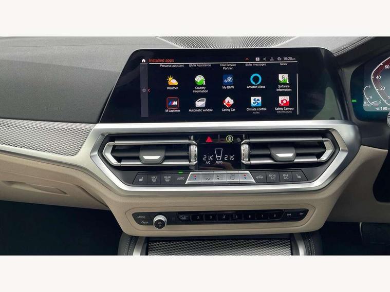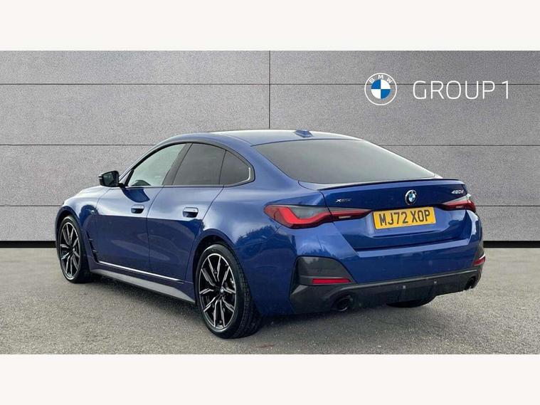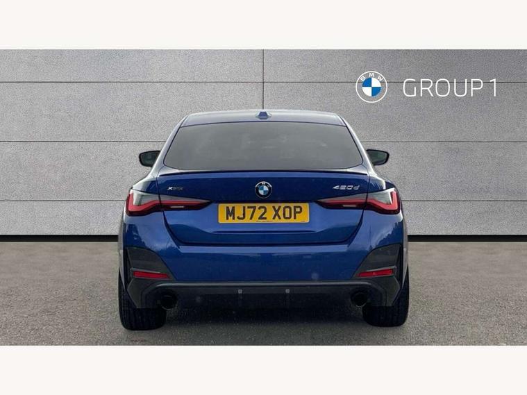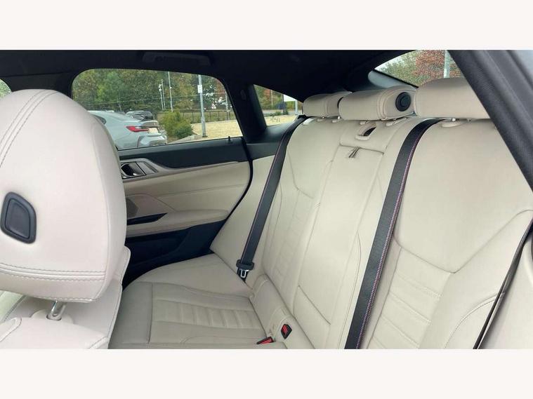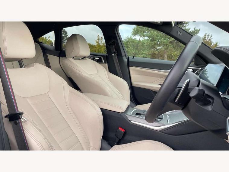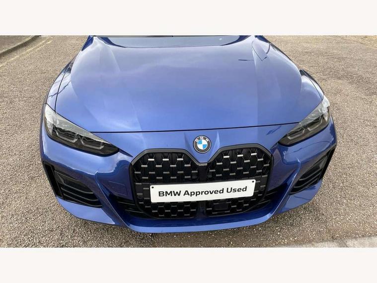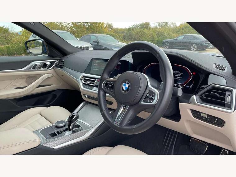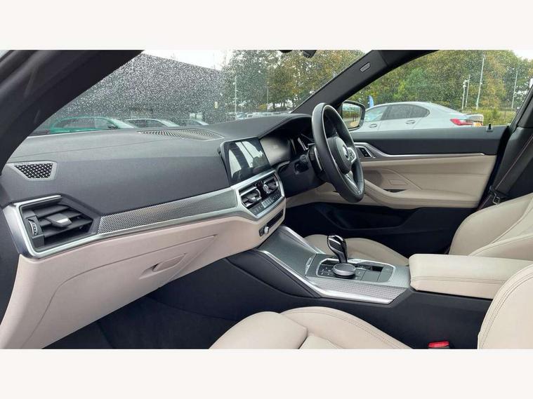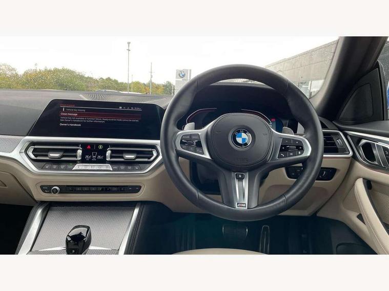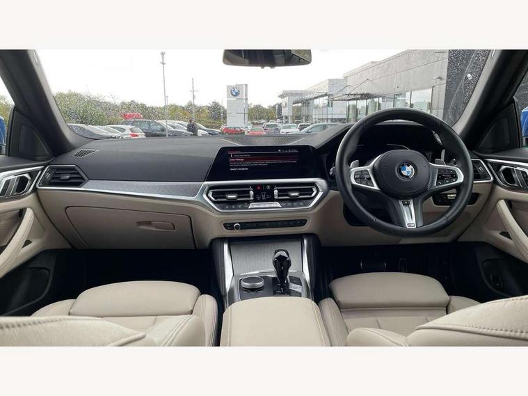 Active guard plus, Attentiveness assist, Auto start-stop, BMW ConnectedDrive online services, BMW iDrive controller on centre console, BMW Live Cockpit Professional Nav with 12.3" instrument display + 10.25" display, Intelligent Voice Assist, BMW OS 7, HDD, 2USB, 4G LTE connect, BMW service history, BMW Teleservices, Brake pad wear indicator in front and rear, Check Control warning system for monitoring of lights and door/luggage compartment open warning, Condition based service, Cruise control with speed limit function, Electric bootlid, Electric power steering with Servotronic steering optimised at all speed ranges, Gearshift time display in manual mode, Instrument cluster with speedometer with mph readout, tachometer, fuel gauge and oil temperature gauge, Integrated owners handbook, Oil sensor for level and grade, warning by check control system, On board computer - average speed, fuel consumption, outside temp display with acoustic warning, clock/date, service interval, odometer/trip meter, Optimum shift indicator, Shifting point display, Variable sport steering, 48V Mild hybrid technology, 8 speed automatic steptronic transmission with gearshift paddles, Diesel particulate filter, Double joint spring strut front axle, Drive performance control - ECO PRO, comfort and sport modes, Incorrect fuelling protection, Low centre of gravity, M sport suspension, Stroke dependent dampers, xDrive system permanent all-wheel drive variable torque distribution, 2x USB Type C ports in front centre console for charging and data transfer, DAB tuner, Electronic service booklet, 3rd brake light, Acoustic glazing, Automatic headlight beam throw control with load dependent regulating reaction, dynamic compensation of braking dive and acceleration squat, Automatic windscreen wipers and automatic headlight, Automatically dimming electrochromatic rear view mirror, BMW emblem on engine compartment lid and tailgate, BMW kidney grille with mesh grille front side of the nuggets in matt aluminium and frame in chrome high gloss, Body colour fuel filler flap, Body colour roof fin, Brushed aluminium inserts in the front door sill finishers with BMW designation, Door sill strips, Dynamic brake lights, Electric windows - front and rear, with open/close fingertip control, anti trap facility and comfort closing function all round, Exterior mirrors - electrically folding with anti-dazzle, Fading support, Follow me home headlights, Front and rear bumper system, Front apron plastic in body colour, Green tinted heat protection glazing, High gloss shadow line exterior trim, Illuminated bow type door handles in body colour drivers side with door lock, Interior rear view electrochromatic mirror with automatic anti dazzle function, LED daytime running lights, LED front fog lights, LED front indicators, Licence plate panel integrated into front bumper and tailgate, Lightweight engineering, M designation on front side panels, left and right, M sport rear boot spoiler with body colour gurney, Model designation on right side of tailgate, One piece front bumper cover including towing eye cover in body colour, Preparation for high beam assistant, Rear side wing doors, Rear wiper, Reversing light, Side frame decorative moulding black matt, Two part LED tailights in L-shape with components in smoked glass, brake light, LED turn indicator and rear fog light, Visible exhaust tailpipe finisher, Visible VIN plate, Welcome lights in interior and door handle area, Widened track and increased camber values for max transverse dynamics, agility and steering precision, Window recess cover black high gloss, Windscreen wipers with integrated heated washing jets, xDrive designation on left tailgate, 12V power socket in front centre console, 2 front cupholder in centre console with clamping elements and matt black inlay, 3 rear headrests, 3 seat bench in 2nd row, 3 spoke M sport leather multifunction steering wheel, 3 zone automatic air conditioning, 4 pieces lashing eyelets in luggage compartment, 40:20:40 split folding rear seat and rear centre armrest with two cupholders, Anthracite headlining, Armrest integrated in front and rear door trim + front centre console armrest, Battery in luggage compartment, BMW ID, Driver seat backrest width adjustment, Four grab handles integrated in roof lining, Front and rear door pockets, Front and rear reading lights, Front sport seats, Heated driver and front passenger seats, Height adjustable front headrests, Height adjustable mechanically and infinitely variable steering column, Illuminated armrest storage compartment, Illuminated glove compartment with separate small compartment, Make-up mirror lights, Single front passenger seat, Storage compartment in rear centre console, Sunvisors with illuminated vanity mirrors and ticket pocket, Toolkit located in luggage compartment, Velour front floor mats, Vernasca leather upholstery, Ambient lighting pack - 4 Series, Connected professional pack - 4 Series, M sport exterior styling pack - 4 Series, 3 point seatbelts on all seats, Battery safety cut-off, BMW emergency call, Brake energy regeneration, Braking pre-tensioning, Child proof locking system in rear door, Child seat ISOFIX attachment for the two outer rear seats, Coasting in idle in ECO PRO mode, Cornering brake control (CBC), Crash sensor activating of airbags, Unlocking doors, hazard warning lights, interior light, safety battery terminal, Driver and front passenger side airbags, integrated in the door side seat backrest bolsters for all seat variants, Driver/Front Passenger airbags, Dry braking, Dynamic brake control, Dynamic stability control + (DSC+) - Anti-lock Braking System (ABS) with brake assist and cornering brake control + Automatic Stability Control (ASC), Dynamic Traction Control - DTC, Electric parking brake including automatic hold function and automatic release of the parking brake when driving off, Electronic differential lock control (EDLC), Front and rear ventilated brake disc, Front passe