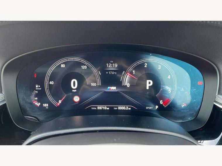 20GB Hard drive, BMW apps interface, BMW Online services, BMW remote services, BMW Teleservices, Check control system, Digital cockpit, iDrive controller and display with 10.2" monitor, Luggage compartment release button in drivers A pillar, Luggage compartment with electric unlocking via key remote control, Navigation System Professional Multimedia, On board computer, On board diagnostics, Outside temperature display, Personal Profile, Power opening/closing tailgate, Service interval indicator, Speed limiter, Voice control system, Diesel particulate filter, Drive Performance Control, Sports function on gearbox with steering wheel mounted gearshift paddles, Auxiliary point for auxiliary devices, BMW professional radio/DVD/MP3, DAB Digital radio, Active rear spoiler, Adaptive LED Headlights, Auto dimming rear view mirror, Body colour door handles, Body coloured bumpers, Body coloured door mirrors, Body coloured side sills, Chrome kidney grille, Chrome window surround, Dynamic brake lights, Electric + heated aspheric door mirrors, Electric folding and auto dimming door mirrors, Electric front and rear windows with fingertip open/close + anti-trap all round, Electric tilt/slide panoramic sunroof, Fogging sensor for front windscreen, Follow me home headlights, Green tinted heat insulating glass, Heated windscreen washer jets, High beam assistant, Illuminated door handles, Interior/exterior mirrors with auto anti dazzle, LED daytime running lights, LED Indicators, LED rear lights, LED third brake light, Left and right single chrome quadrilateral exhaust tailpipes, M aerodynamic bodystyling, Rain sensor with auto light activation system, 12V power socket in front console (x2), 12V socket in rear centre console, 3 spoke M sports leather multifunction steering wheel, 40:20:40 split folding rear bench seat, Ambient interior lighting, Anthracite headlining, Anthracite Velour floor mats, Door sill finishers with illuminated M designation, Electric front seats + driver memory, Electric reach + rake adjustable steering column, Footwell lights at rear, Front centre armrest with storage compartment, Front cupholders x 2, Front footwell lights, Front reading lights, Illuminated glovebox with lock, Isofix rear child seat preparation, Passenger footwell storage net, Rear centre armrest with 2 cupholders + storage, Rear reading lights, Securing rings in luggage compartment, Storage net in luggage compartment, Storage pockets in backrests of front seats, Sunvisors with illuminated vanity mirrors, Three height adjustable rear head restraints, Through load system, 3 rear seatbelts, ABS/EBD, Automatic Stability Control (ASC), BMW emergency call, Cornering brake control (CBC), Crash Sensor - activates hazard/interior lighting + unlocks doors, Driver/front passenger side airbags, Driver/Passenger airbags (Impact dependent), DSC+, Dynamic brake control, Dynamic Traction Control - DTC, Electromechanical parking brake + auto hold function, Front and rear head airbags, Front head restraints with anti-whiplash, Front passenger airbag deactivation, Front passenger seat occupancy sensor, Fuel cut off safety device, Hill start assist, Inertia reel front seatbelts+pretensioners, M Sport braking system, Roll over protection, Side impact protection, Three inertia reel rear seatbelts, Tyre pressure monitoring system, Warning triangle and first aid kit, Engine immobiliser, Keyless ignition, Locking wheel bolts, Remote central locking - doors and fuel cap, Remote control Thatcham category 1 alarm, Sensatec instrument panel, Run flat tyres,