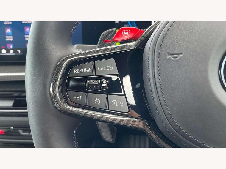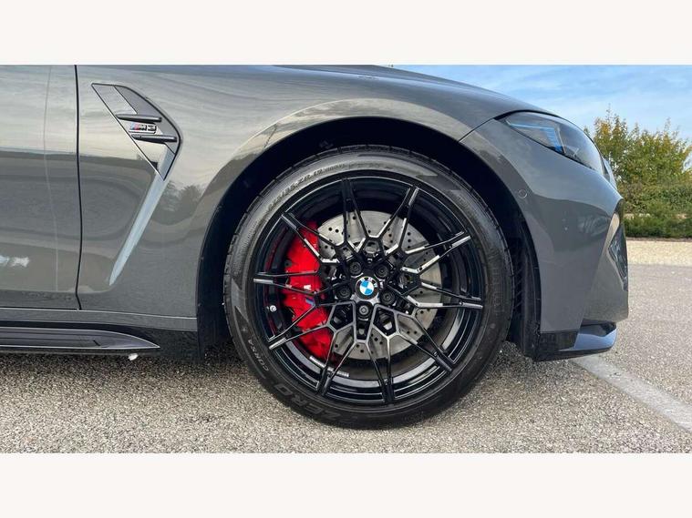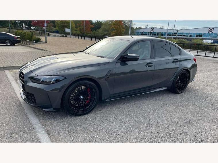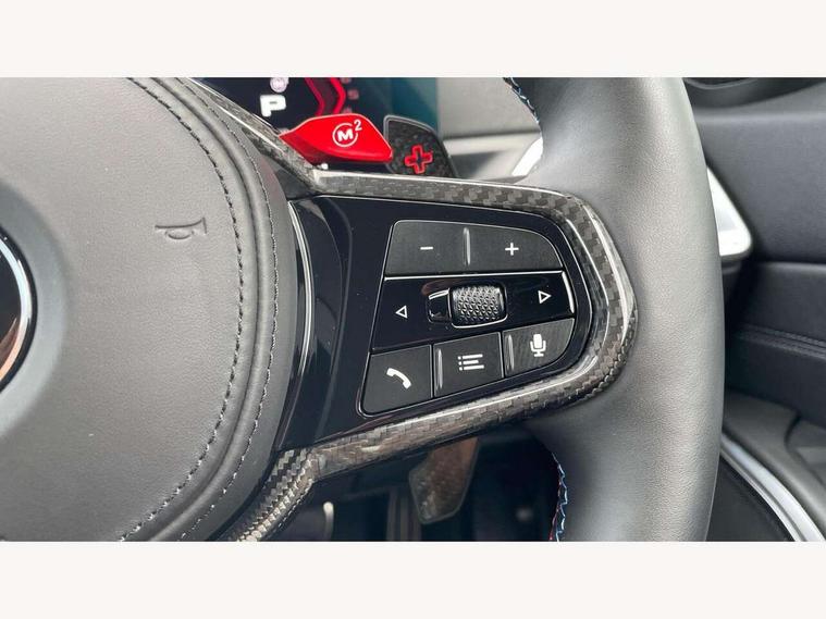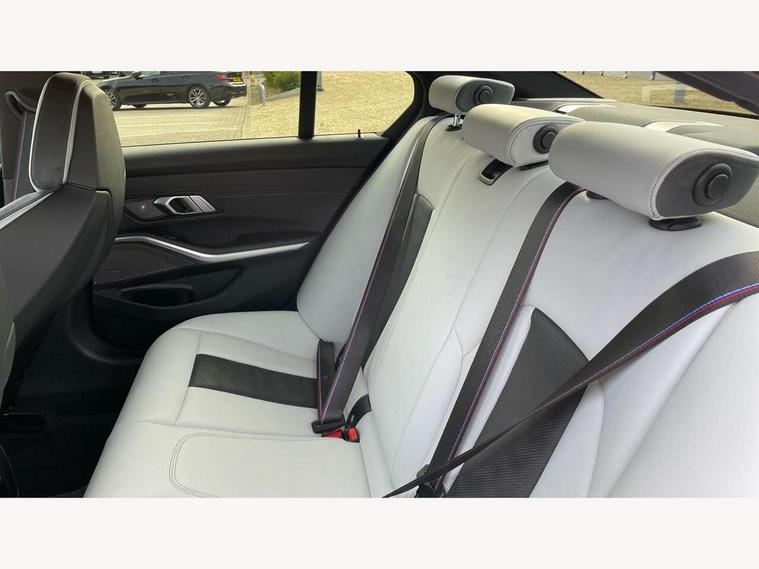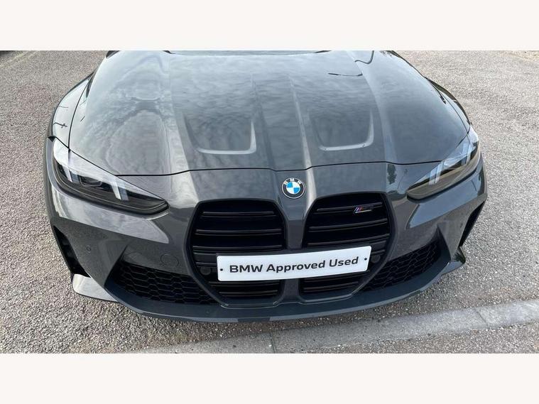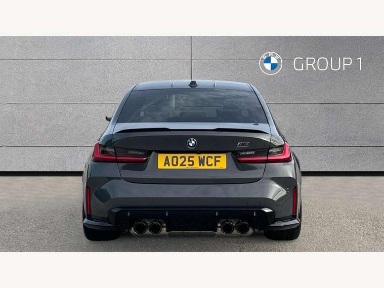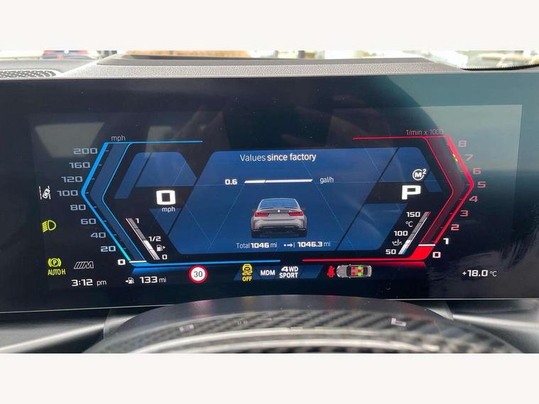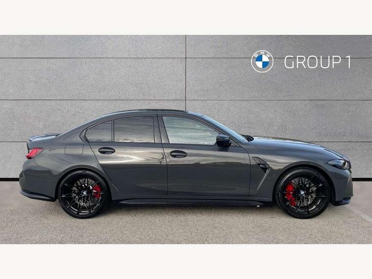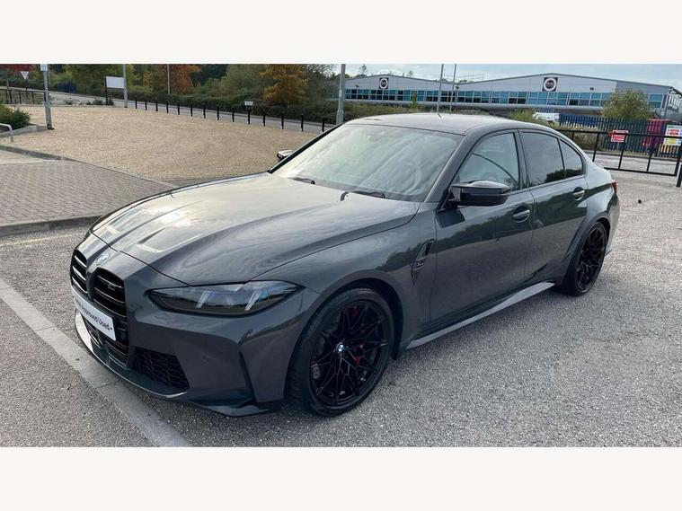 Active Guard, Automatic start/stop system, BMW ConnectedDrive online services, BMW legal emergency call, BMW Live Cockpit Pro with Head up display including 12.3" instrument display and 14.9" high resolution control display with navigation function, BMW Teleservices, Brake pad wear indicator warning light, Condition based service, Cruise control with braking function, Door/boot open warning light, Electric Power Steering (EPS) with Servotronic, Language version English, Lights on warning, M drive buttons, Oil sensor for level and grade, warning by check control system, Oil temperature gauge, On board computer, On board diagnostics, Optimum shift indicator, Outside temperature display, Park distance control, Pull away assistant, Run flat indicator, Service interval indicator, Shifting point display, Smartphone integration, Speed limiter, Start/stop button in red, Variable sport steering, Double joint spring strut front axle, M Adaptive suspension, M Drive Professional including track mode, laptimer, traction control & Drift analyser, M Sport differential, Safety battery terminal clamp, Sport automatic transmission with gearshift paddles, Auxiliary point for auxiliary devices, DAB radio with bluetooth music capability, Harman kardon surround sound audio system, Personal eSim, Auto dimming driver's door mirror, Automatic headlights + automatic windscreen wipers, Automatic parking function on front passenger's exterior mirror, Black model designation badges, BMW high gloss shadow line with extended contents, BMW radiator grille, frameless, with horizontal double blind slats, black high-gloss, with model badge, Body colour bumpers, Bonnet and tailgate badge, Carbon fibre reinforced plastic (CFRP) roof, Day time running light, Door mirror integrated indicators, Door sill finishers with aluminium inserts, Dynamic brake lights, Electric adjustable heated door mirrors, Electric folding door mirrors, Electrochromic exterior driver side mirror, Electrochromic interior rear view mirror with automatic anti-dazzle function, Entry sills with aluminium inserts and model badge, Follow me home headlights, Front and rear bumper system, Front and rear plastic apron in vehicle colour, Front door sill strips in aluminium inlays with M3 inscription, Front electric windows with open and close fingertip control, anti trap facility and comfort closing, Headlight beam throw control, Heat protection, sun protection glazing, Heated washer jets, High gloss black lower bumper edges, side sills and diffuser edge binding, LED tail lights with 3D L-shaped LED light design, M designation, Mirror glass aspheric on driver's side, convex on passenger side, Rain sensor, Rear boot, Rear fog lights, Rear reflectors, Rear side wing doors, Reversing light, Roof fin and roof trim strips in Black high-gloss, Shark fin roof aerial, Strakes in front side panel, black matt/high-gloss black, with model badge, Third brake light, Visible VIN plate, Welcome lighting, 2 cupholders in front centre console, 2 cupholders in rear armrest, 2 rear head restraints, 2 x 12 V Power sockets (luggage compartment and front centre console), 2 x USB Type C ports for charging and data transmission in front centre console, 3 seat bench in 2nd row, 40:20:40 split folding rear seat with loading system, Ambient inside door handle light, Ambient lighting for storage compartment, Ambient lighting front and rear, Anthracite headlining, Battery in luggage compartment, Centre console armrest with storage compartment, Contour lighting for door trim, Driver/passenger sunvisors with ticket holders + illuminated vanity mirrors, Driving experience mode switch, Dual zone automatic air conditioning, Dynamic ambient interior lighting, Electric front seats + driver memory, English handbook, Floor mats in velour, Front and rear door exit lights, Front door storage bins with bottle holder, Front footwell ambient lighting, Front interior light, Front isofix attachment + airbag deactivation, Front reading light, Front seat backrest width adjustment, Front/rear door armrests, Heated front seats, Height adjustable front headrests, Illuminated bow-type door handles in vehicle colour, driver's side with door lock, Interior mirror lighting, Isofix on 2nd row outer seats, Lockable/illuminated glovebox, Luggage compartment lighting, M Sport seats with with illuminated model designation, Multifunction steering wheel, Rake/reach adjustable steering wheel, Single front passenger seat, Storage compartment in rear doors, Storage tray and compartment with cover in centre console, Through loading system, Toolkit located in luggage compartment, Waterfall lighting for central air vent, Wireless charging tray, Connected package professional - M3, Extended storage pack - M3/M4, High gloss shadowline exterior trim pack - M3, 3 point seatbelts on all seats, ABS/EBD, Automatic Stability Control (ASC), Brake energy regeneration, Brake fade compensation, Compound structure brake discs, Cornering brake control (CBC), Crash sensor, Curtain airbags, Driver/Front Passenger airbags, Dry braking, Dynamic brake control, Dynamic stability control + (DSC+), Dynamic Traction Control - DTC, Electromechanical parking brake, Electronic differential lock control (EDLC), Front and rear head airbags, Front seat side impact airbags, Front seatbelt pretensioners + load limiters, Hill start assist, M Sport seat belts, Rear child proof door locks, Seat occupancy detection for driver and passenger side, Seatbelt warning, Side impact protection, Two tone horn, Tyre pressure sensor, Warning triangle and first aid kit, Centre lock switch, Closing system with central locking, Electronic immobiliser, Locking wheel bolts, Remote central locking, Thatcham cat 1 remote alarm, Vehicle Key with 4 buttons including the integrated key, Galvanic embellisher for controls, Tyre repair kit,