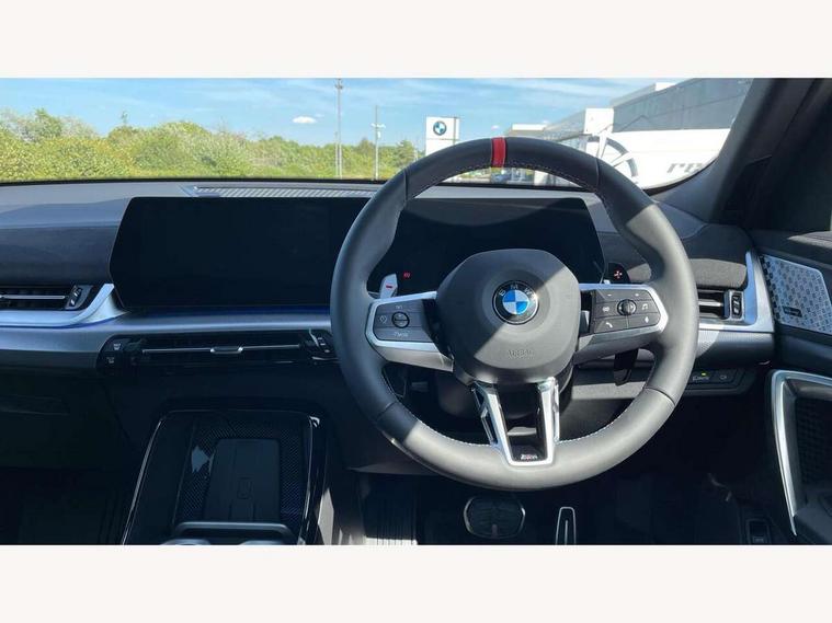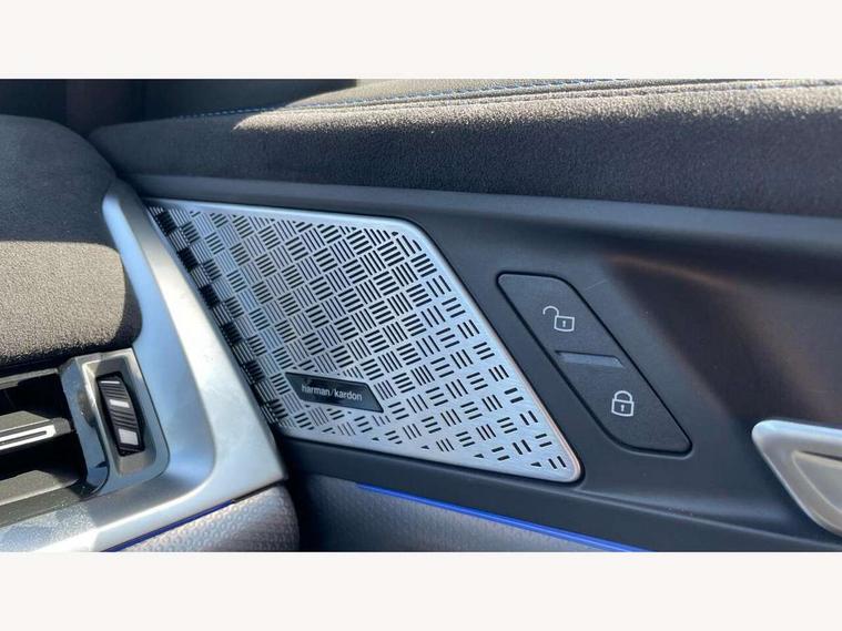 4G LTE connectivity, Attentiveness assist, Automatic start/stop function, Bluetooth / Wi-Fi interface with hands free system, BMW ConnectedDrive store and BMW Remote softwre upgrade, BMW Intelligent Personal Assistant, BMW Live Cockpit Plus - Widescreen display with 10.25" instrument cluster and 10.7" CID display, BMW Maps, BMW Operating System 9 with variable, confirgurable widgets, BMW Teleservices, Brake pad wear indicator, Condition based service, Connected drive services, Drive off assistant, Electrically opening/closing tailgate with opening/closing with remote control and contactless opening and closing, Gear display in instrument cluster including recommended gear, iDrive controller, Language version English, My modes (Personal / Efficient / Sport), Parking assistant with reversing assistant, active PDC, lateral parking aid and rear view camera, Personal Profile, Servotronic PAS, Smartphone integration for Apple CarPlay/Android Auto, Speed limiter, Touch operation on control display, Dynamic stability control, Larger Fuel Tank, M Adaptive suspension, Performance Control, Petrol Particulate Filter, Steptronic transmission with double clutch and gear shift paddles, BMW Personal eSim, DAB Digital radio, Harman Kardon HiFi loudspeaker system, Tuner with diversity reception and RDS, AM radio and FM radio, 4 exhaust tailpipes with tailpipe trims in pearl chrome, B-pillar and front/rear door trim panels and exterior mirrors in M styling in black high gloss, BMW kidney Iconic Glow, BMW M radiator grille with horizontal struts in high gloss black including M badge, Contoured M rear spoiler in vehicle colour with side aeroblades in high gloss black, Dynamic brake lights, Electric adjustable heated door mirrors, Electric windows - front and rear, with open/close fingertip control, anti-trap facility and comfort closing, Folding door handles integrated flush with surface, Front and rear bumper panel in M styling, Front door exit lights, Heated rear window, Home light, LED 3rd brake light integrated in rear window frame, LED daytime running lights, LED number plate light, M signature on front right/ left side panel, Matt black roof strips, Rain sensor including auto headlights activation, Rear side wing doors, Rear wiper, Roof mouldings in vehicle colour, Side sill trim panel in M styling, Sun protection glass, Trailer stabilisation logic, Welcome lighting, Window recess finisher strips and side window frames in black high gloss, Windscreen washer nozzle for rear view camera, Windscreen wipers front with heated washer nozzles, 12V - Power sockets with front centre console and luggage compartment, 12V socket in right side trim panel, 2 bag hooks in luggage compartment, 2 cup holders in front centre console, 2 front reading lights, 2 x USB Type C ports for charging and data transmission (front centre console) and 1 USB Type C ports for charging (rear centre console), 3 rear headrests, 3 seat bench in 2nd row, 3 upper retaining strap clips integrated into rear panels of seat backrests, 40:20:40 split folding rear seats, Ambient interior lighting, Anthracite front and rear floor mats, Bottle trays in all doors, Child seat ISOFIX attachment for two outer rear seats and front passenger seat with anchorage points, Driver and front passenger heated seats, Dual zone automatic air conditioning, Flat air vents on instrument panel in high gloss black, adjustable seats with elements in pearl chrome, Footrest and pedals in stainless steel look, Front and rear door pockets, Front and rear footwell lights, Front armrest with integrated control panel, Front centre console storage compartment, Front/rear adjustable head restraints, Glove compartment, Interior door handle recess light on all doors, Light on right in luggage compartment, M headliner Anthracite-A pillar trim panels, headliner in anthracite & B, C, D pillar upper trim panels, sun visors, grab handles, microphone cover in black, M leather steering wheel, Map pockets on the seats (version depending on equipment), Middle centre console storage compartment, One piece parcel shelf opens together with tailgate and removable, Rear armrest in door trim panel, Rear coat hooks, Selector lever with toggle operation, Single front passenger seat, Storage compartment lighting in centre console and storage tray in centre stack, Storage compartment net in left side trim panel, Storage compartment with folding cover under centre console armrest cushion, Storage tray in right side trim panel, Sun visors with illuminated vanity mirrors, Tilt adjustment incl. cargo function of 2nd row of seats, ABS, Automatic hold function, BMW emergency call, Braking readiness, Child lock for rear electric windows, Cornering brake control (CBC), Crash Sensor - activates hazard/interior lighting + unlocks doors, Driver/Front Passenger airbags, Driver/front passenger side airbags, Dry braking, Dynamic brake control, Electromechanical parking brake, Energy recovery system, First aid kit, Front and rear brake discs, Front centre airbag between driver and front passenger seats, Front passenger airbag deactivation, Head airbags for all 4 outer seats, Integrated brake system, Locking of doors after driving off, M Sport brakes with dark blue metallic calipers, PC iBrake PostCrash approach control warning with light braking function, Rear door child safety locks, Three point seat belts in all seats, Tyre pressure monitor, Warning triangle, Alarm system with tilt sensor, monitoring doors, bonnet interior and tailgate, Closing system with central locking including 2 vehicle keys with integrated emergency key, Locking wheel bolts, Front centre console trim in high gloss black, Luxury instrument panel, Tyre repair kit plus,
